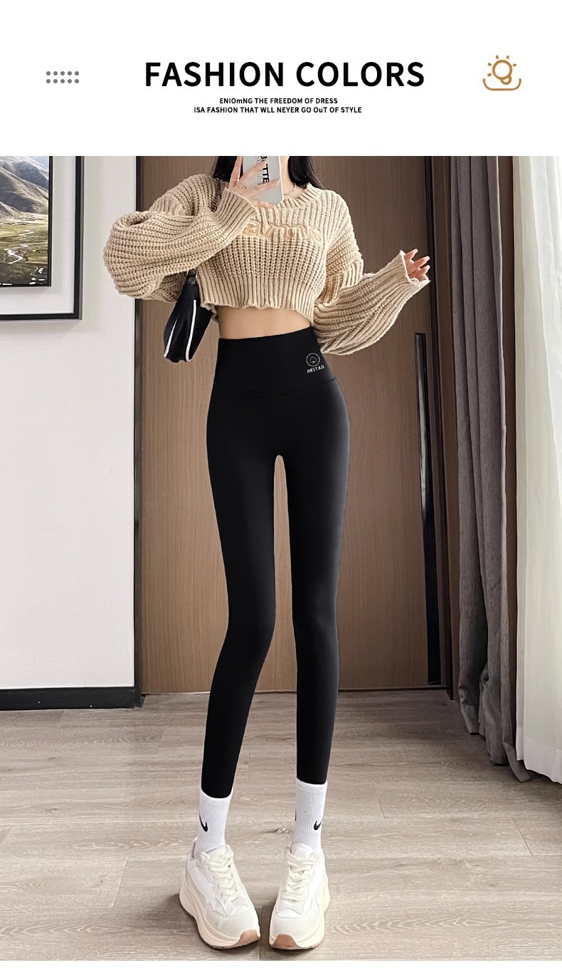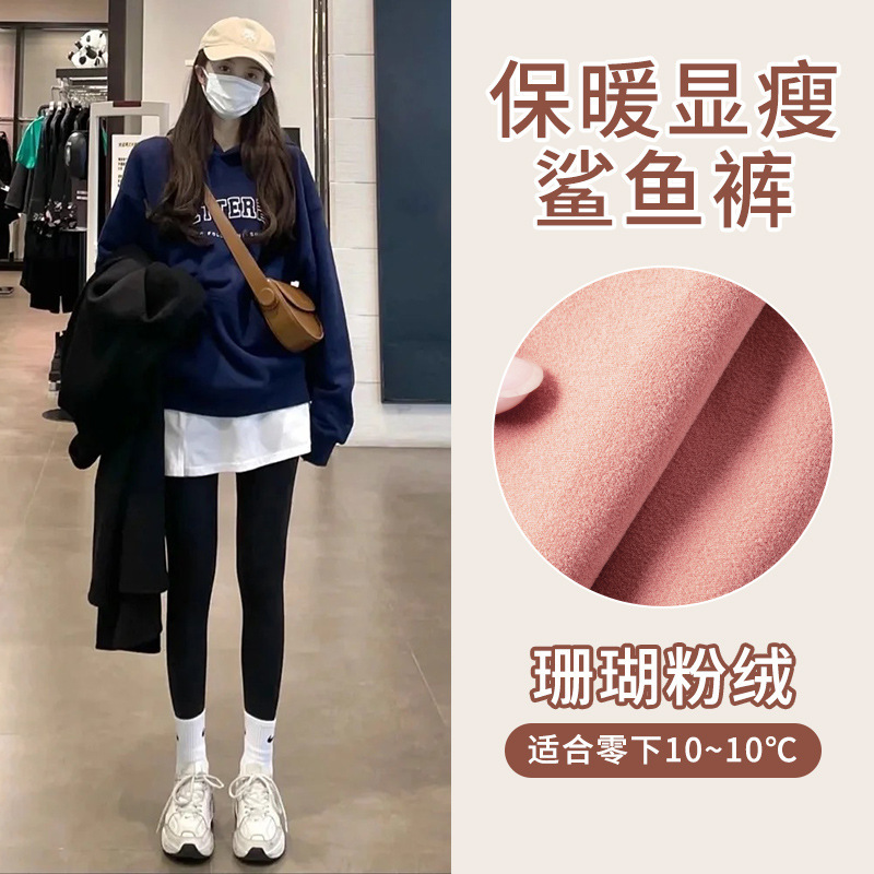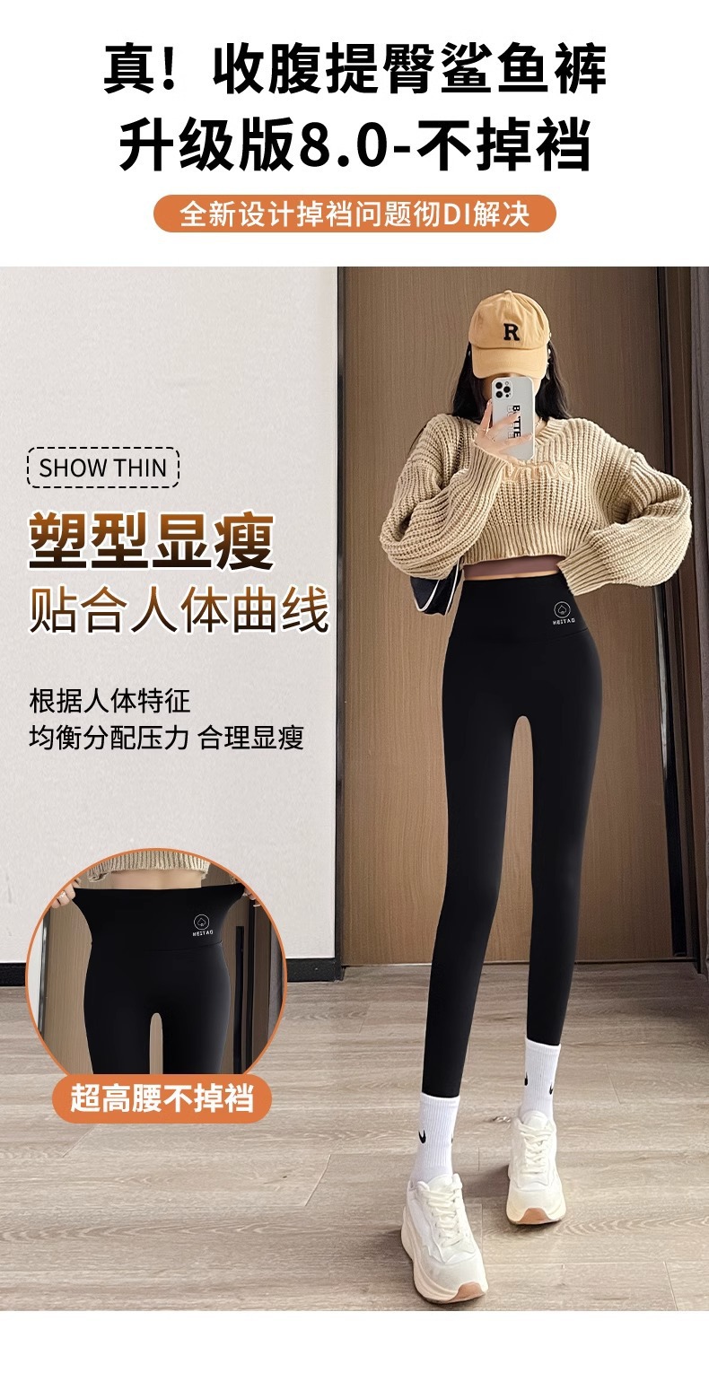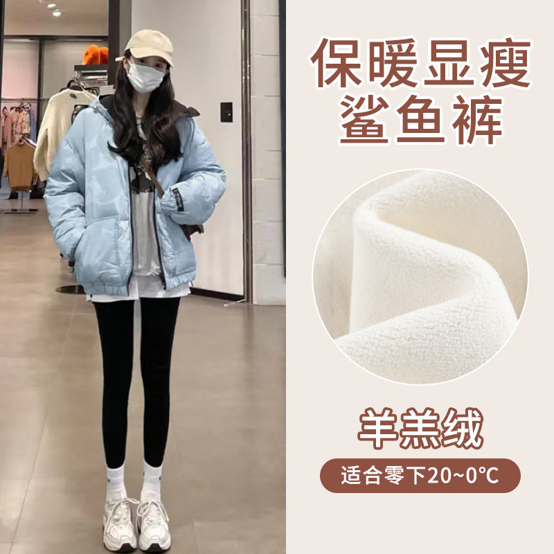아보카도 그린 상어 바지 여자의 복장 겨울 기모 두꺼운 바비 바지 하이 웨이스트 복부 엉덩이 리프팅 따뜻한 레깅스스토어 가기