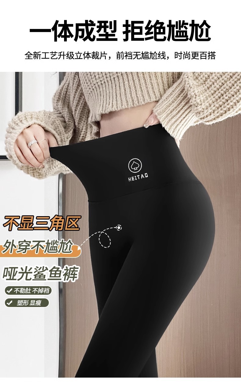 아보카도 그린 상어 바지 여자의 복장 겨울 기모 두꺼운 바비 바지 하이 웨이스트 복부 엉덩이 리프팅 따뜻한 레깅스