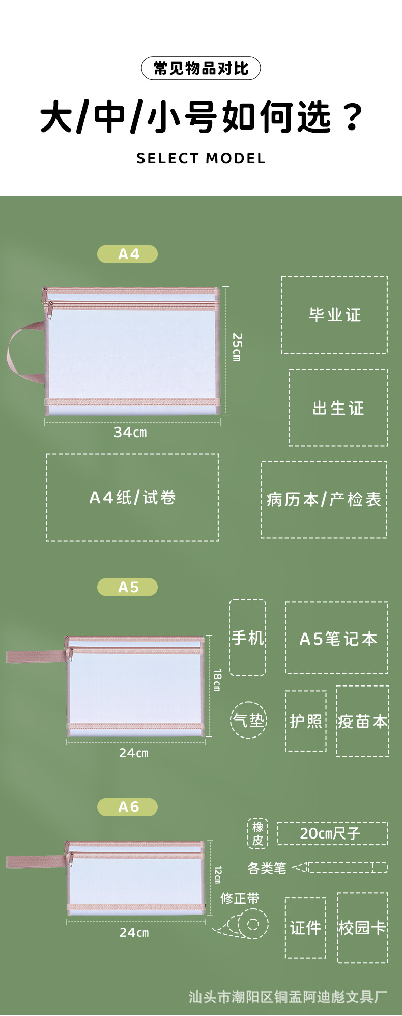 A4 문서 가방 제작 검사 가방 학생 시험 용지 보관 가방 튜터 가방 A6 지폐 보관 A5 숙제 가방 컬러 인쇄