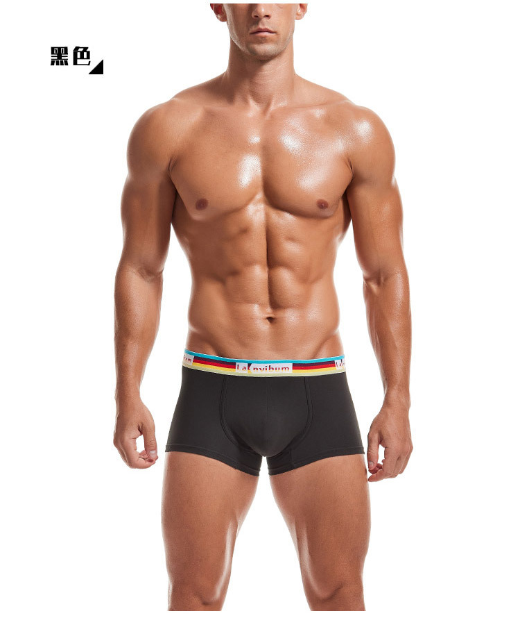 재고 LANVIBUM 남성 속옷 사각 코튼 미드 웨이스트 레인보우 벨트 섹시 트렌디 남성 섹시 짧은 코너스토어 가기