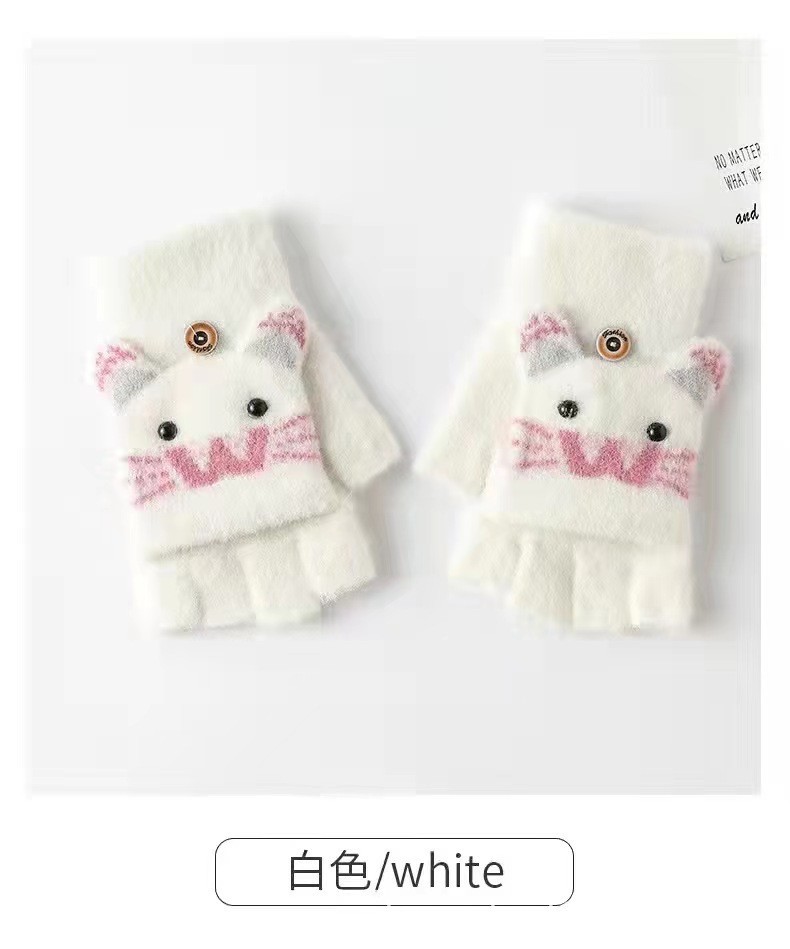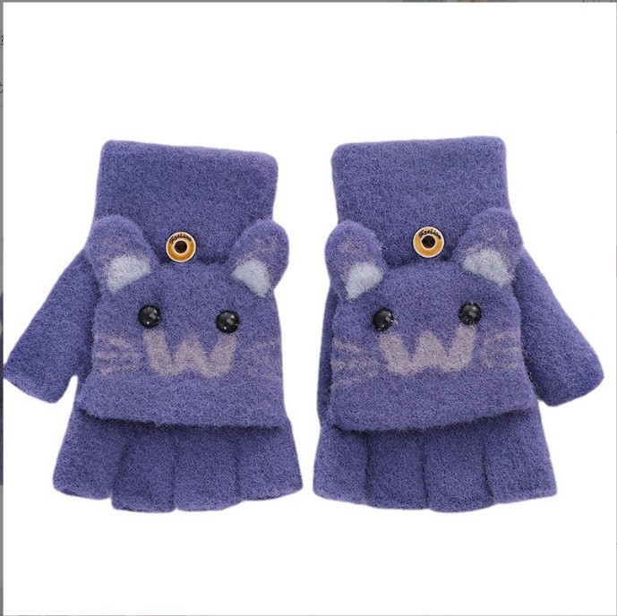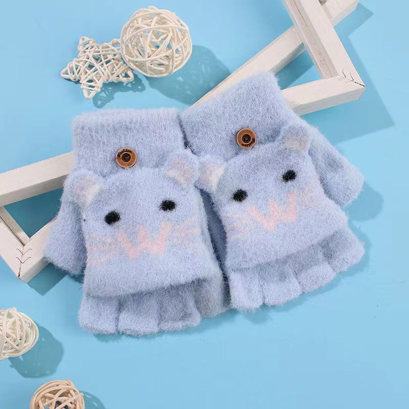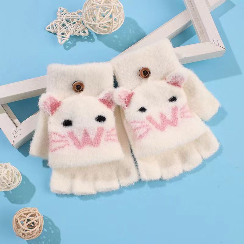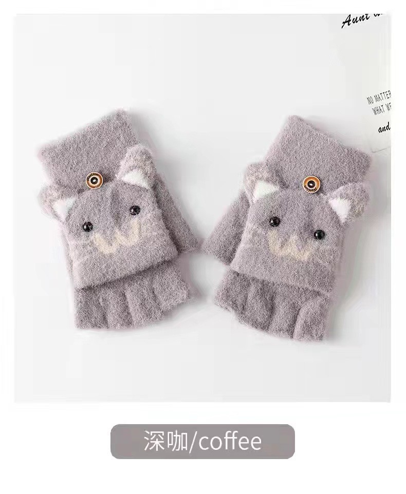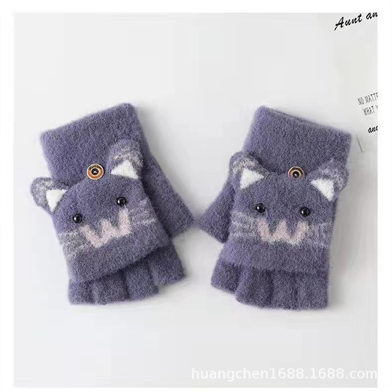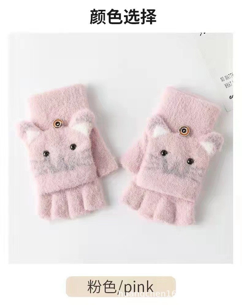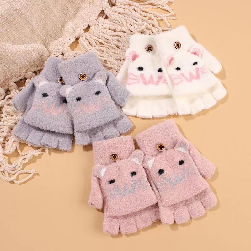 남녀공용 플립형 손가락 없는 장갑, 따뜻한 만화 캐릭터 반손가락 니트 벨벳 가을 겨울용, 청소년/학생/숙녀 스타일 성인용