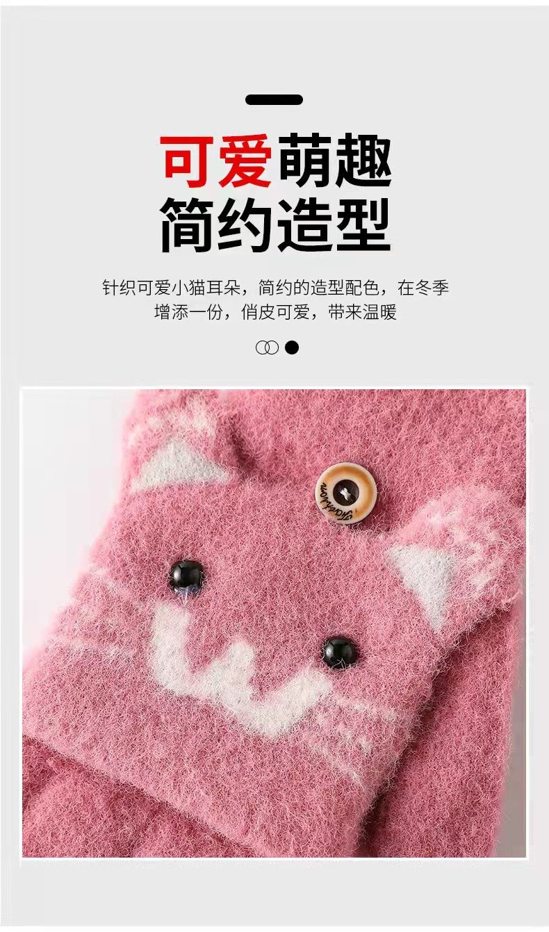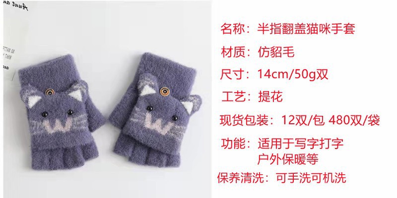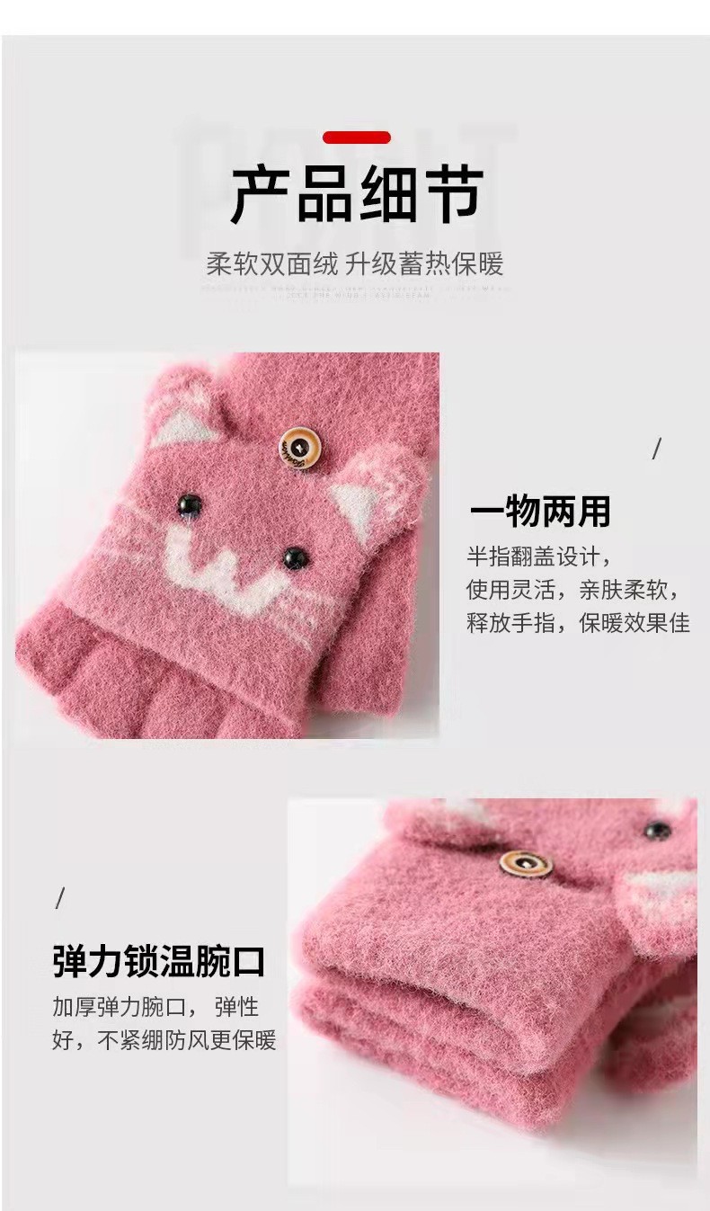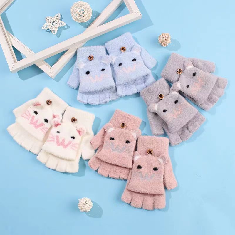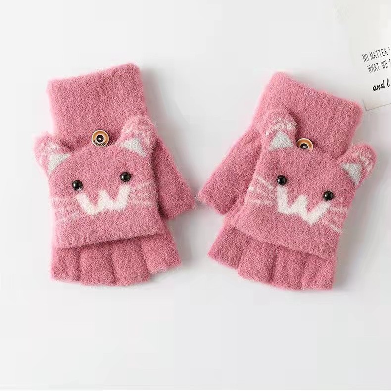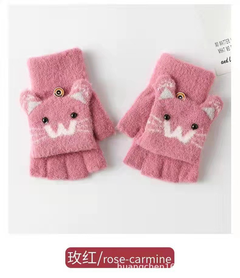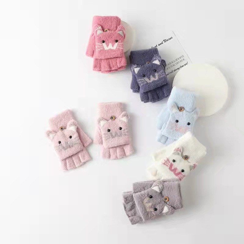 남녀공용 플립형 손가락 없는 장갑, 따뜻한 만화 캐릭터 반손가락 니트 벨벳 가을 겨울용, 청소년/학생/숙녀 스타일 성인용