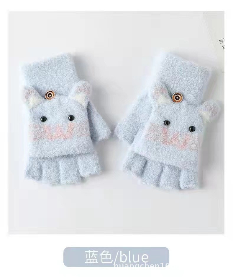 남녀공용 플립형 손가락 없는 장갑, 따뜻한 만화 캐릭터 반손가락 니트 벨벳 가을 겨울용, 청소년/학생/숙녀 스타일 성인용스토어 가기