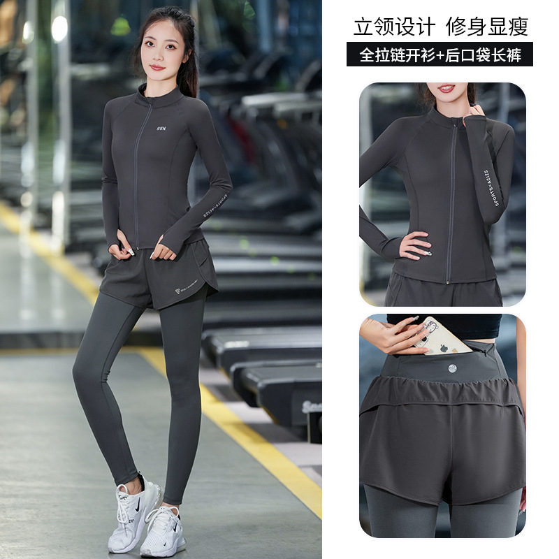 가을과 겨울 전문 등산 스포츠 세트 여성 긴팔 야외 레저 실행 요가 의류 피트니스 의류 빠른 건조스토어 가기