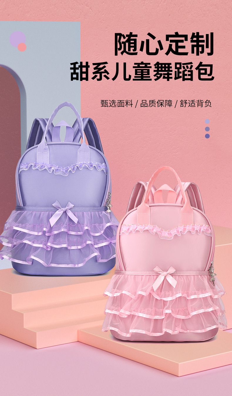 새로운 휴대용 더블 백 이중 사용 댄스 가방 어린이 책가방 유치원 여아 배낭 댄스 수업 훈련 인쇄 로고