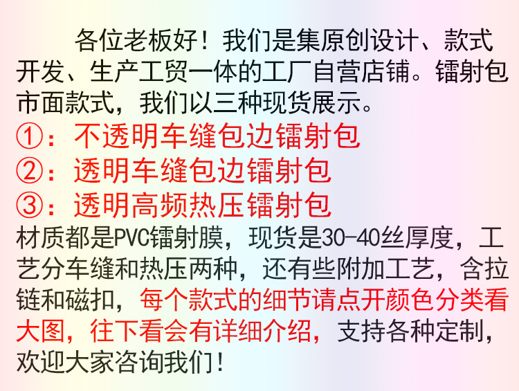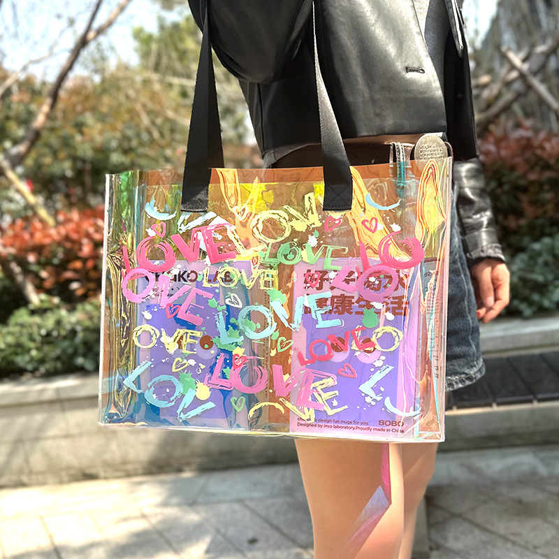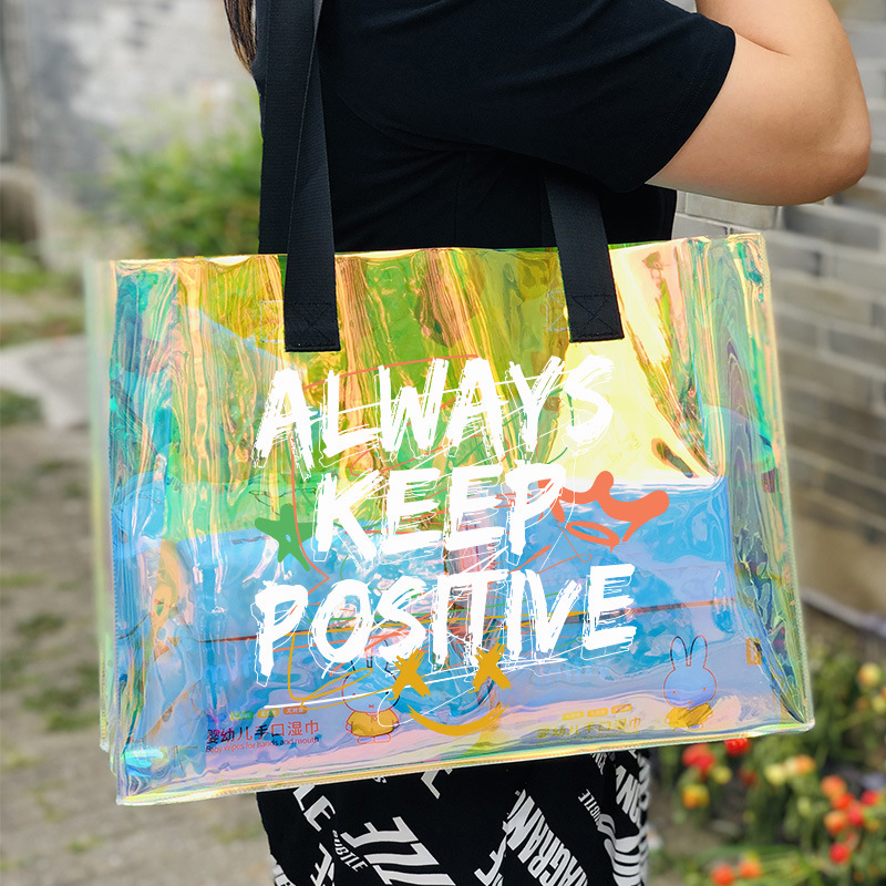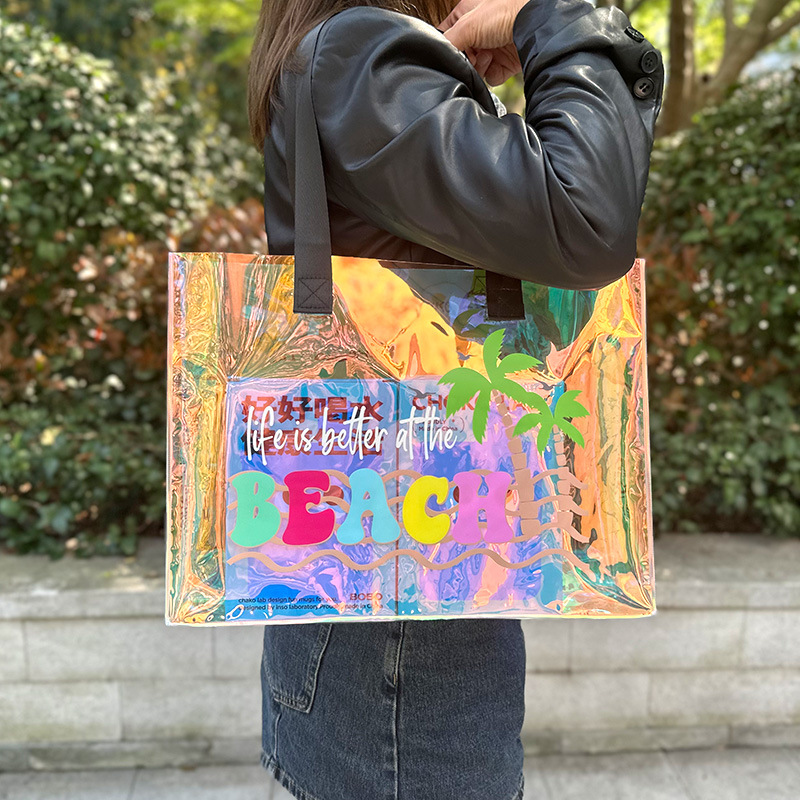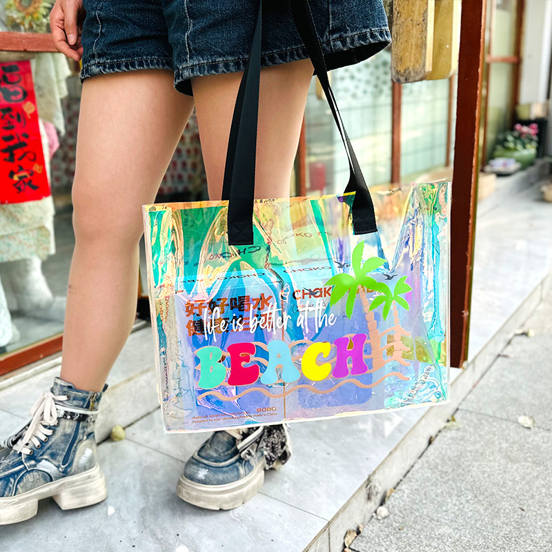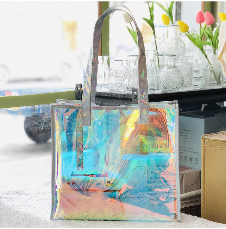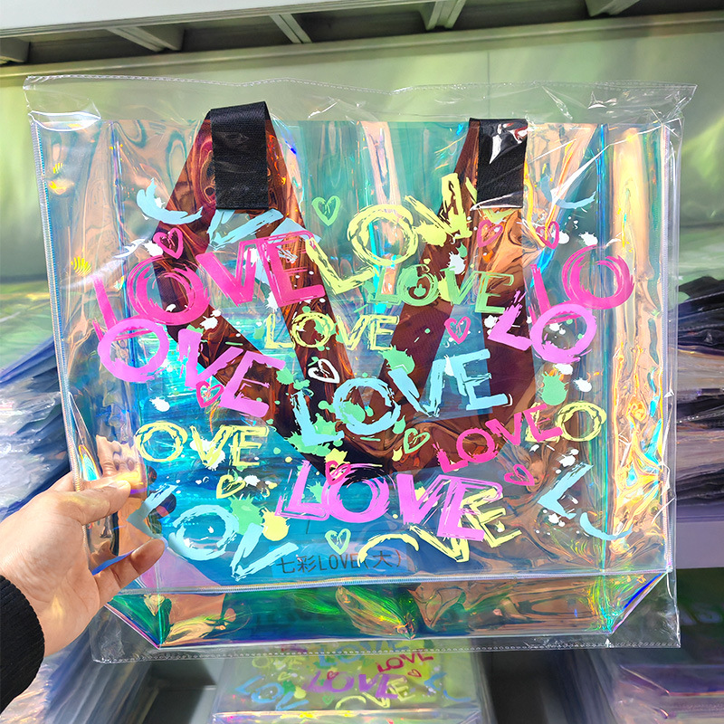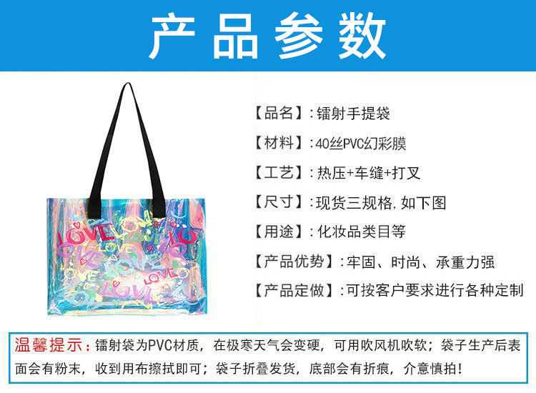 레이저 가방 PVC 투명 수영 방수 가방 대용량 핸드백 화장품 플라스틱 선물 가방 국경 간 판매스토어 가기