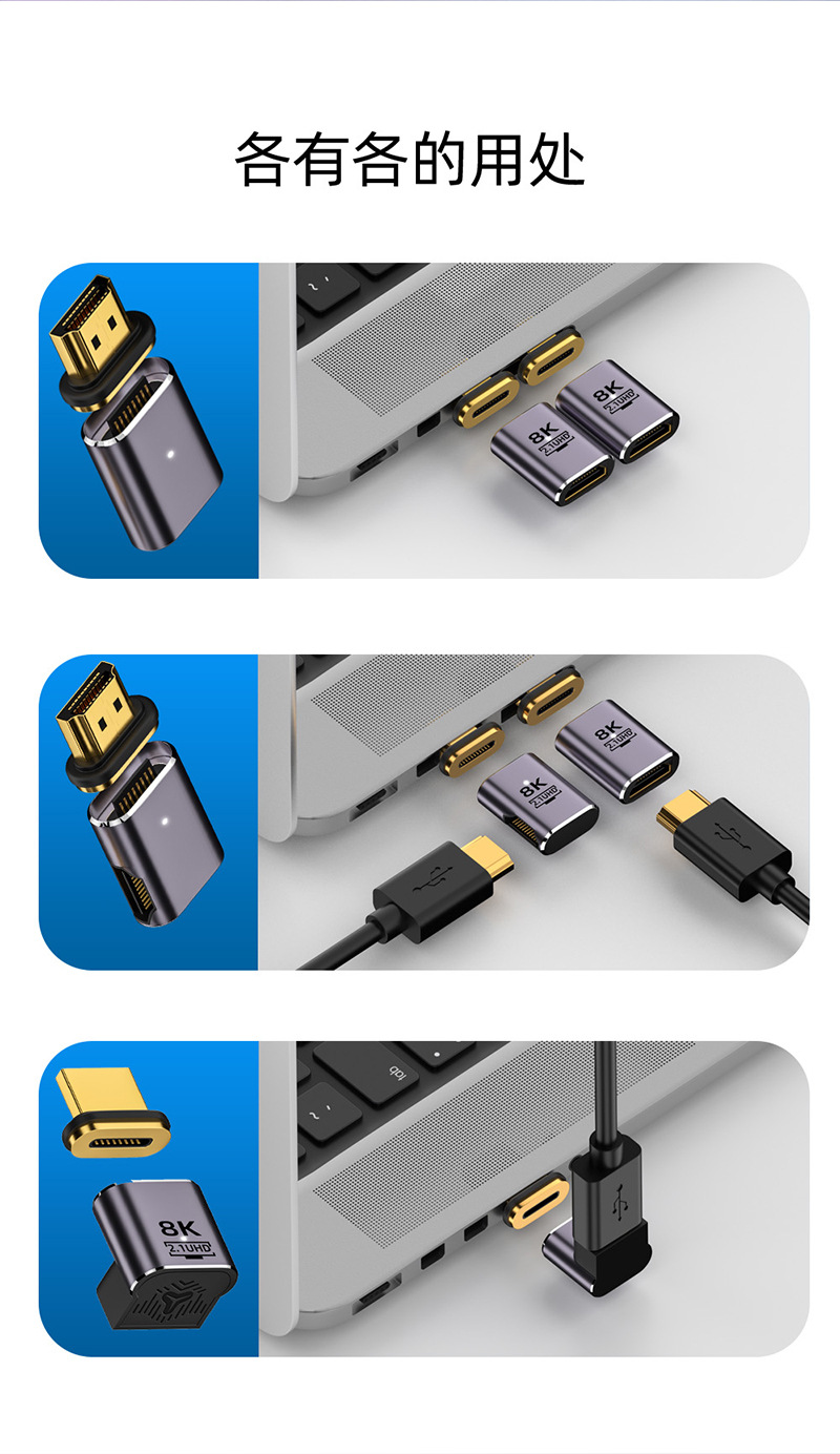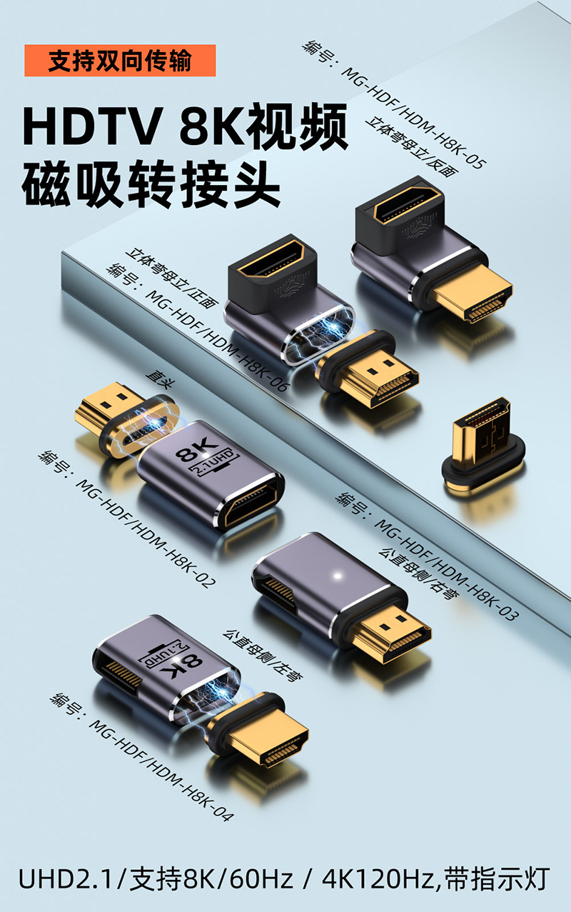 자기 어트랙션 어댑터 8K 는 HDMI HD 라인 UHD2.1 버전 좌우 팔꿈치 상하 팔꿈치 남성에서 여성까지 적합