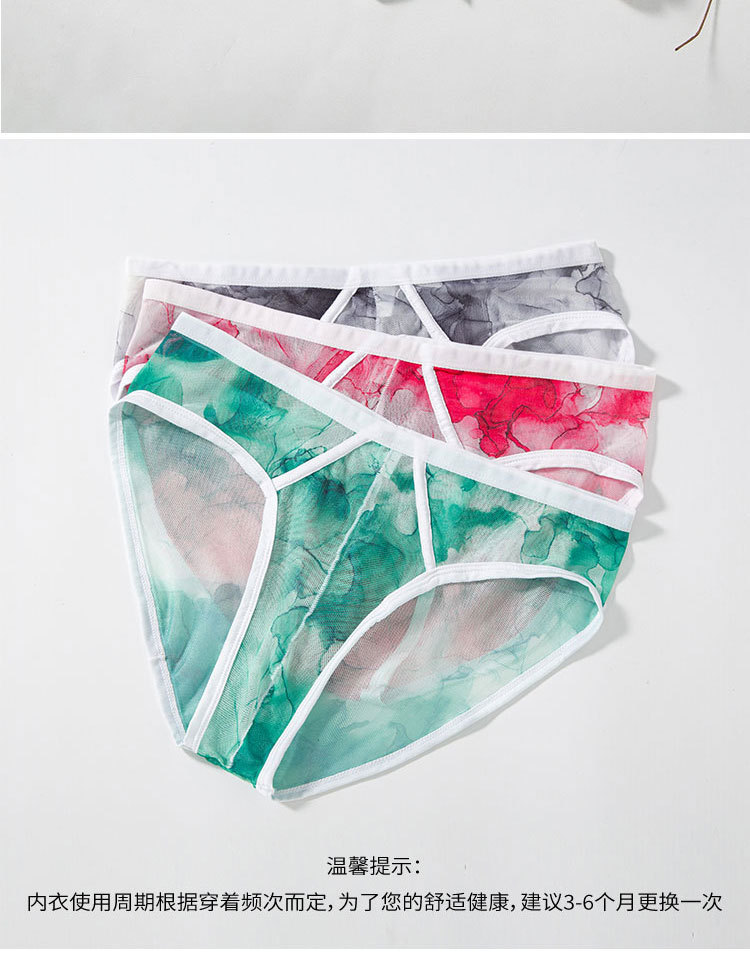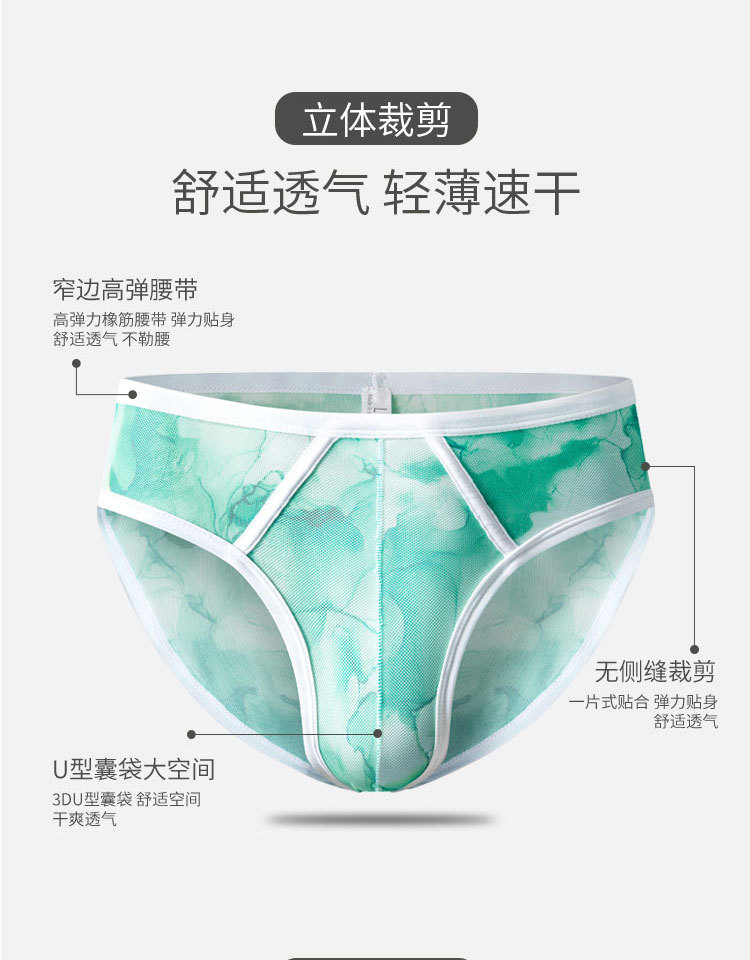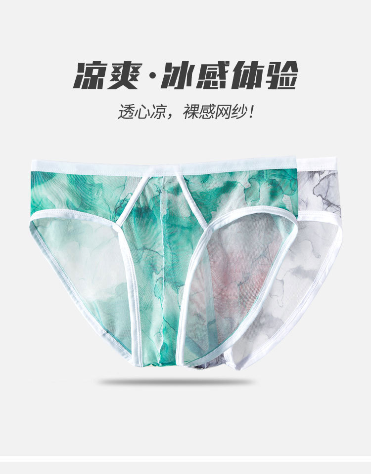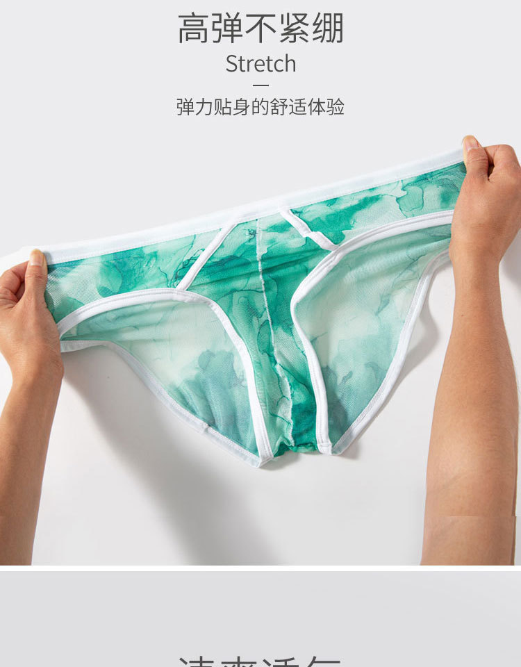 남성용 메쉬 삼각 팬티, 개성있는 투명하고 편안하며 통기성 좋고 속건성, 아이스 실크 느낌의 남성용 반바지, 그라데이션 메쉬스토어 가기
