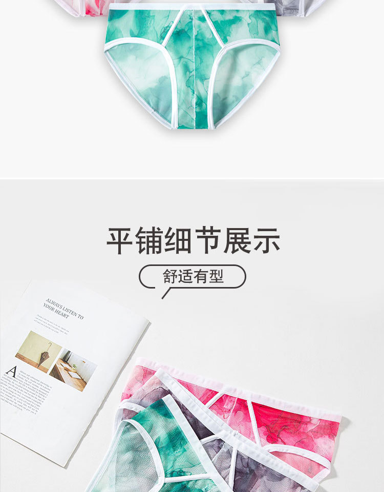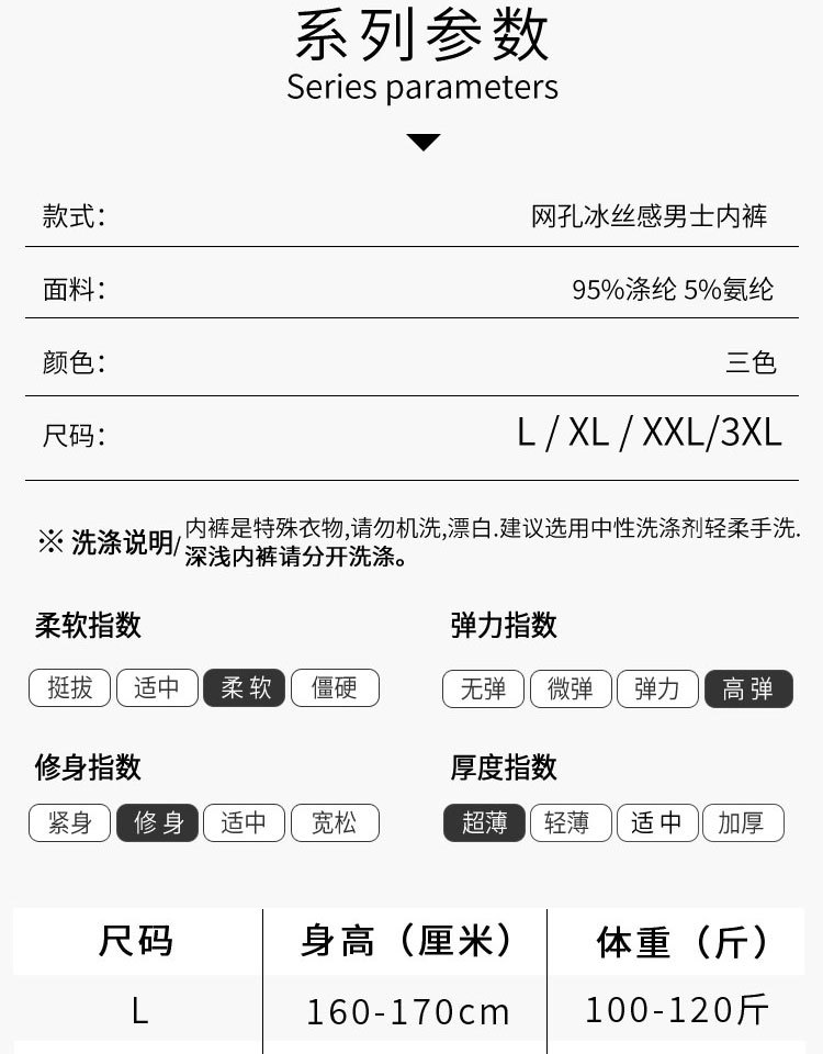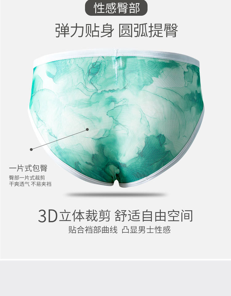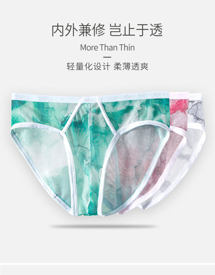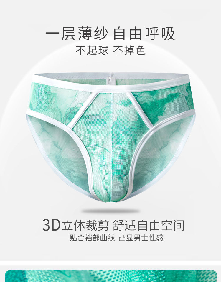 남성용 메쉬 삼각 팬티, 개성있는 투명하고 편안하며 통기성 좋고 속건성, 아이스 실크 느낌의 남성용 반바지, 그라데이션 메쉬스토어 가기