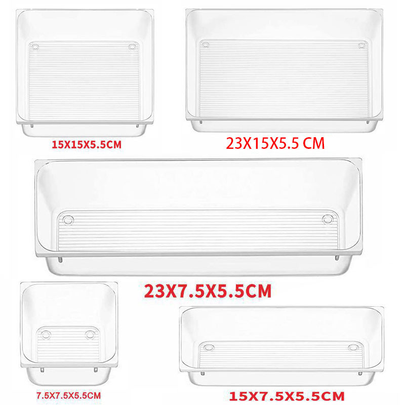 서랍 저장 상자 세트 투명 플라스틱 사무실 서랍 내장 분류 트레이 드레싱 테이블 저장 파티터 상자