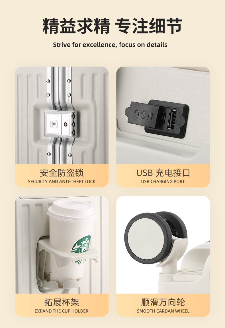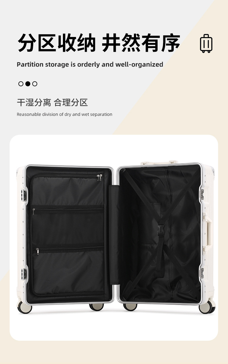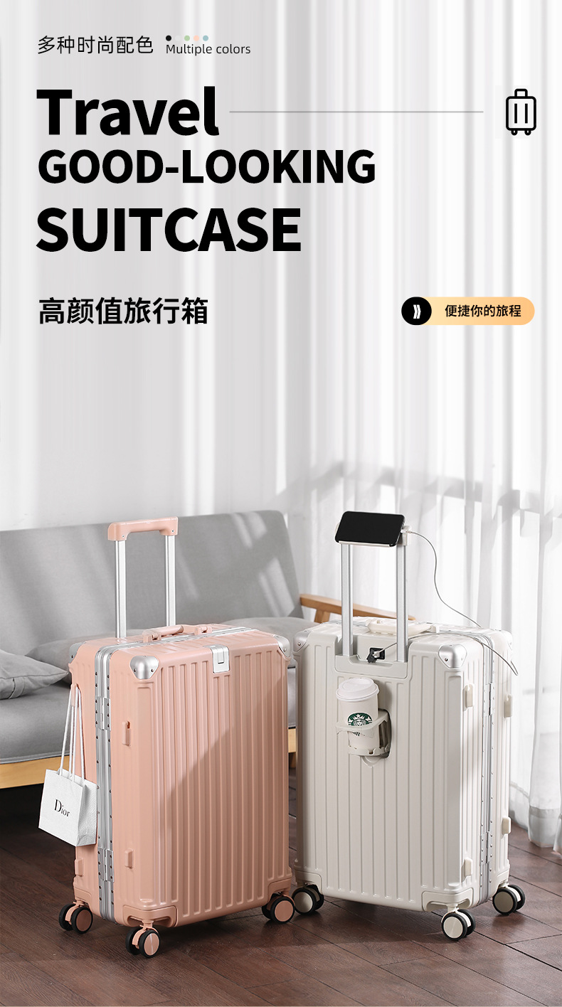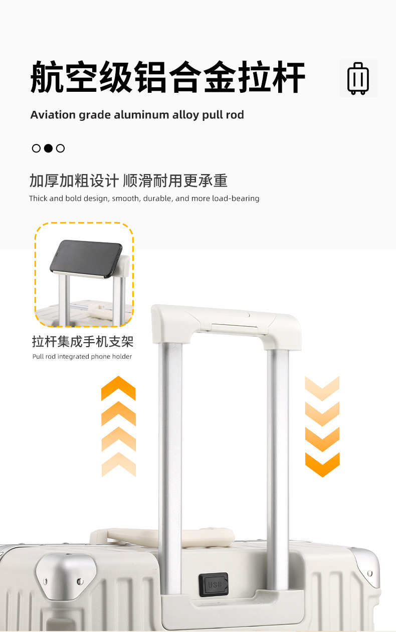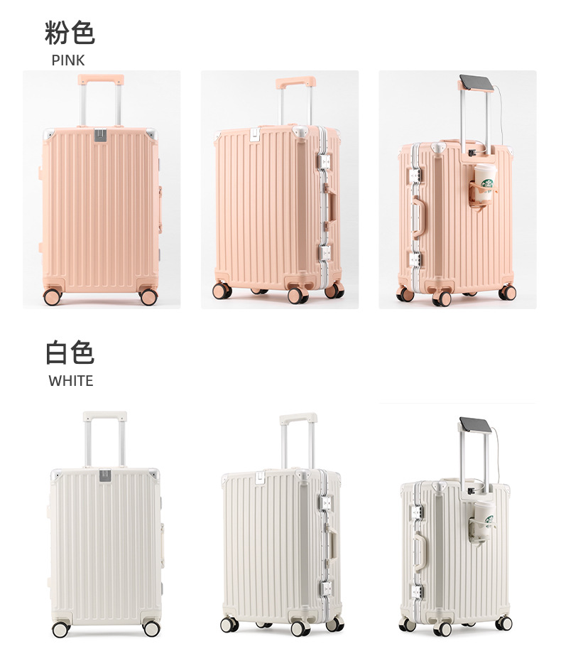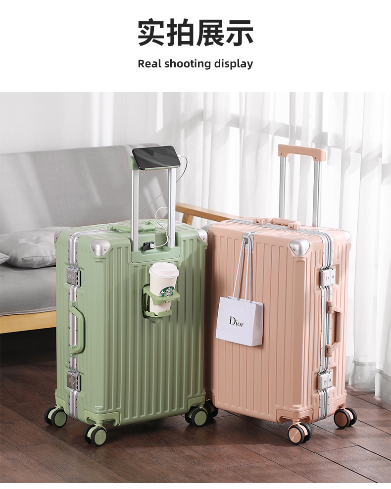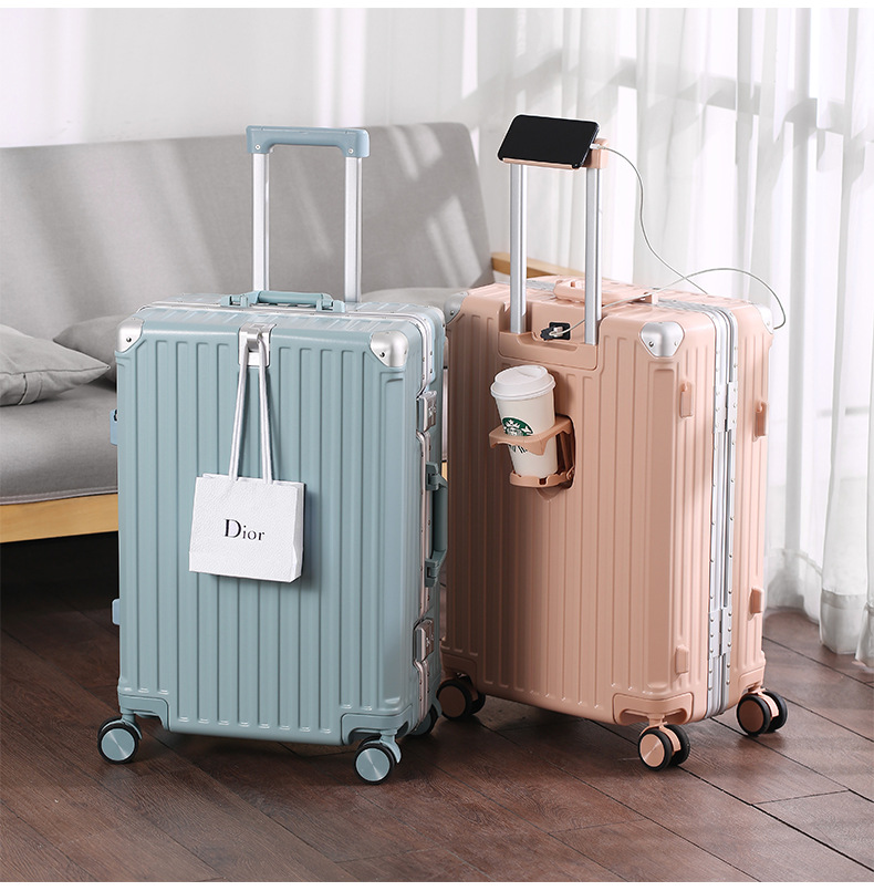 알루미늄 프레임 트롤리 케이스 26inch USB 듀얼 충전 기능이 있는 회전식 바퀴가 달린 여행가방 22inch 기내용 캐리어 20inch 휴대용스토어 가기