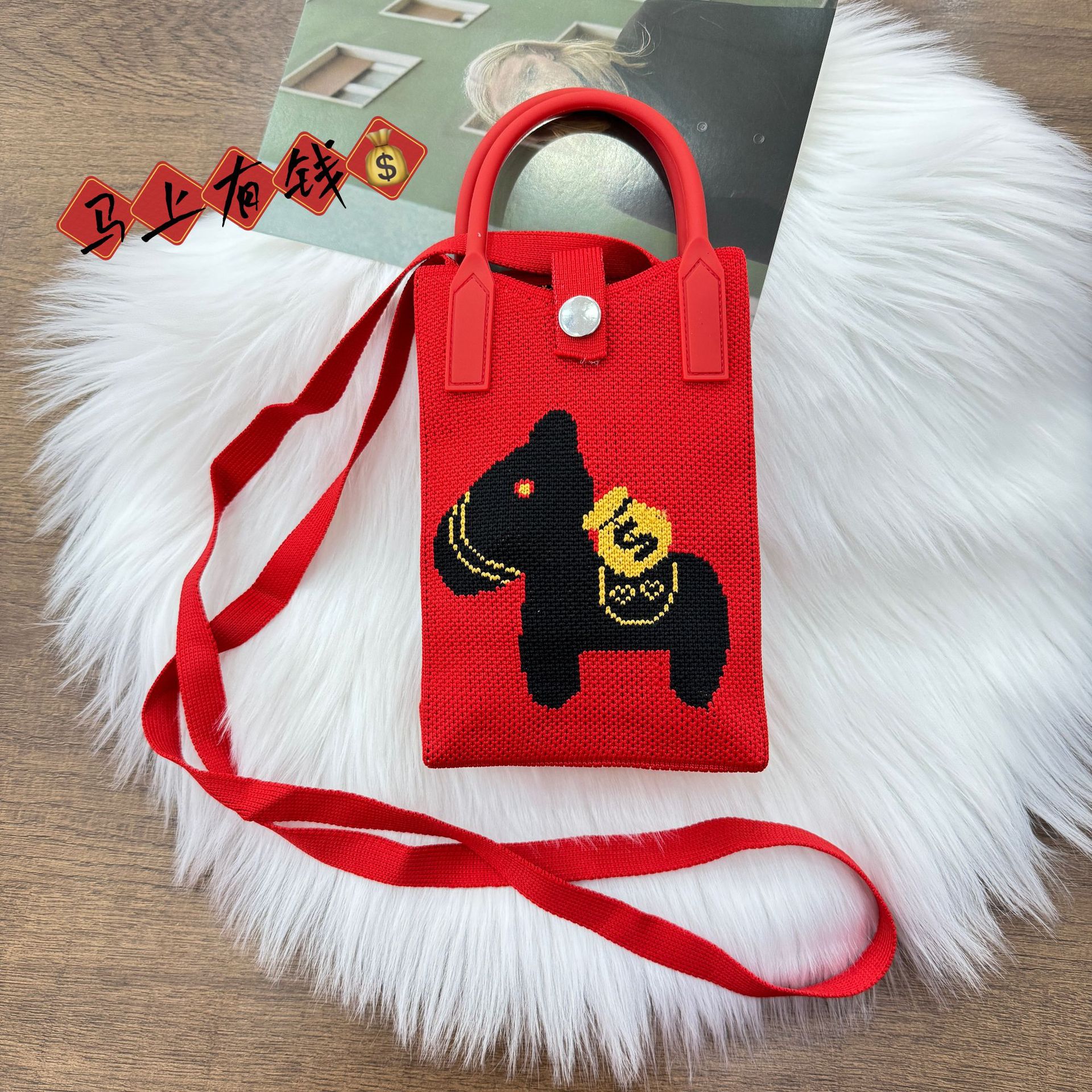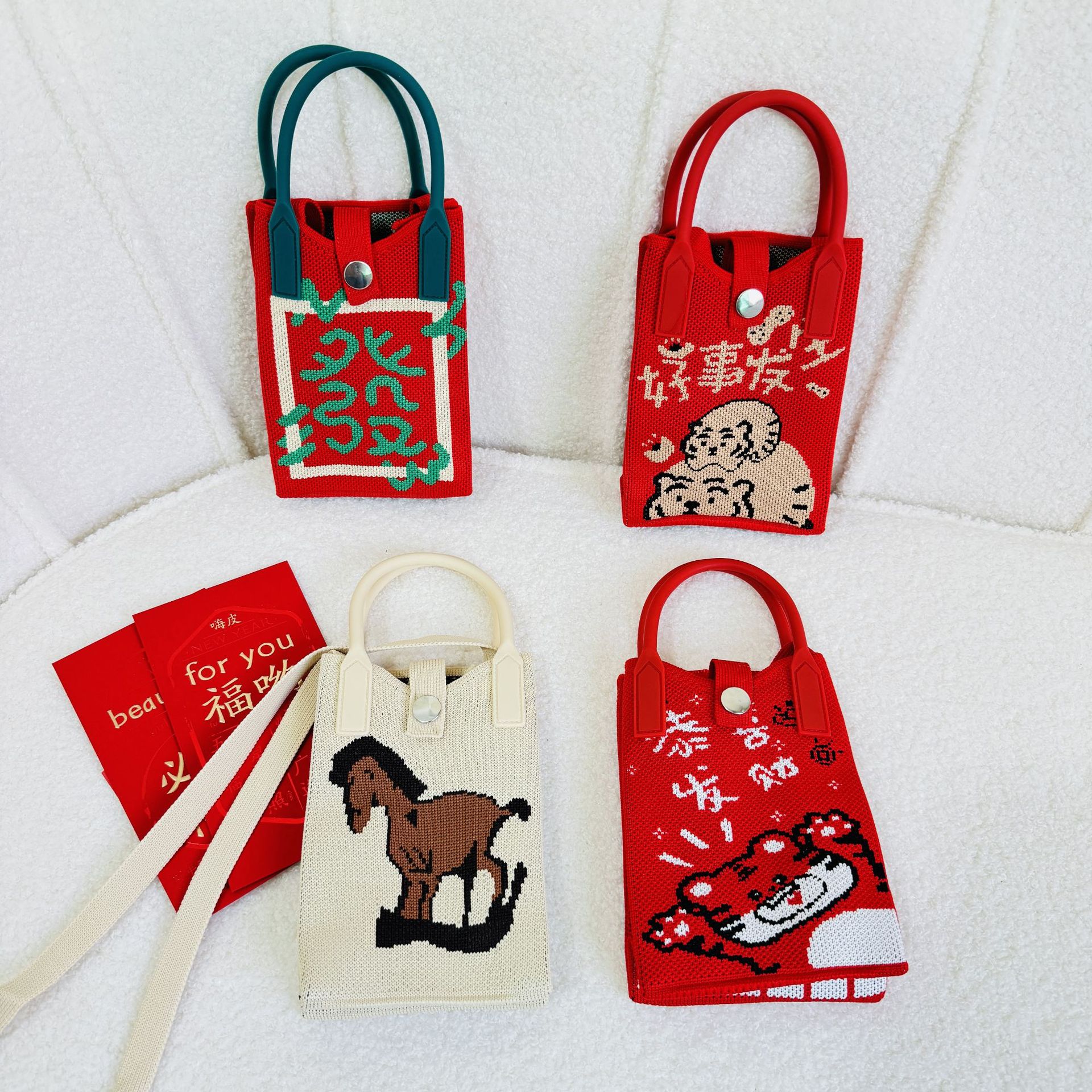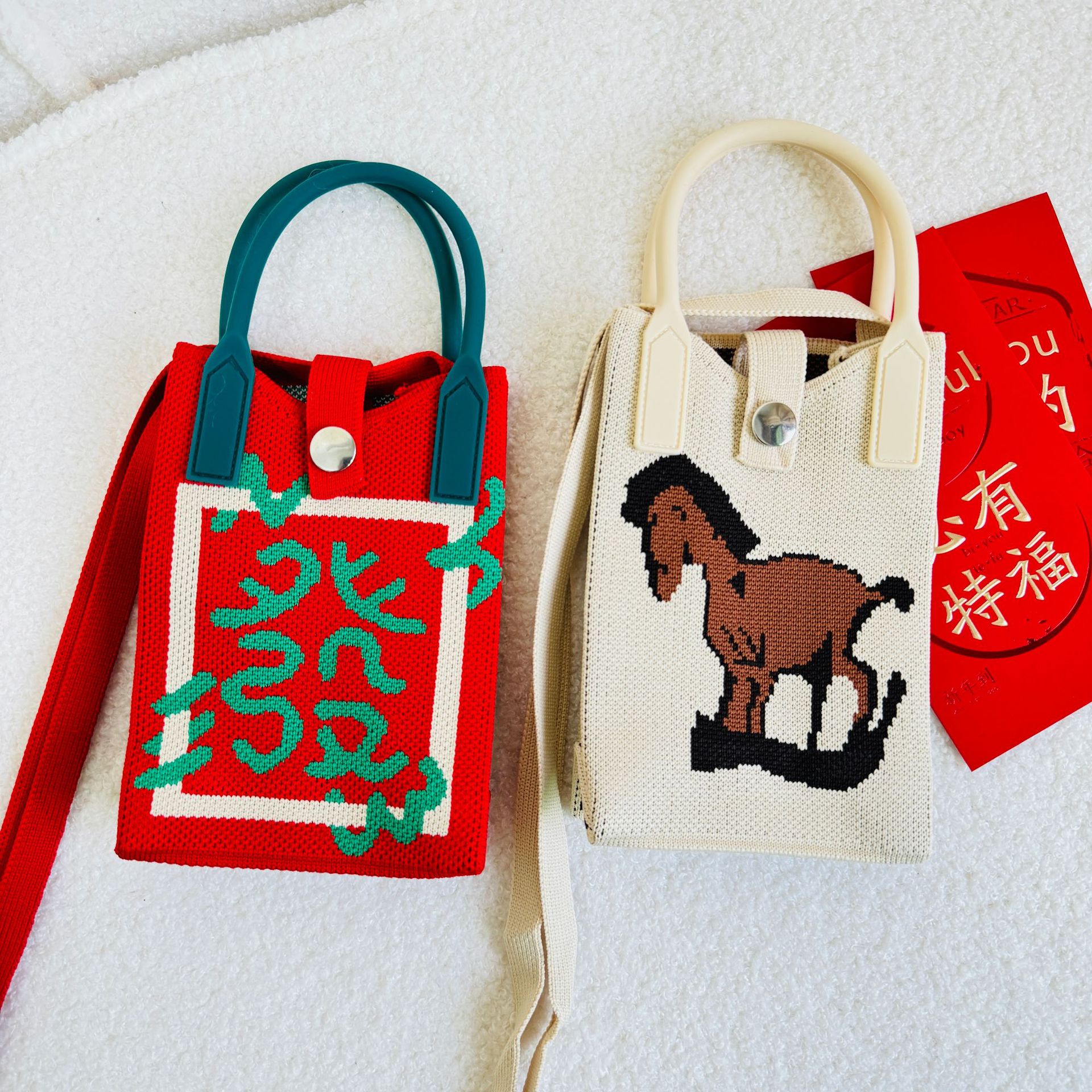 가방 틈새 디자인 행운과 풍부한 미니 휴대 전화 가방 모든 일치 니트 숄더 크로스 바디 백 동전 지갑 작은 사각형 가방
