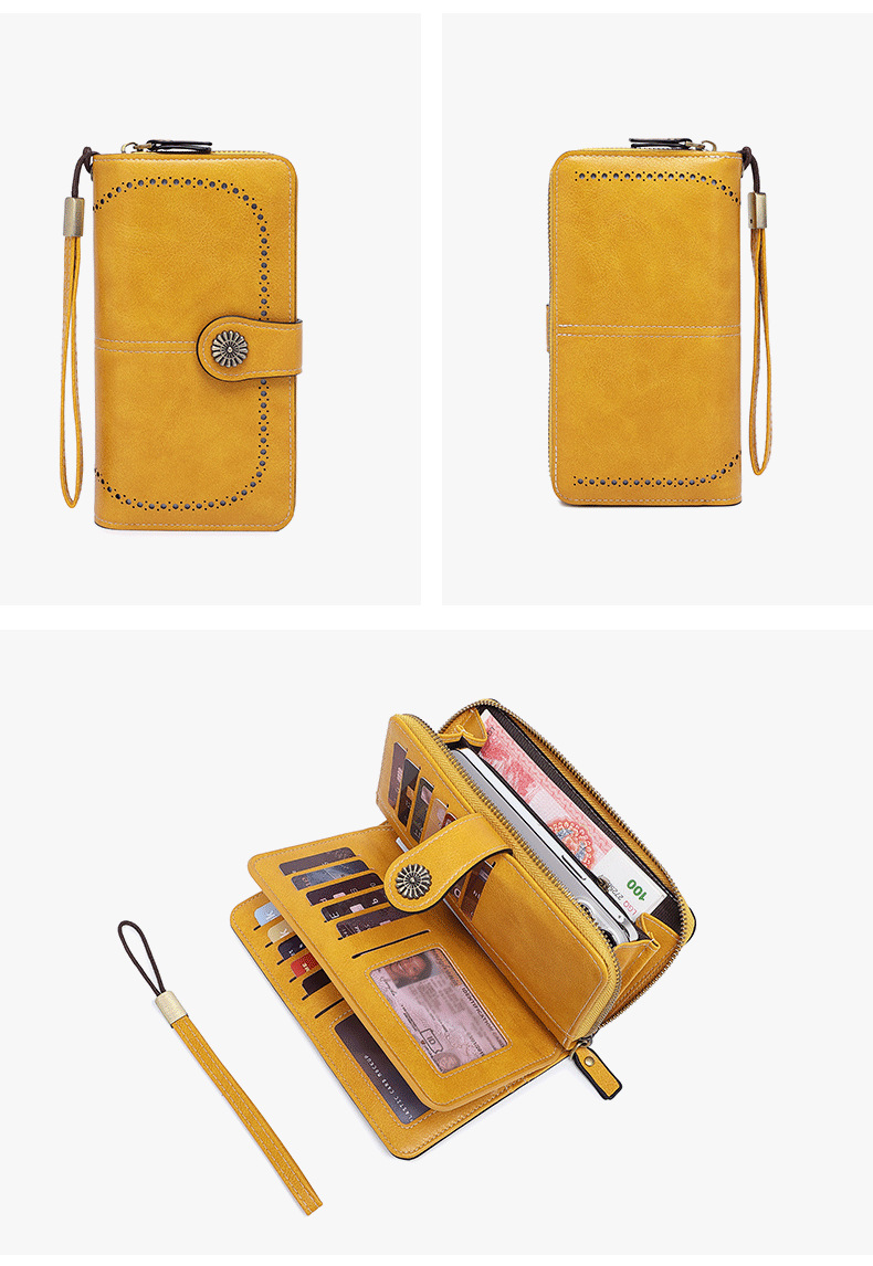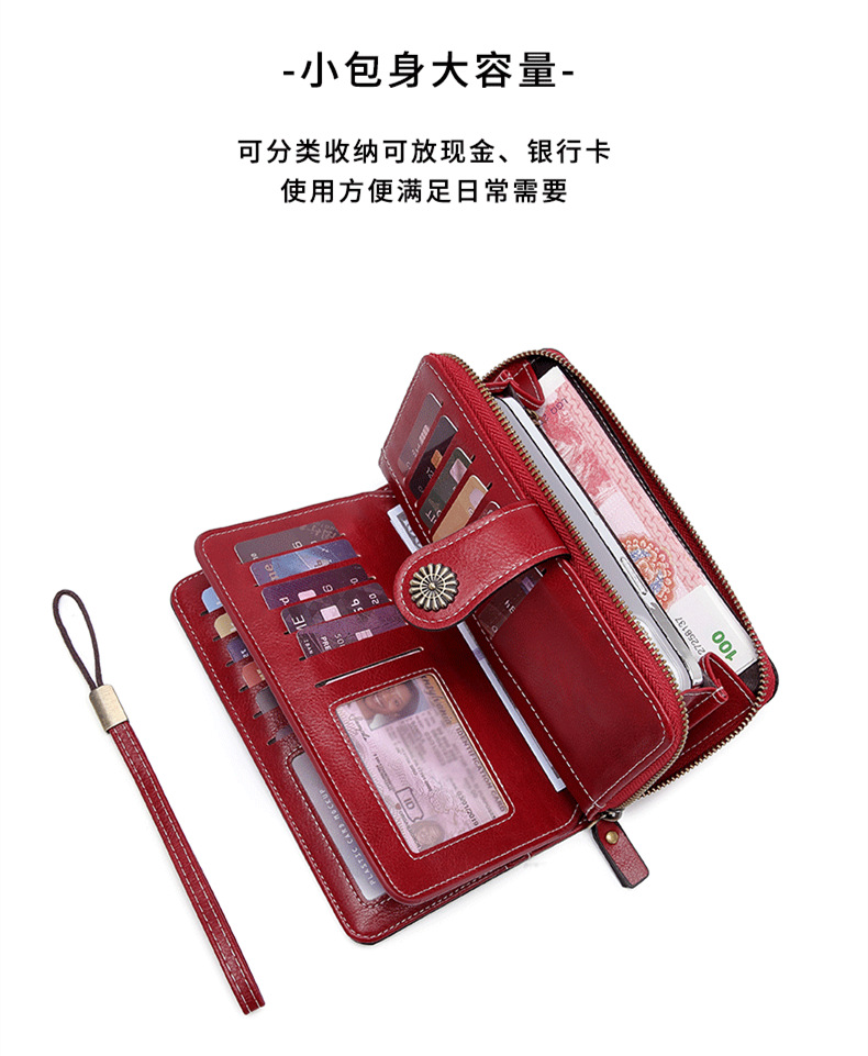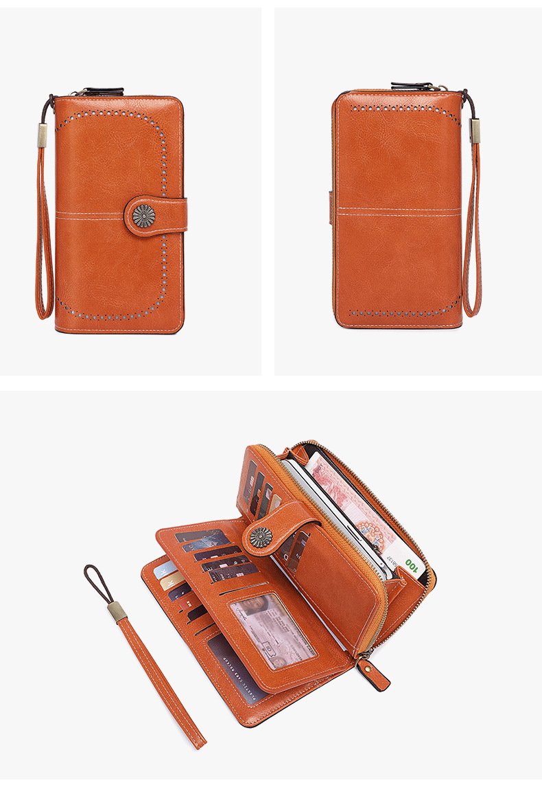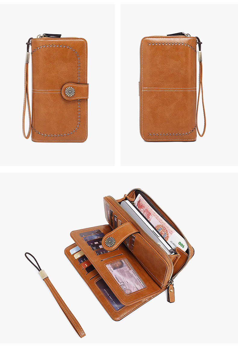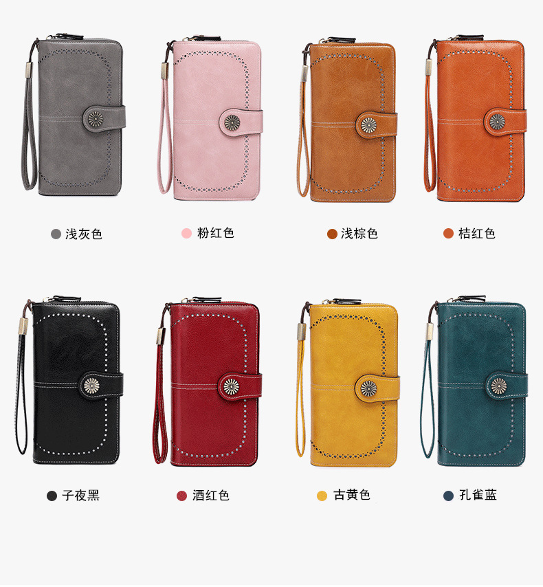 여성의 새로운 대용량 동전 지갑 휴대 전화 가방 오일 가죽 핸드백 긴 지퍼 빈 동전 가방 카드 가방 H197스토어 가기