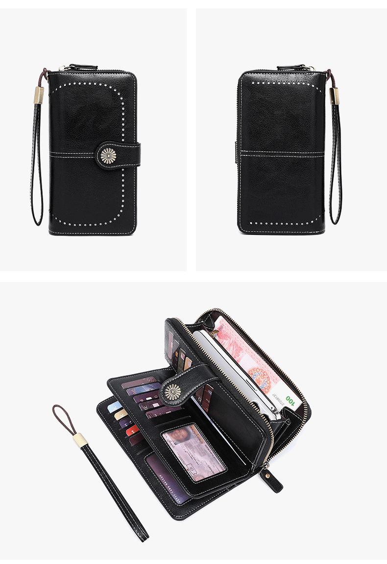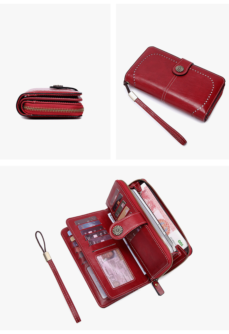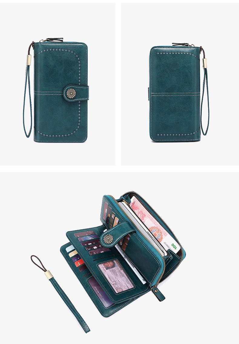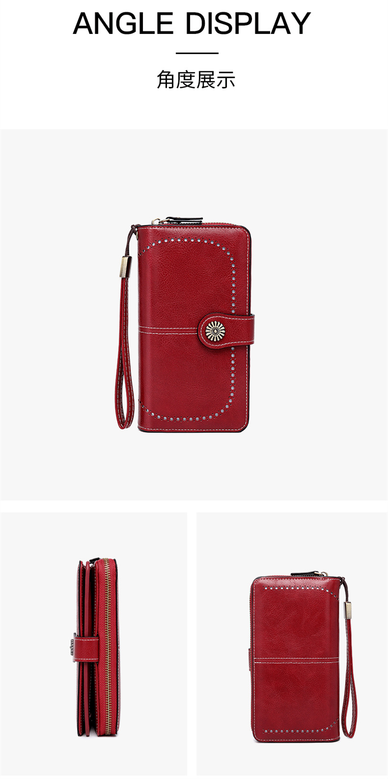 여성의 새로운 대용량 동전 지갑 휴대 전화 가방 오일 가죽 핸드백 긴 지퍼 빈 동전 가방 카드 가방 H197스토어 가기