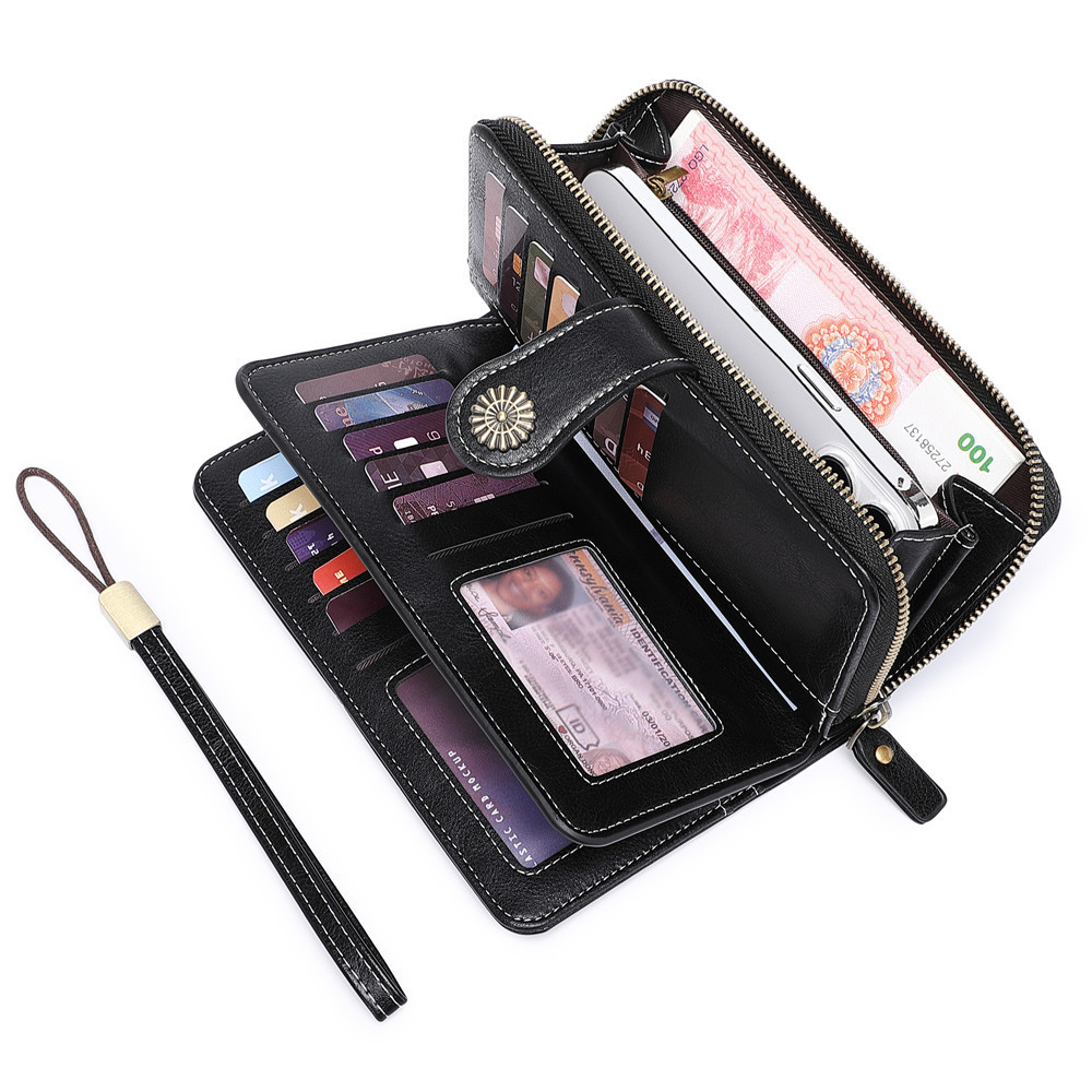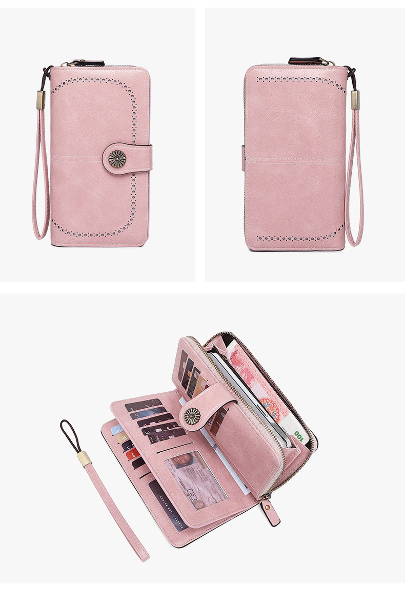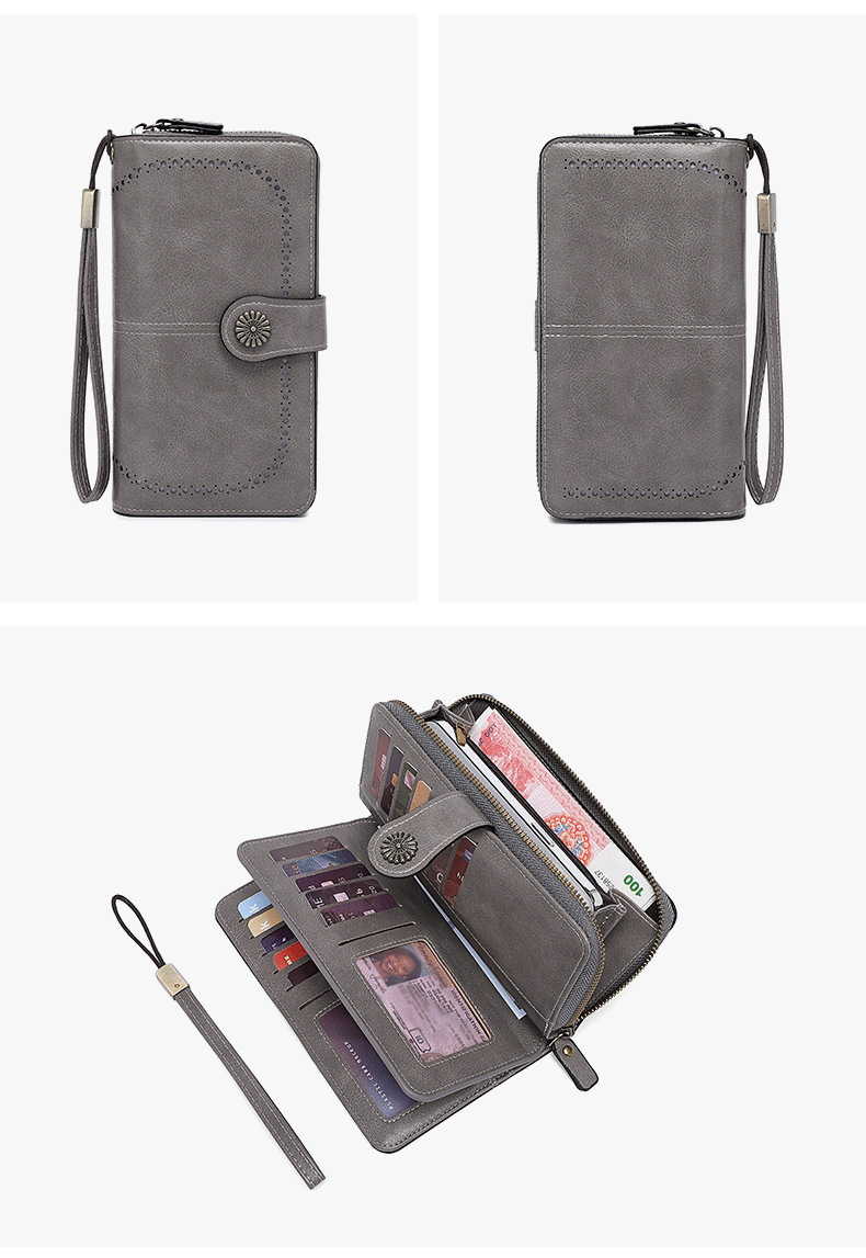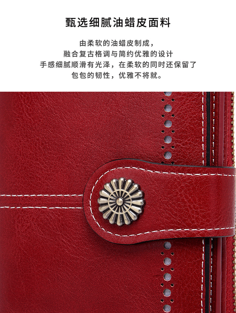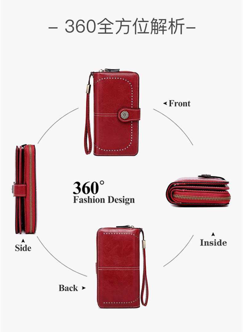 여성의 새로운 대용량 동전 지갑 휴대 전화 가방 오일 가죽 핸드백 긴 지퍼 빈 동전 가방 카드 가방 H197스토어 가기