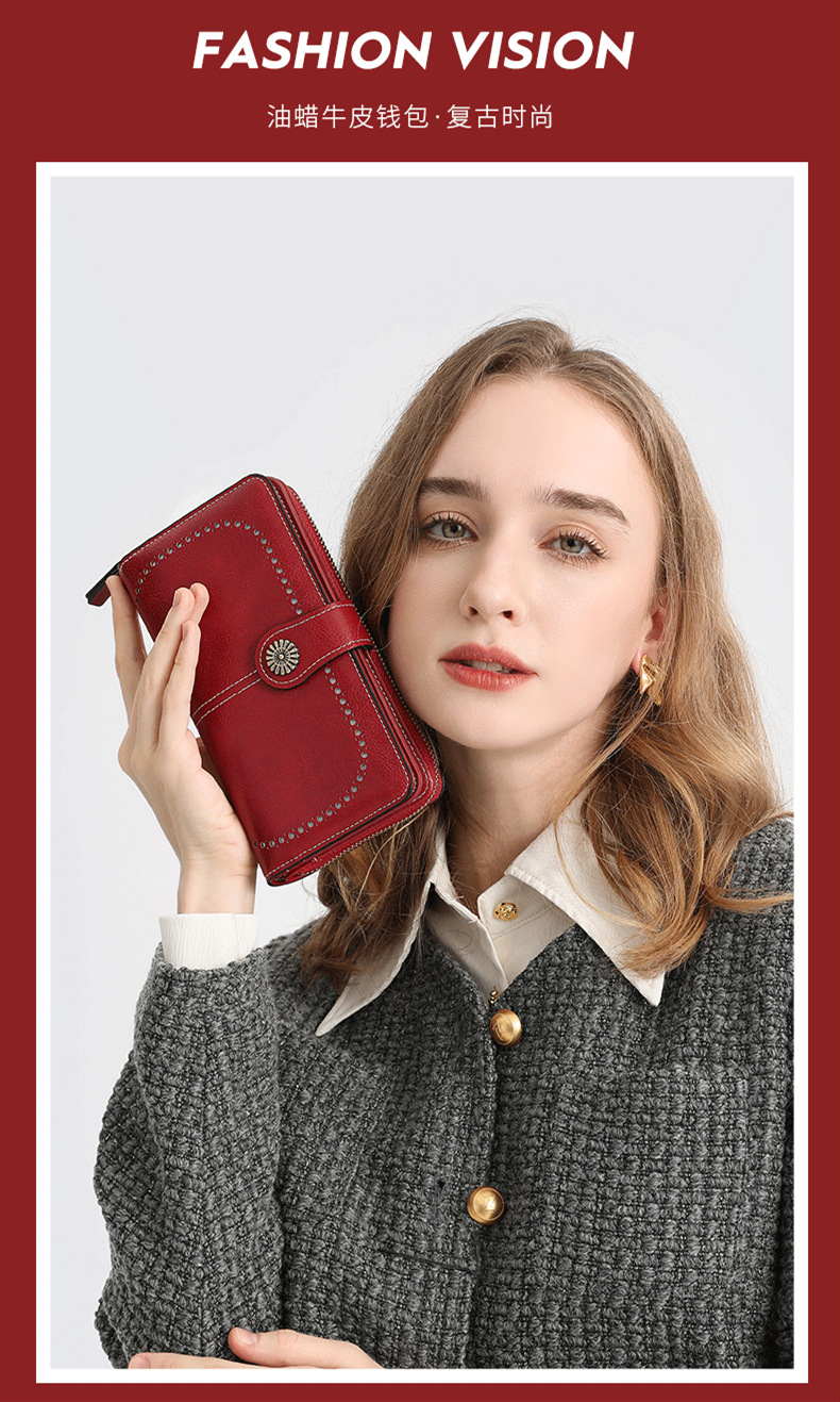 여성의 새로운 대용량 동전 지갑 휴대 전화 가방 오일 가죽 핸드백 긴 지퍼 빈 동전 가방 카드 가방 H197