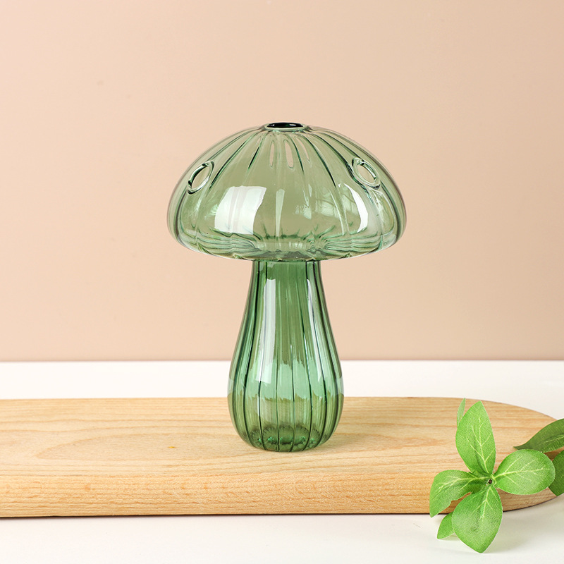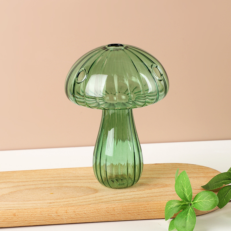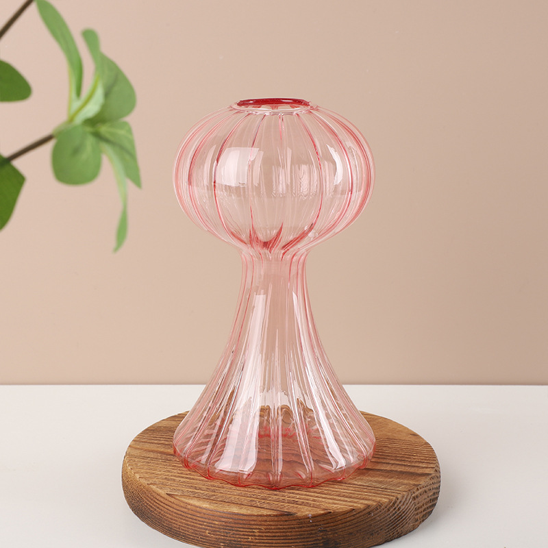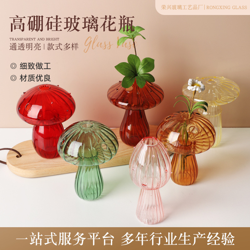 공장 도매 창조적 인 북유럽 스타일 빛 럭셔리 복고풍 투명 유리 버섯 호박 꽃병 거실 말린 꽃