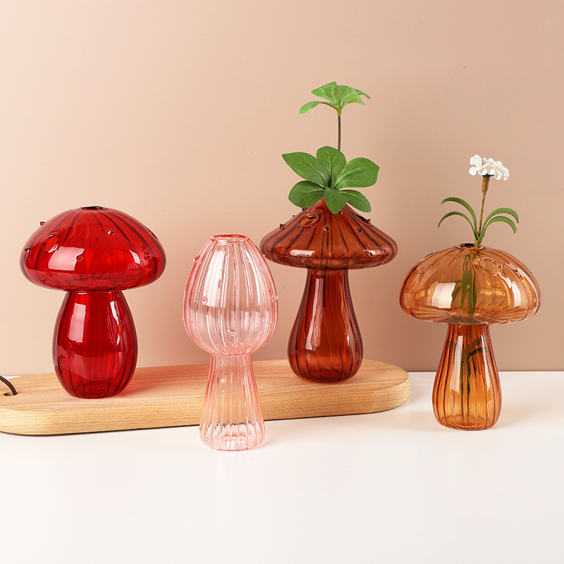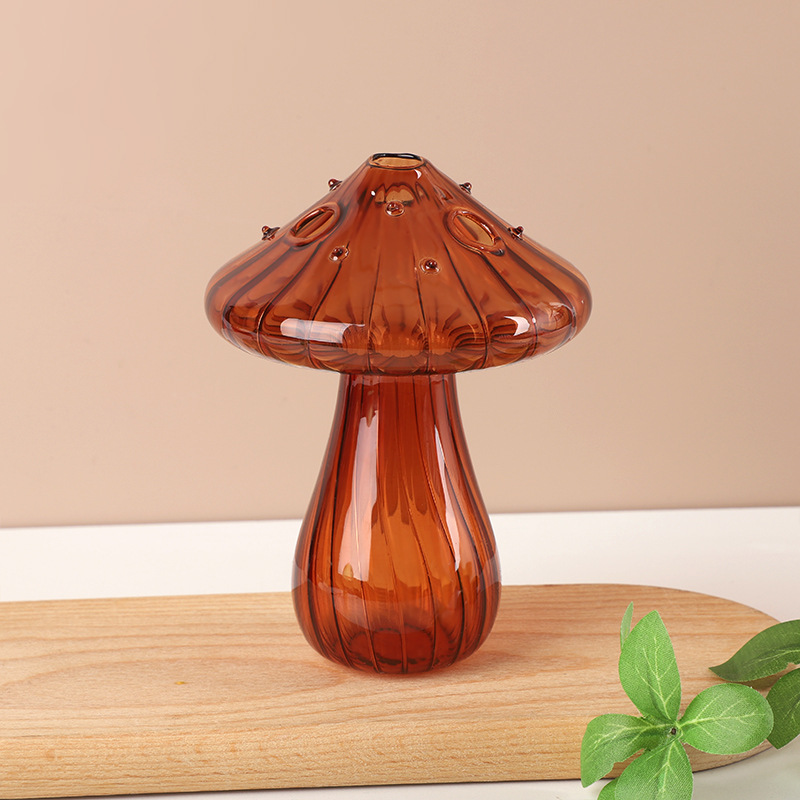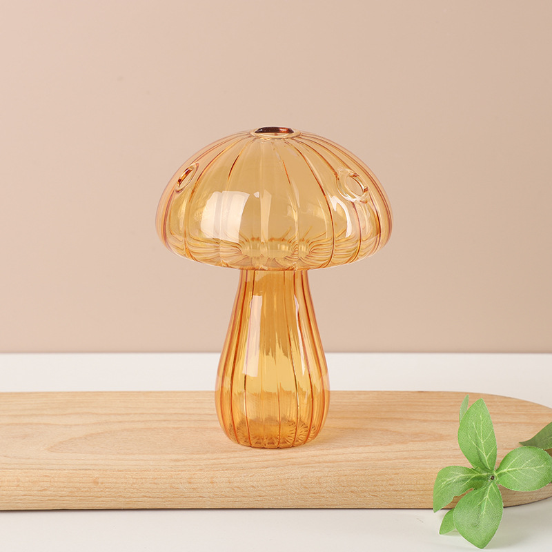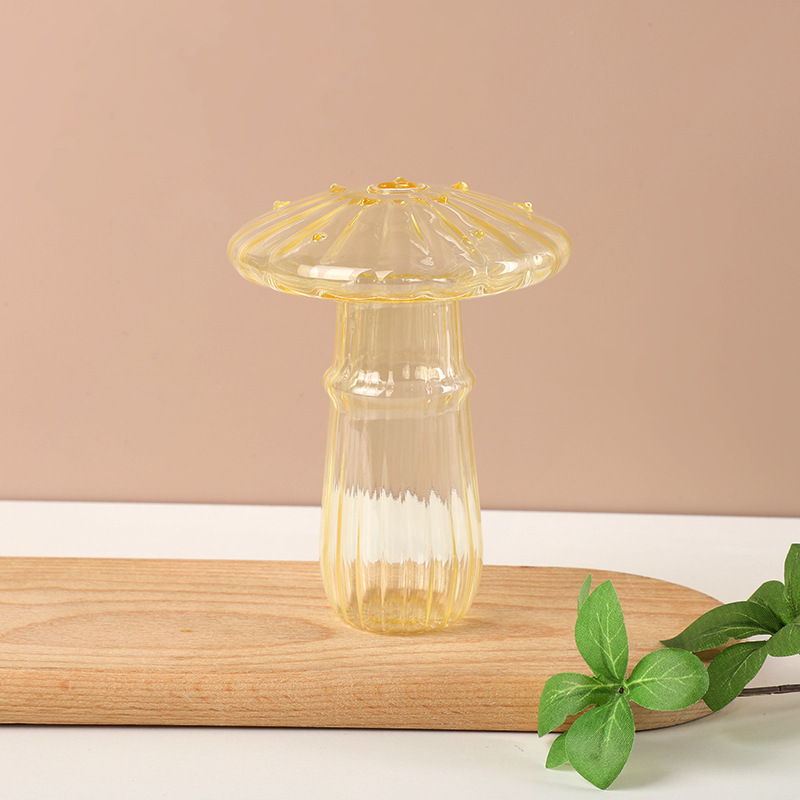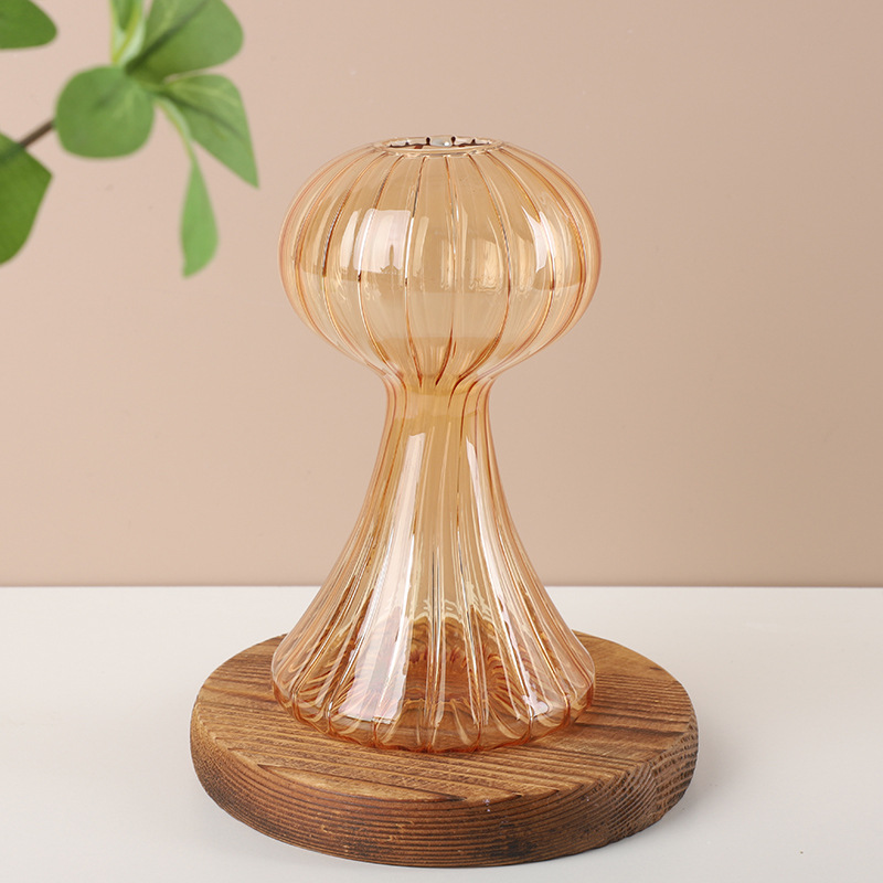 공장 도매 창조적 인 북유럽 스타일 빛 럭셔리 복고풍 투명 유리 버섯 호박 꽃병 거실 말린 꽃스토어 가기