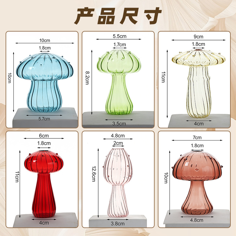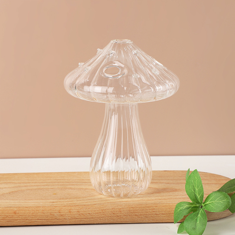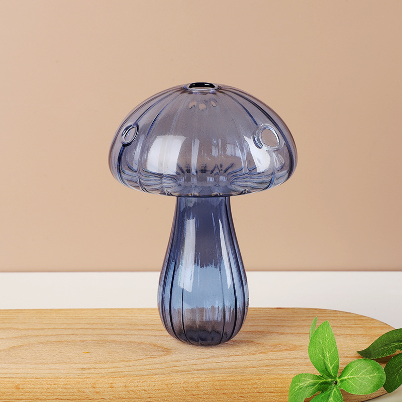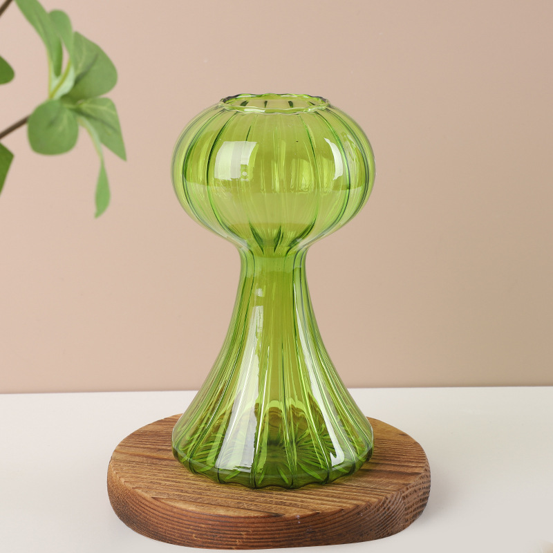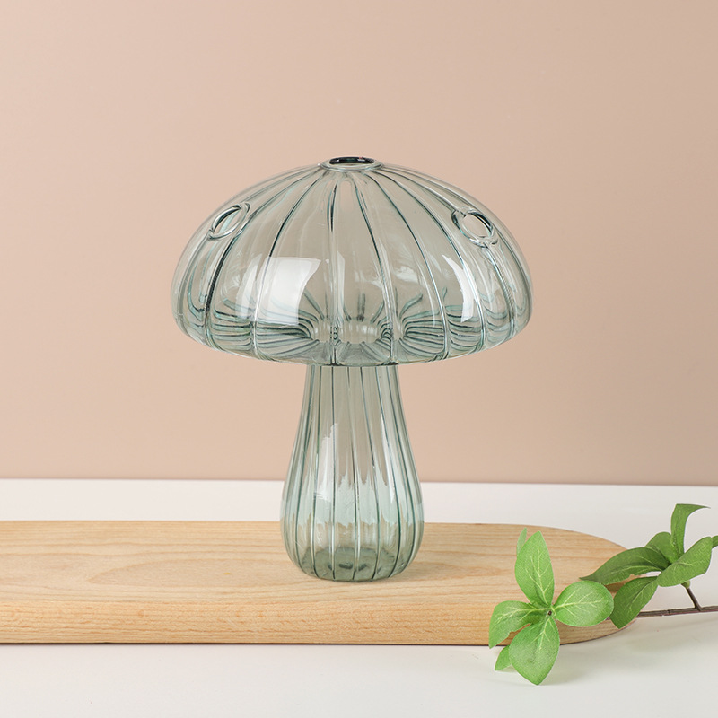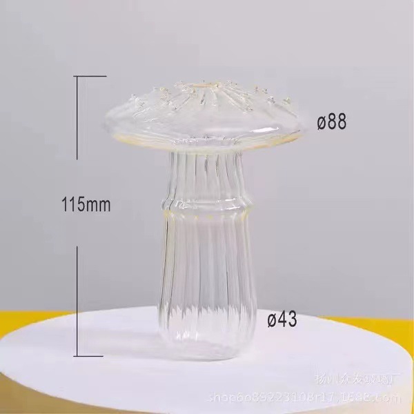 공장 도매 창조적 인 북유럽 스타일 빛 럭셔리 복고풍 투명 유리 버섯 호박 꽃병 거실 말린 꽃스토어 가기