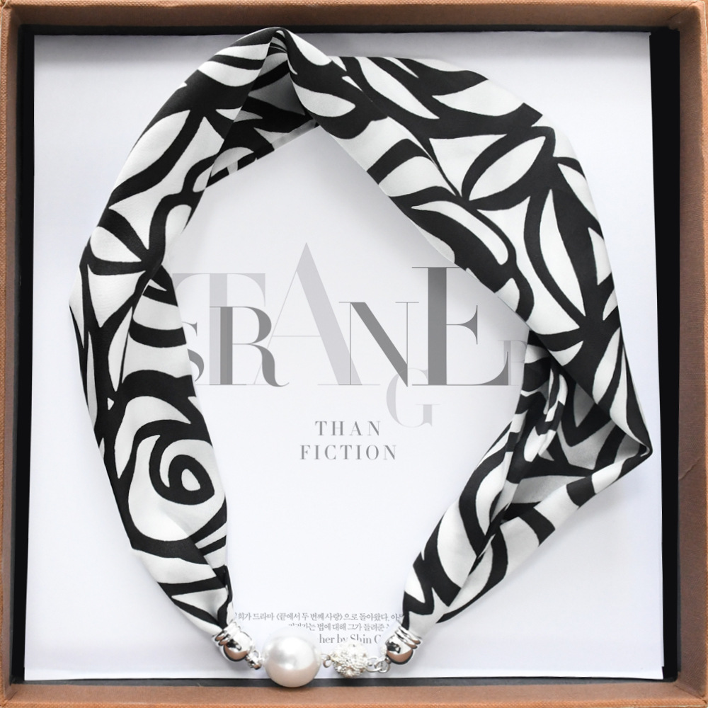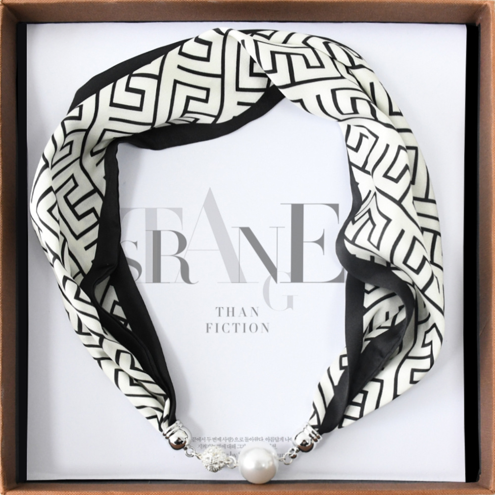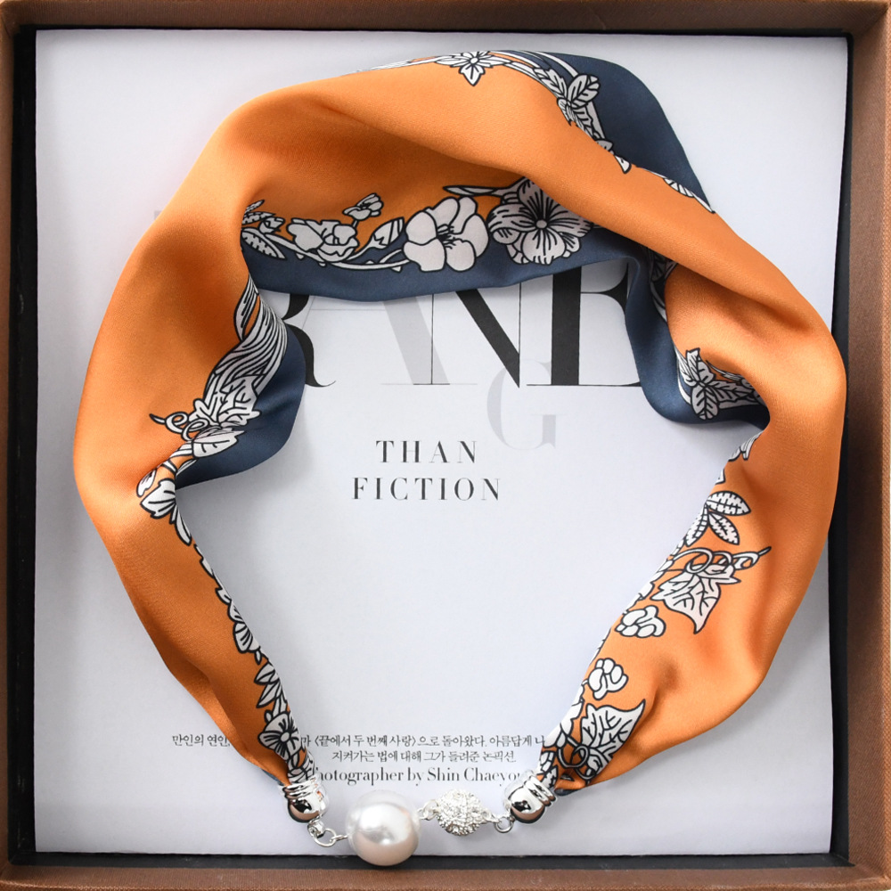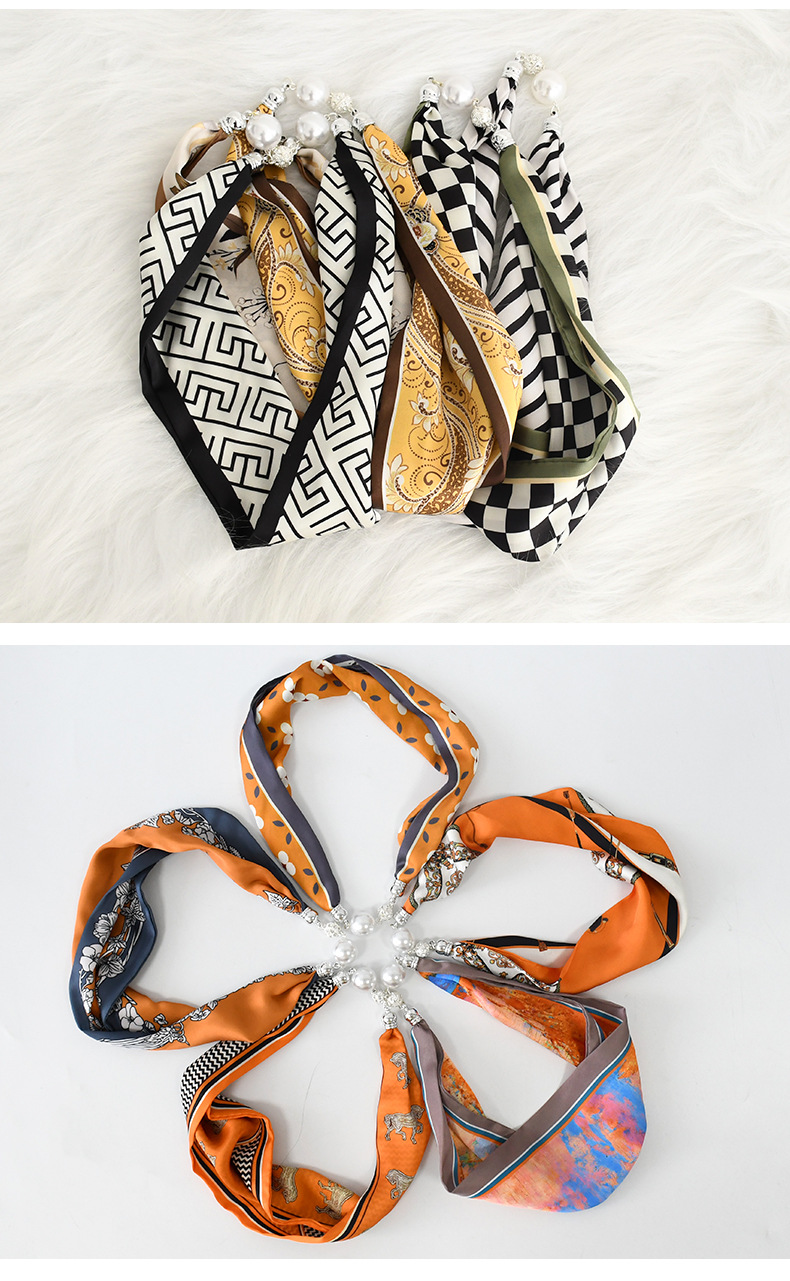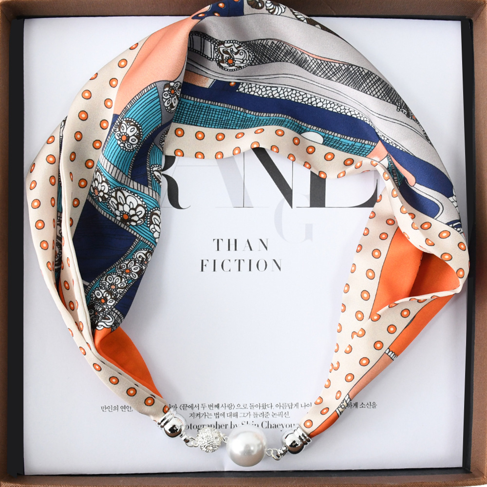 중국 스타일 복고풍 다기능 게으른 마그네틱 실크 스카프 작은 긴 다이아몬드 마그네틱 버클 작은 스카프 헤어 밴드 도매
