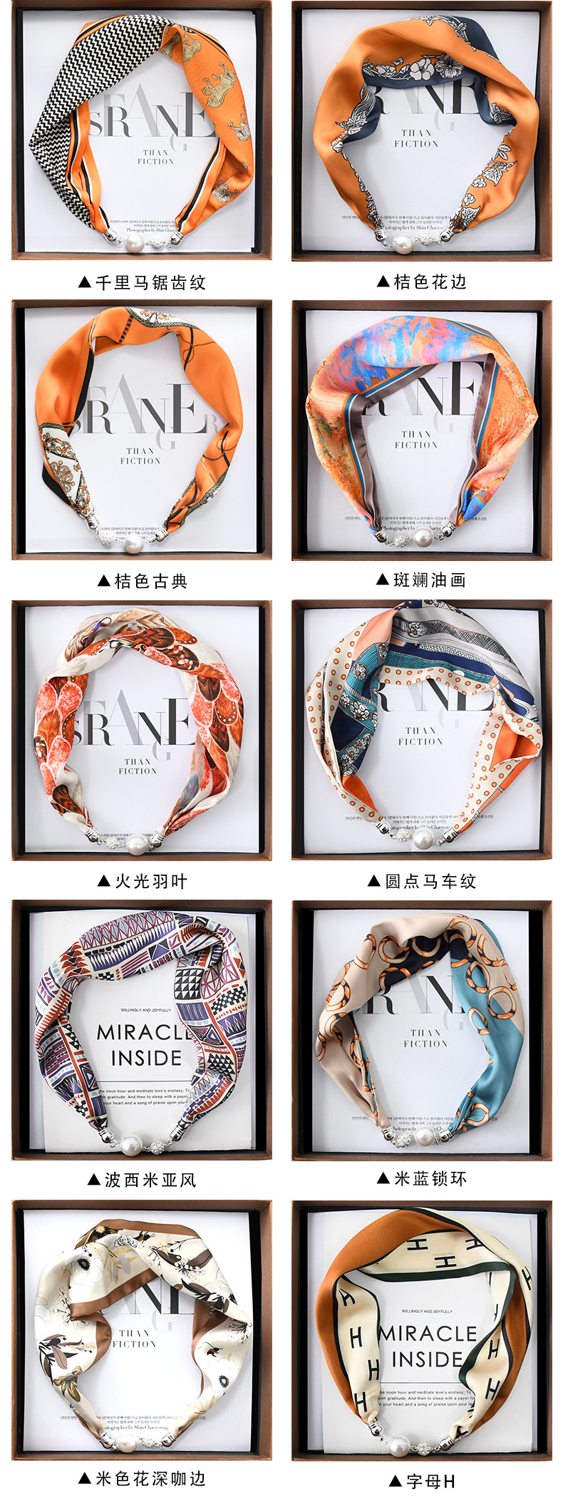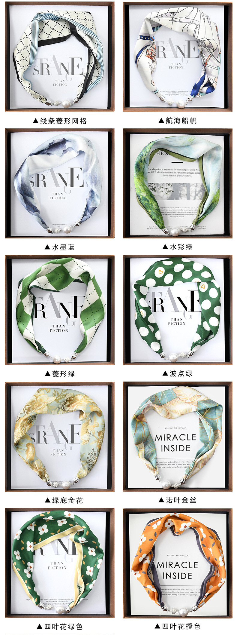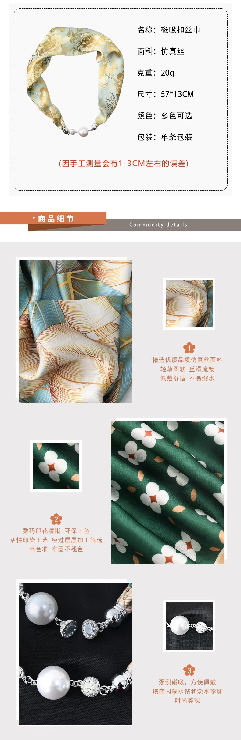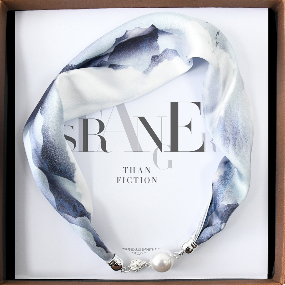 중국 스타일 복고풍 다기능 게으른 마그네틱 실크 스카프 작은 긴 다이아몬드 마그네틱 버클 작은 스카프 헤어 밴드 도매