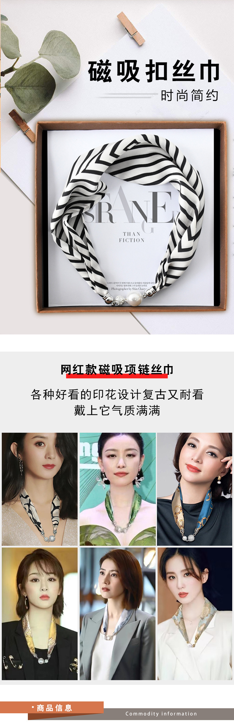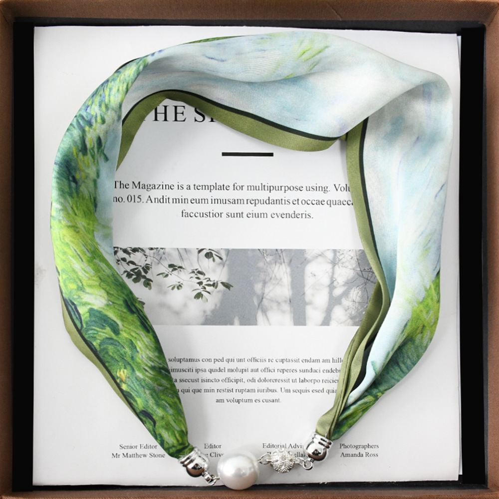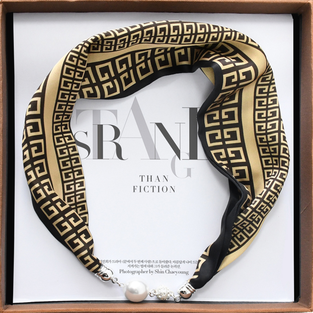 중국 스타일 복고풍 다기능 게으른 마그네틱 실크 스카프 작은 긴 다이아몬드 마그네틱 버클 작은 스카프 헤어 밴드 도매스토어 가기