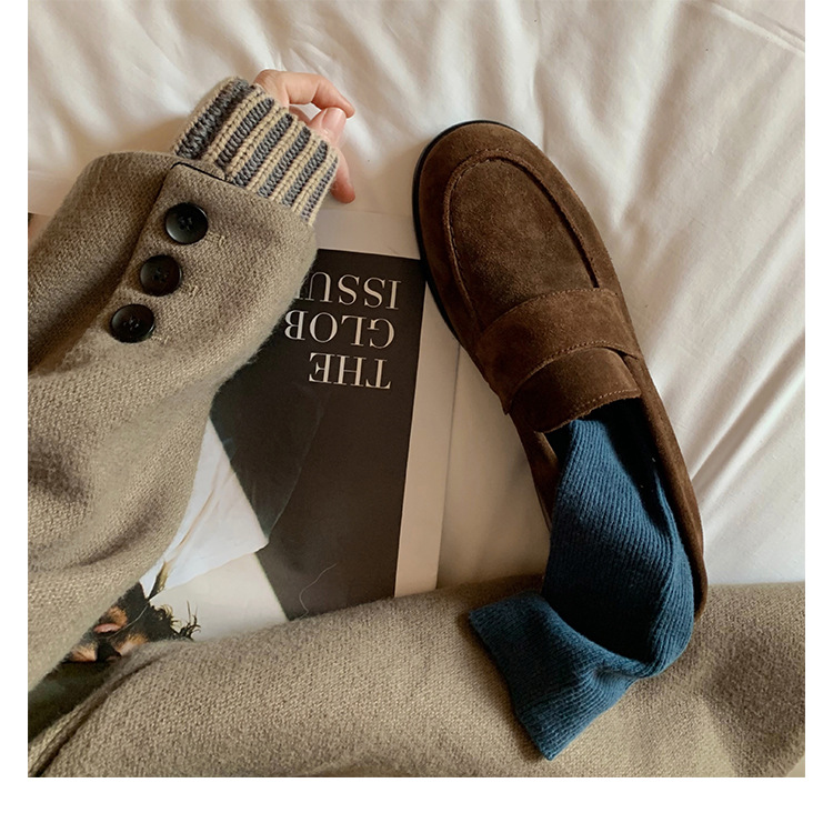 [매스 재고] 포도 어머니 Maillard 영국 스타일 게으른 가죽 여성용 작은 두꺼운 굽 Lefu 싱글 신발스토어 가기