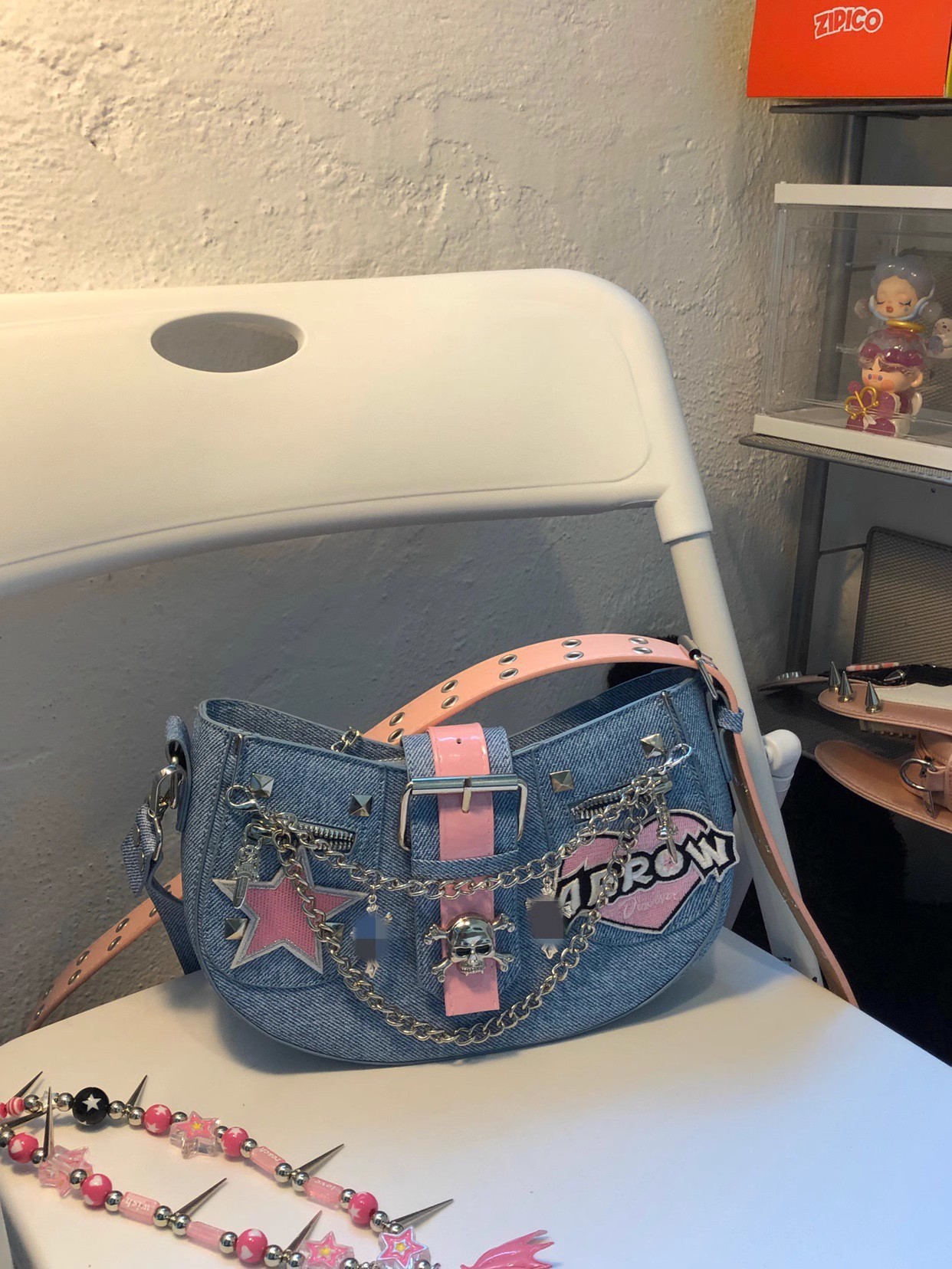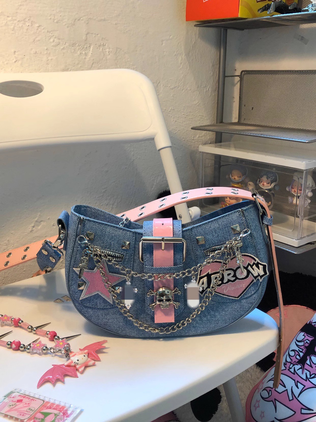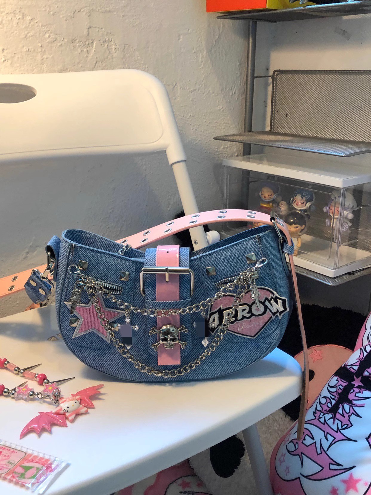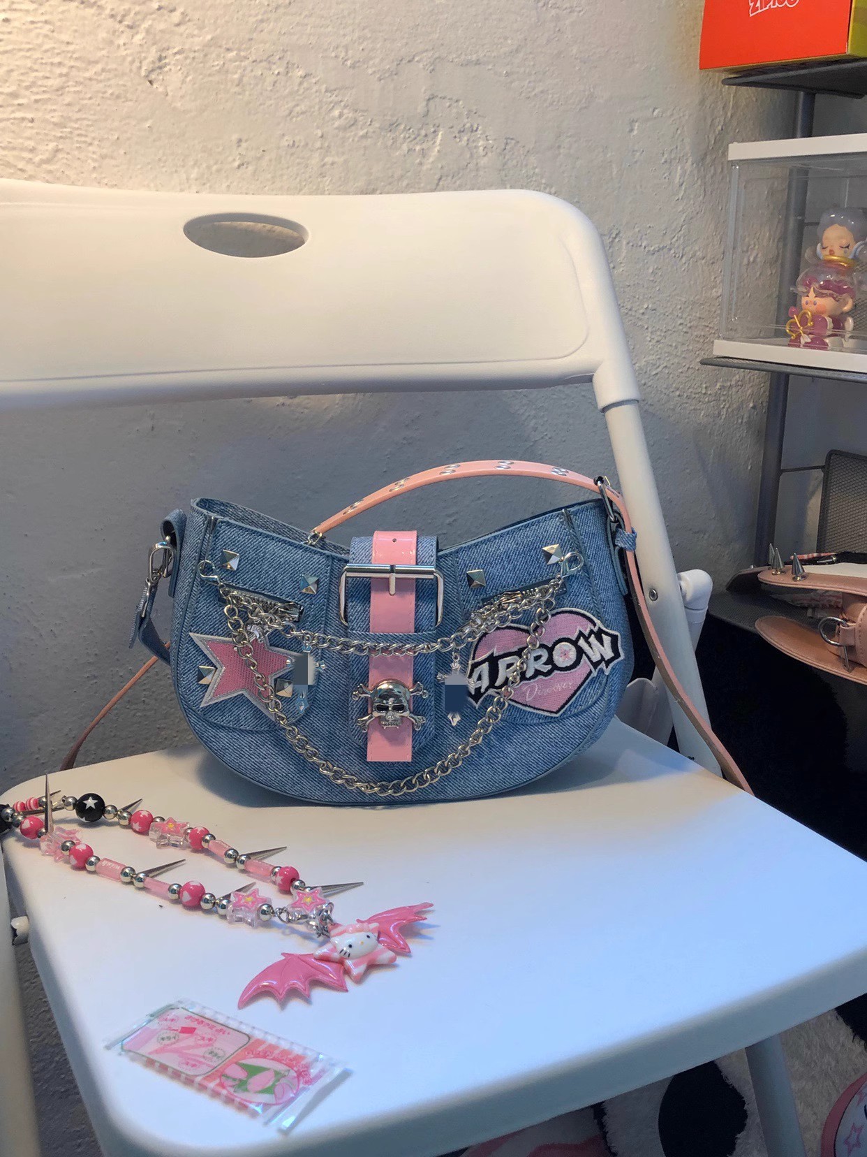 핑크 바비 소녀 성격 데님 메신저 가방 y2g 하위 문화 성격 핸드백스토어 가기