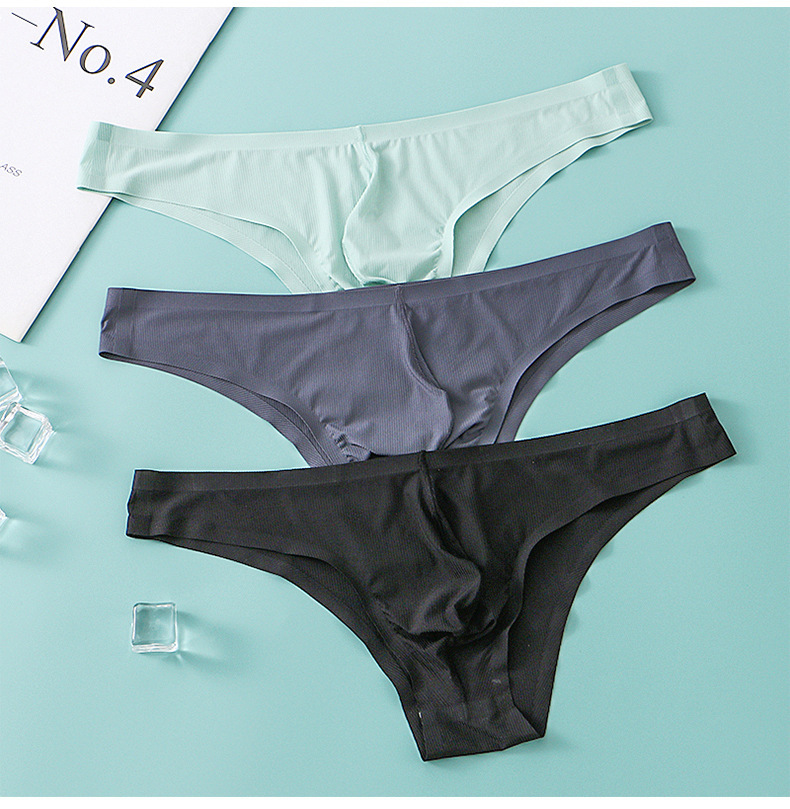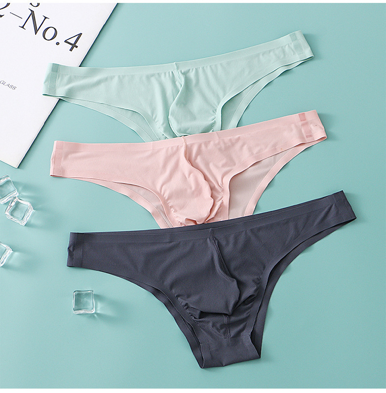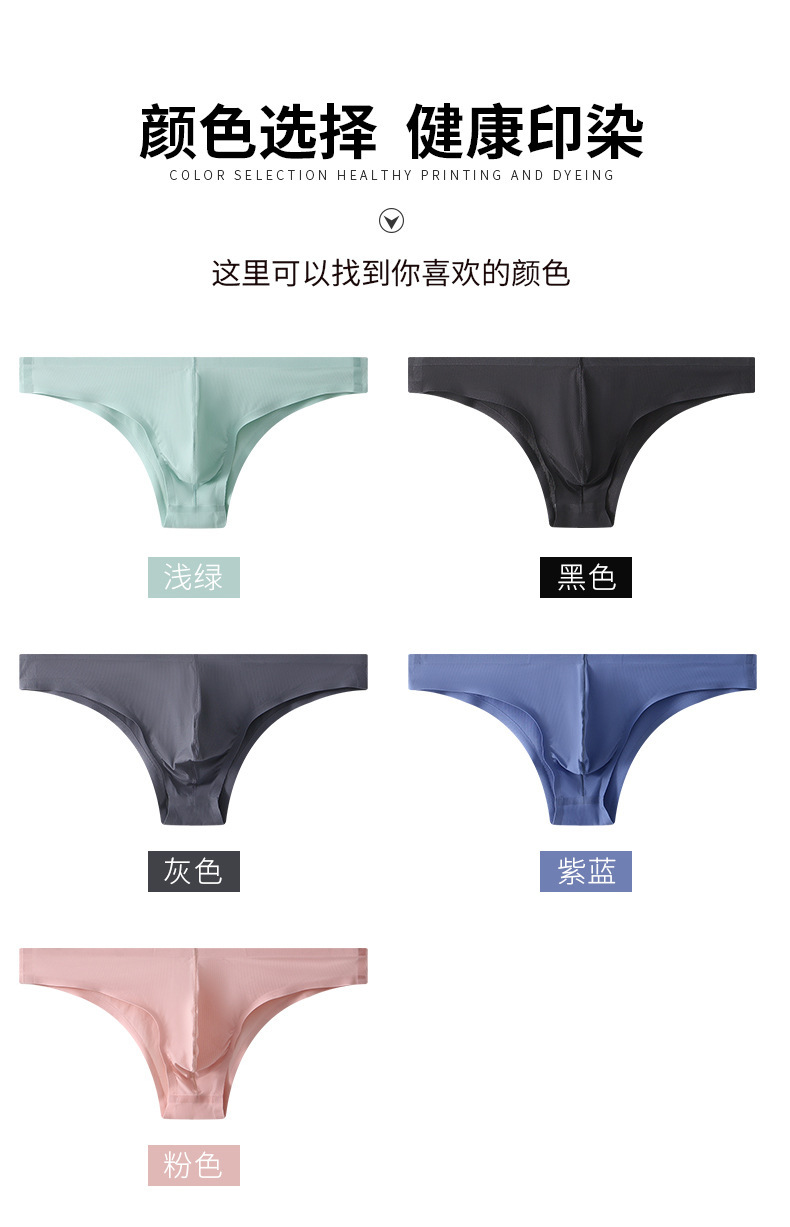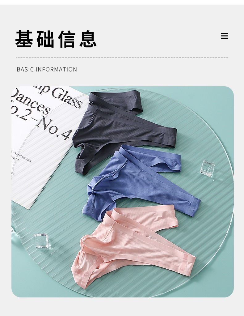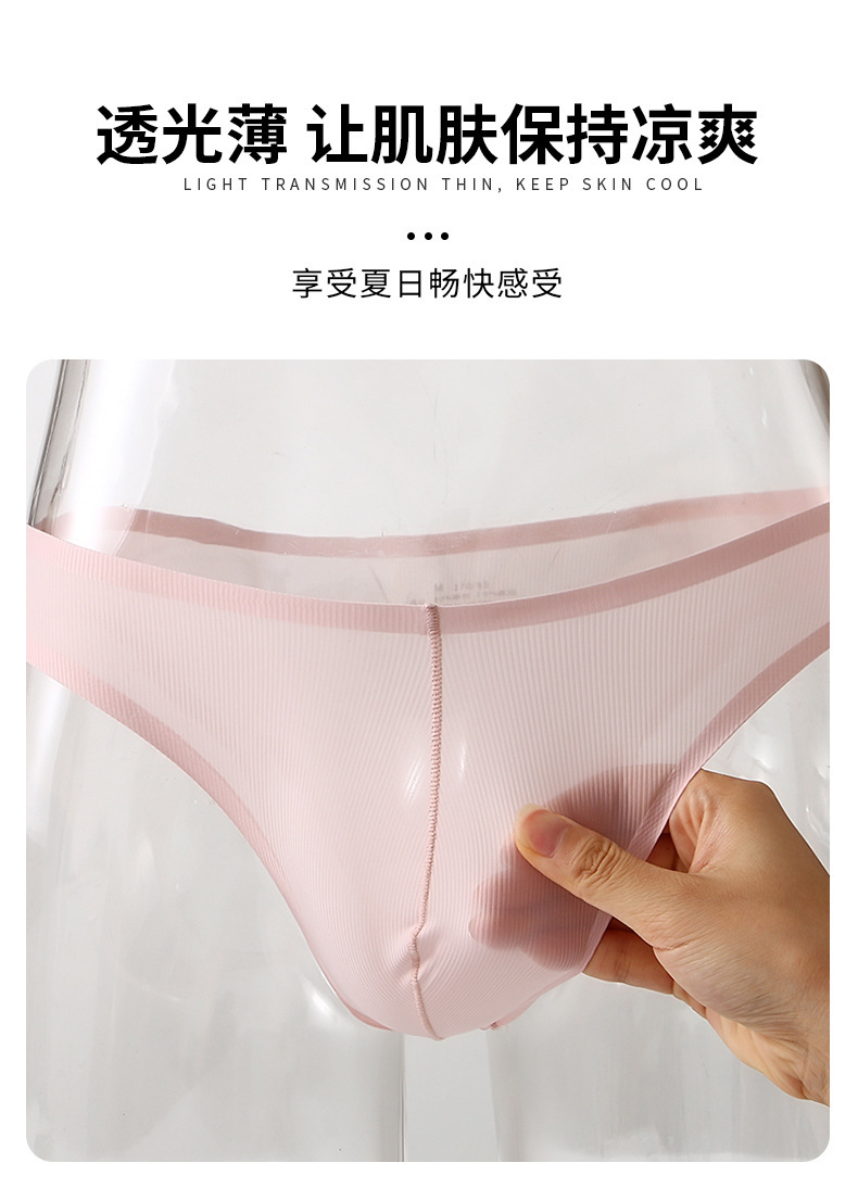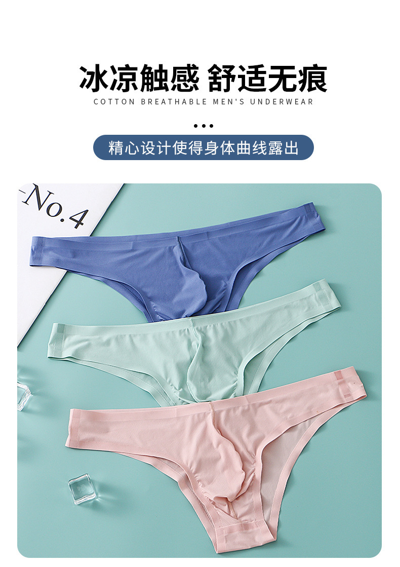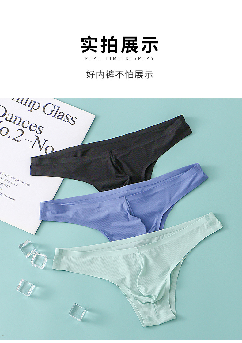 통기성 좋은 아이스 실크 무봉제 일체형 남성용 삼각 팬티, 로우 웨이스트 섹시 반엉덩이 커버 삼각 팬티스토어 가기