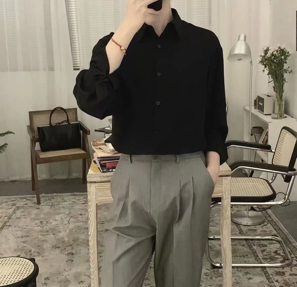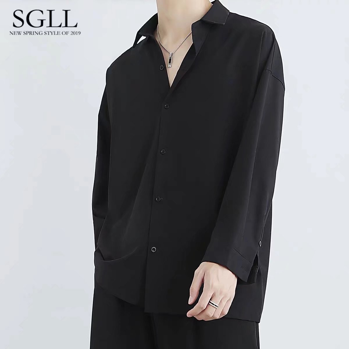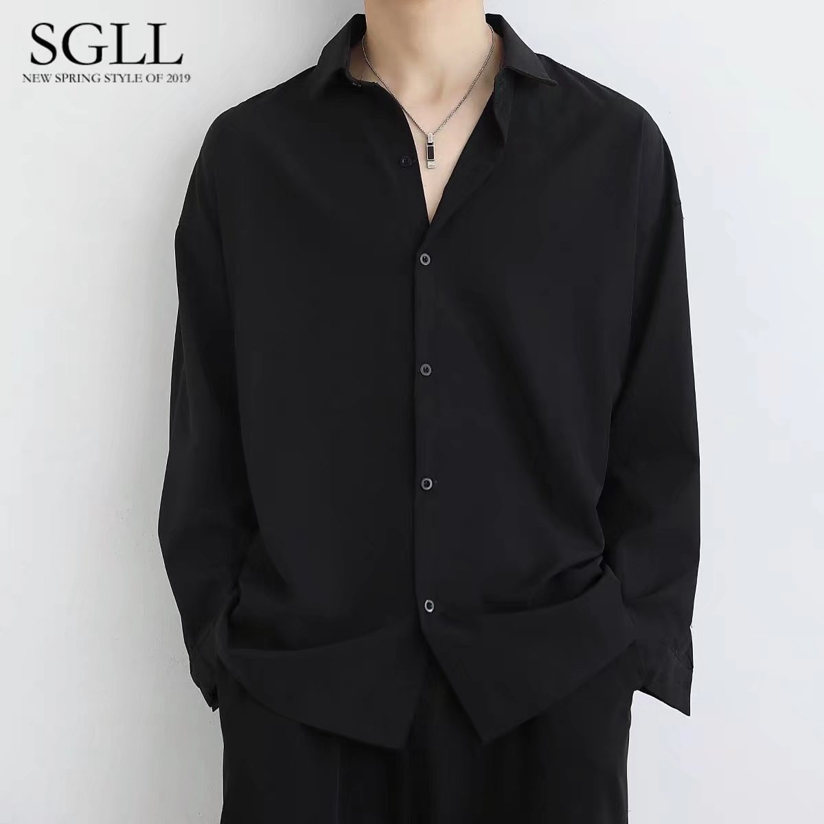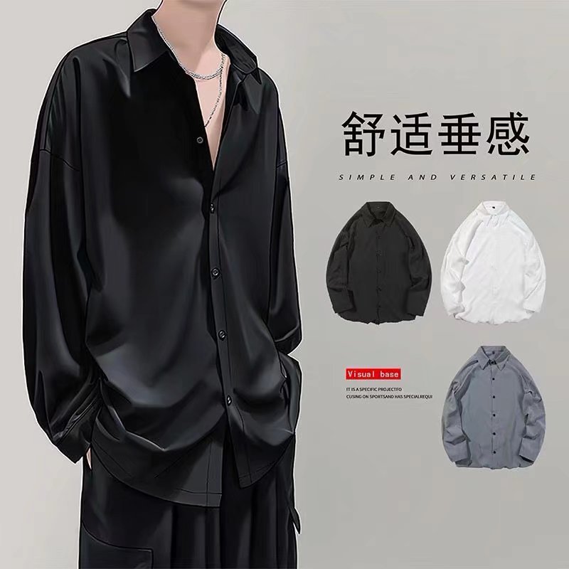 새로운 블랙 셔츠 남성용 긴팔 한국 유행 잘 생긴 유니폼 재킷 봄과 가을 캐주얼 남성용 흰색 셔츠 남성용스토어 가기