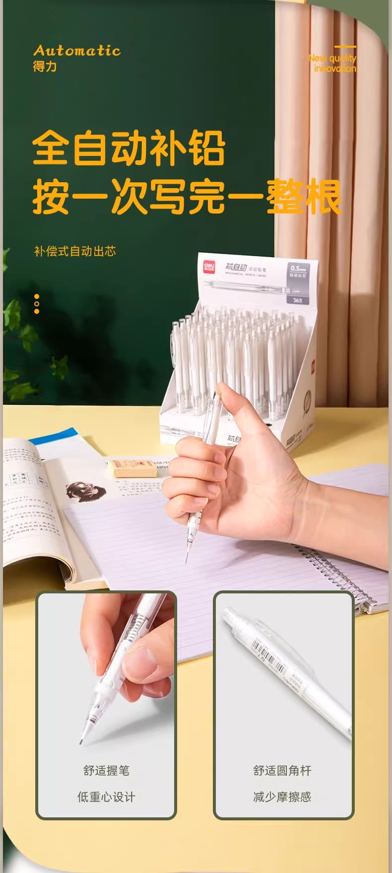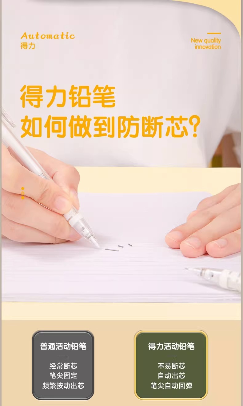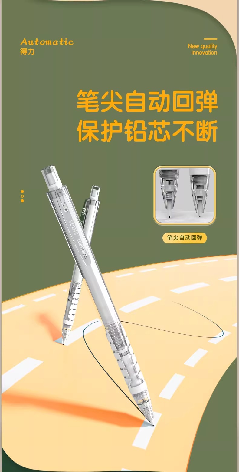 델리 자동 연필 초등학생 특별 블랙 기술 연속 코어 자동 펜 0.5 hb0.7 프레스 펜 도매