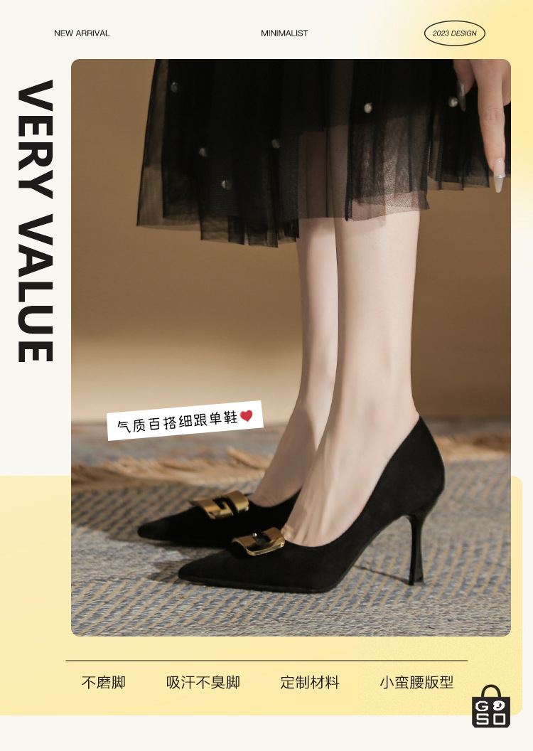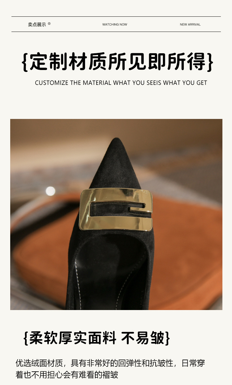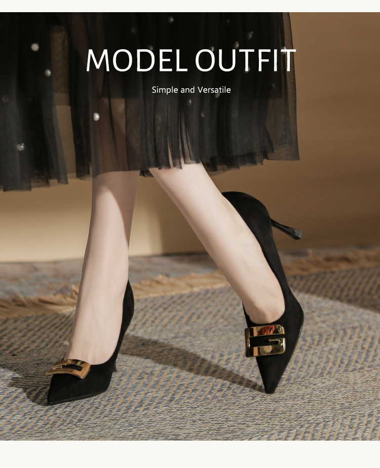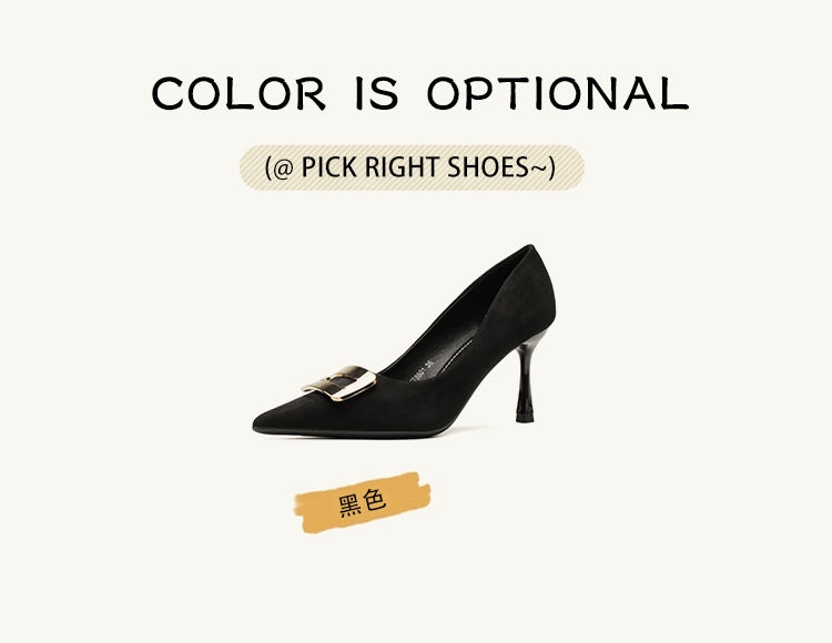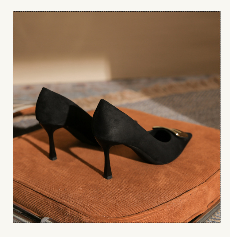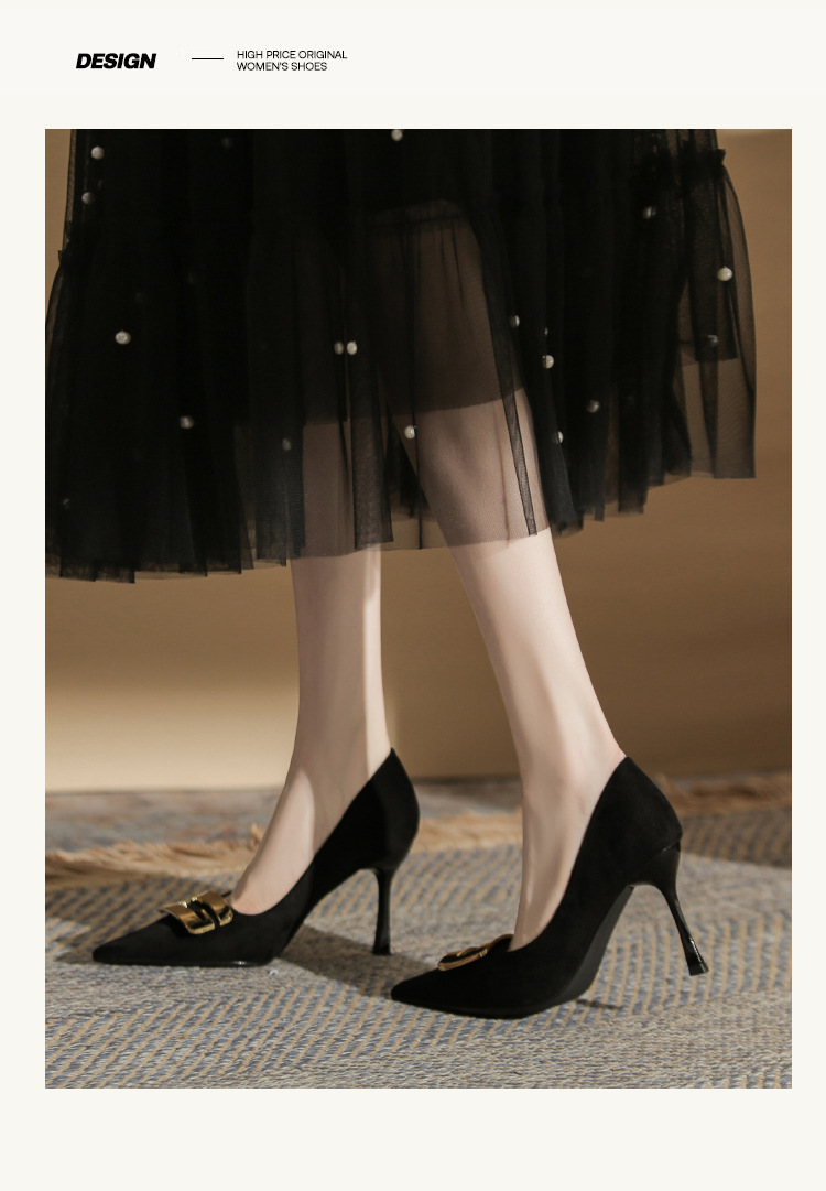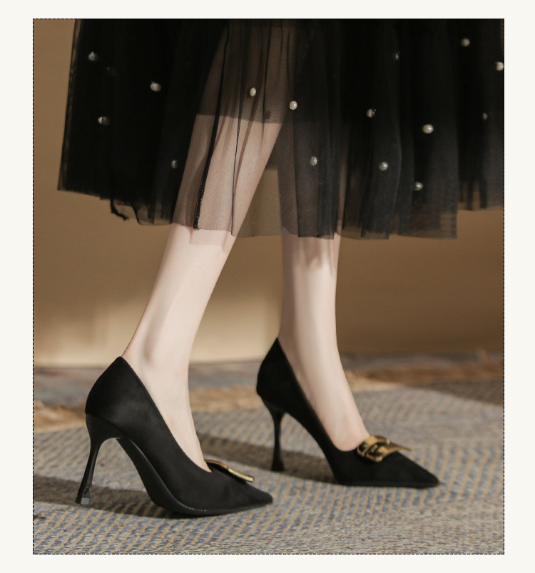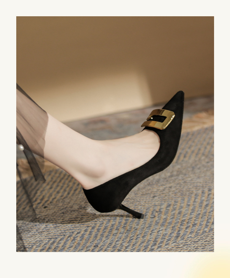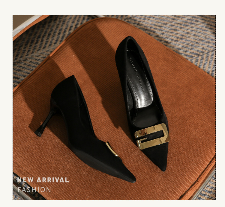 8801-97A 고급 메탈 버클 뾰족코 얕은 굽 얇은 굽 하이힐 2024 신상 여성용 하이힐스토어 가기
