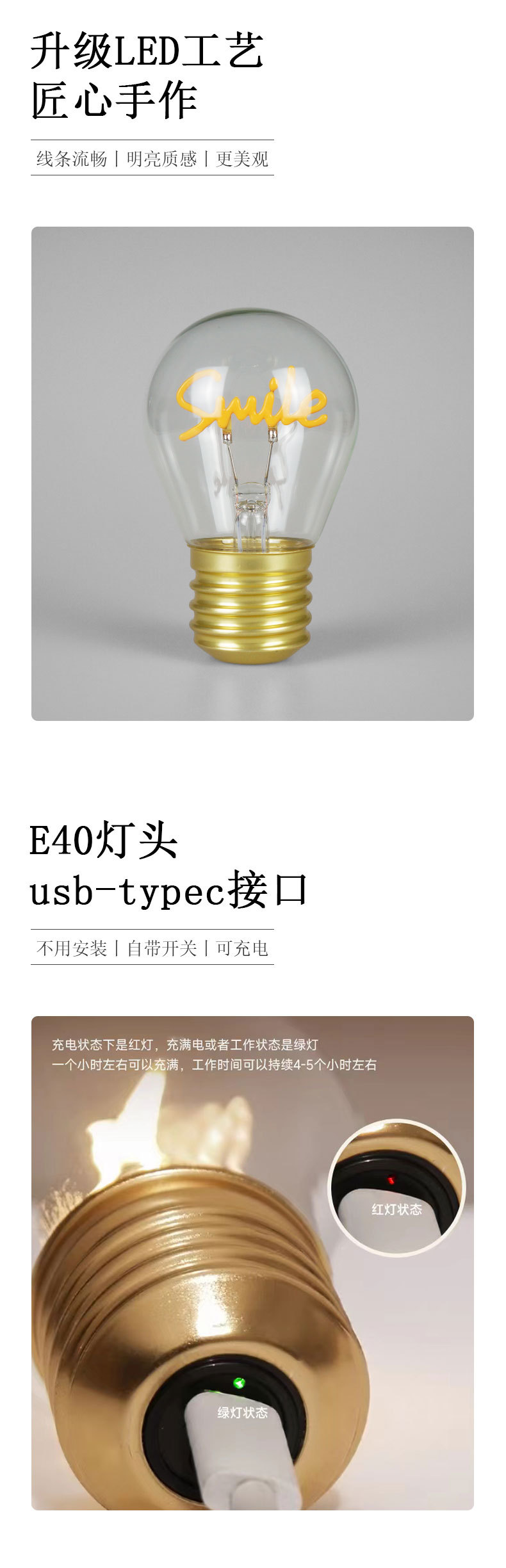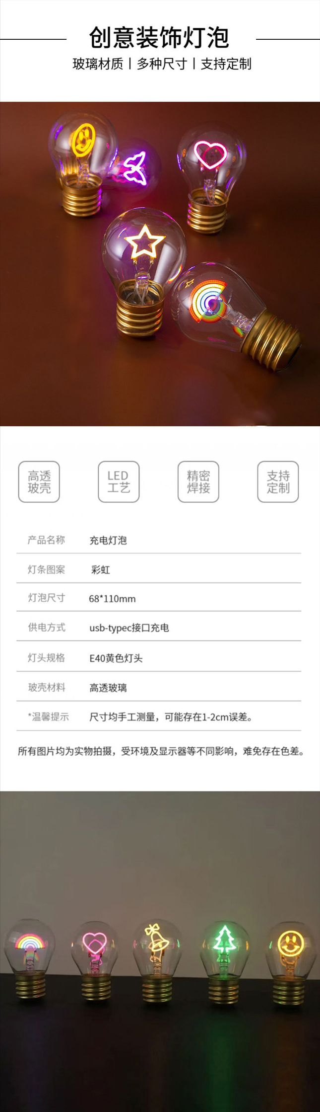 에디슨 만화 모양 전구 LED 충전 전구 컬러 재미있는 장식 램프 휴대용 야간 조명