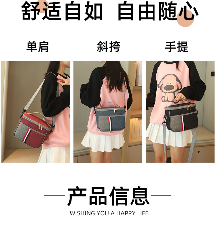 크로스보더 도시락 가방, 휴대용 아이스백, 크로스백, 대용량 사각형 보온백, 야외 도시락 보온가방, 야외 피크닉용