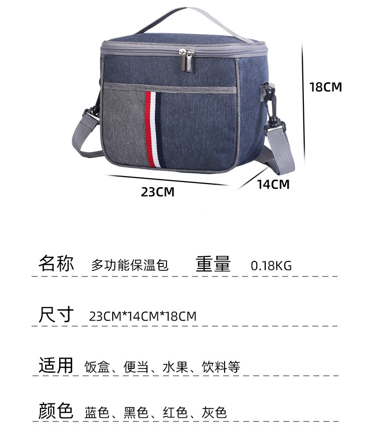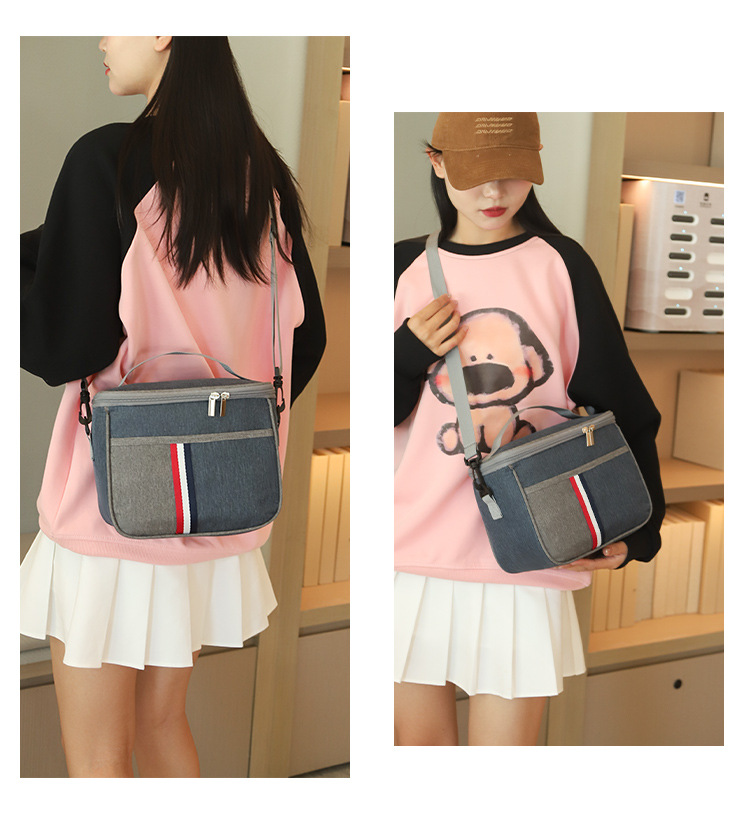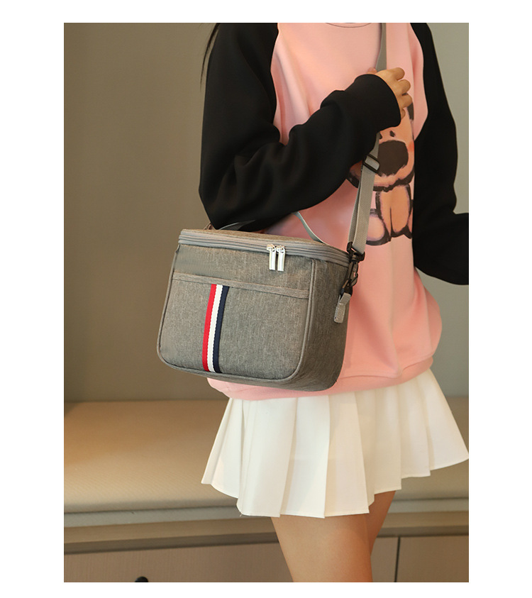 크로스보더 도시락 가방, 휴대용 아이스백, 크로스백, 대용량 사각형 보온백, 야외 도시락 보온가방, 야외 피크닉용스토어 가기