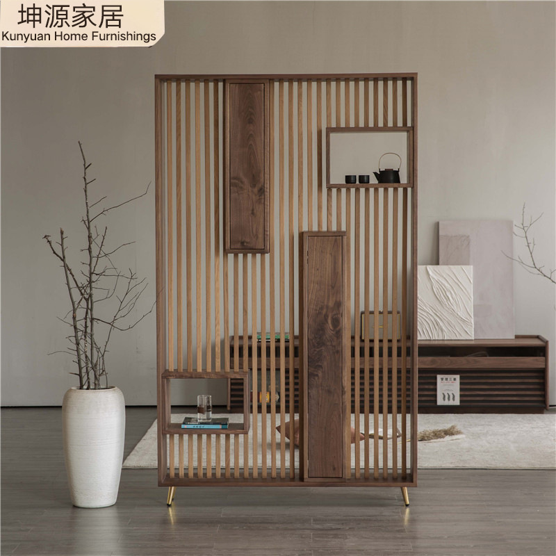 북미 블랙 월넛 레드 오크 체리 스크린 장붓 구멍 및 장부 현관 파티션 골동품 프레임 현대 간단한 중국 스타일