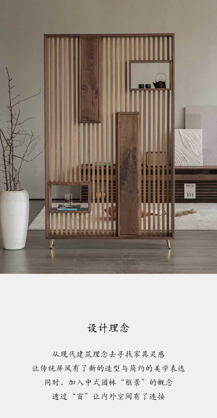 북미 블랙 월넛 레드 오크 체리 스크린 장붓 구멍 및 장부 현관 파티션 골동품 프레임 현대 간단한 중국 스타일스토어 가기