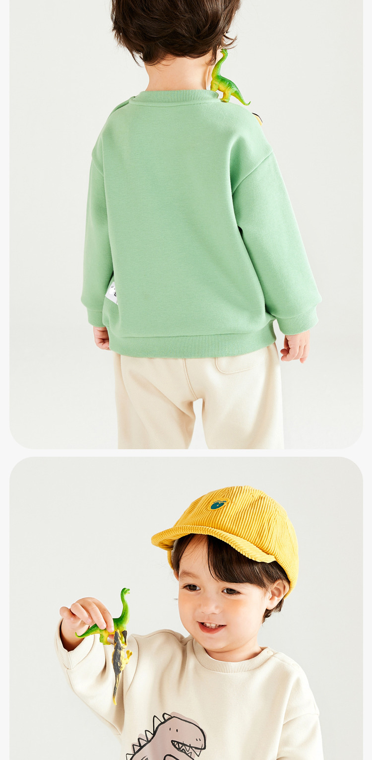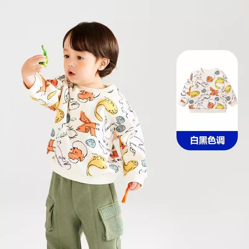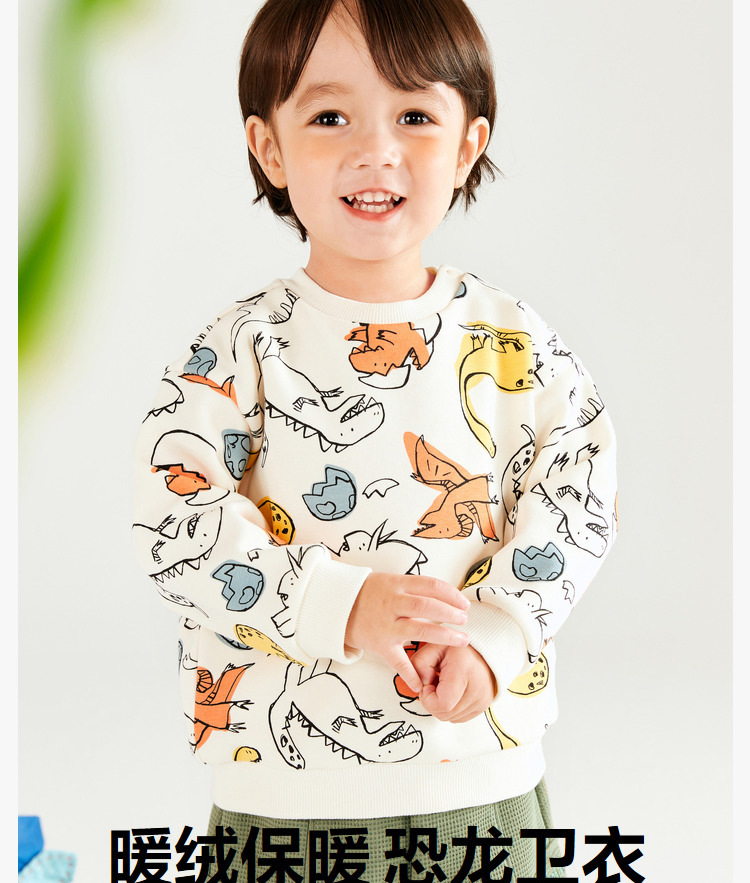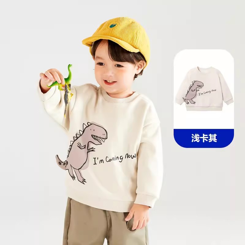 남아용 플리스 스웨트셔츠 여아용 가을 겨울 2025 신상 아동용 유아용 공룡 프린트 아기 상의 따뜻한 풀오버스토어 가기