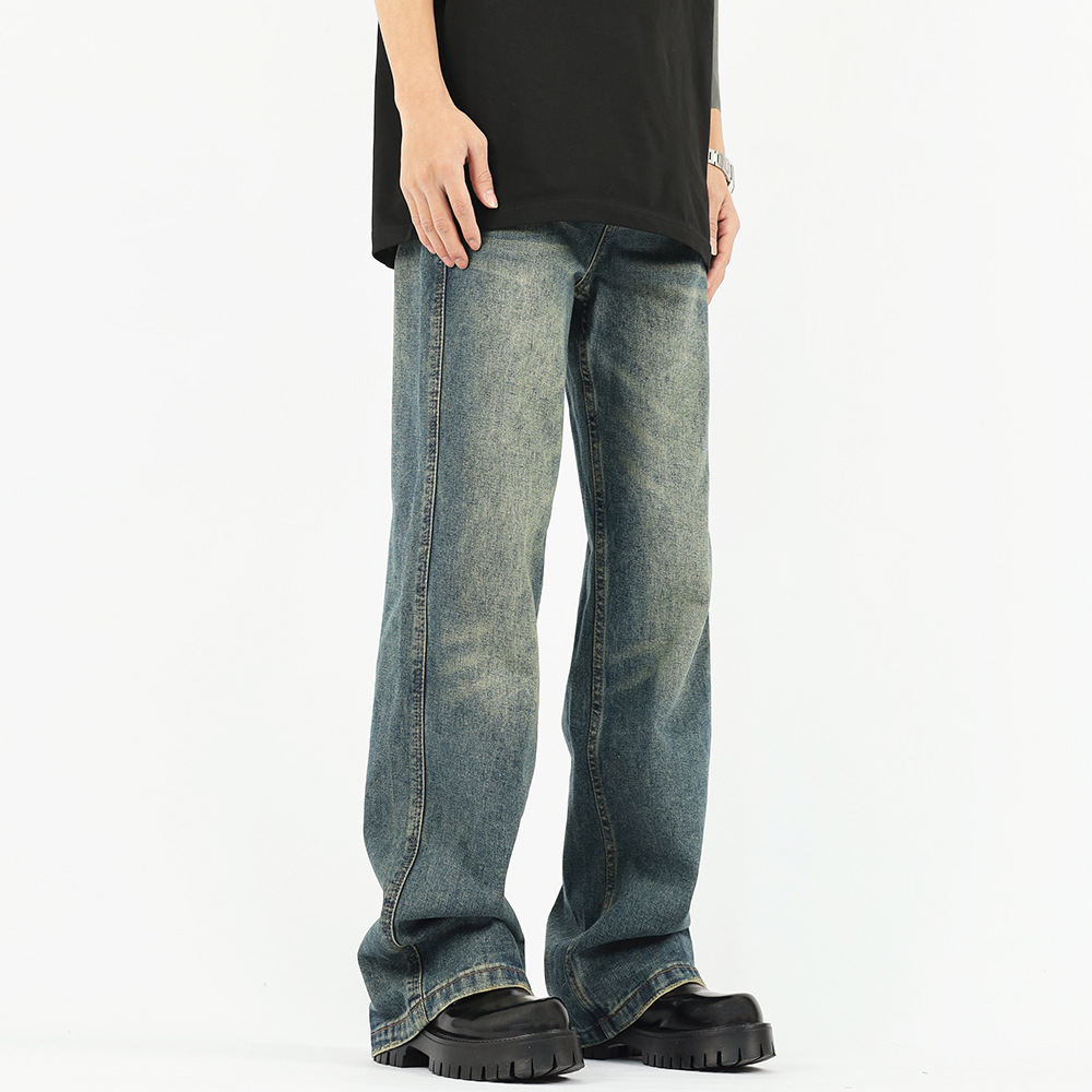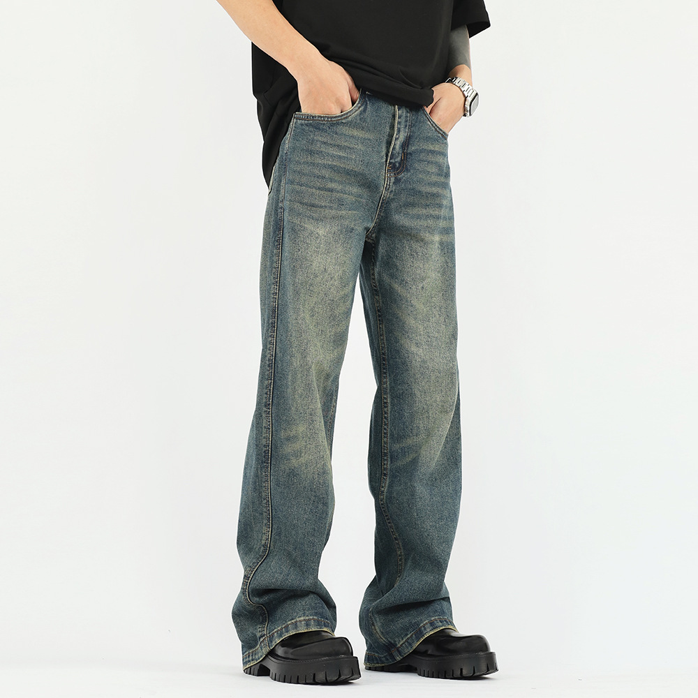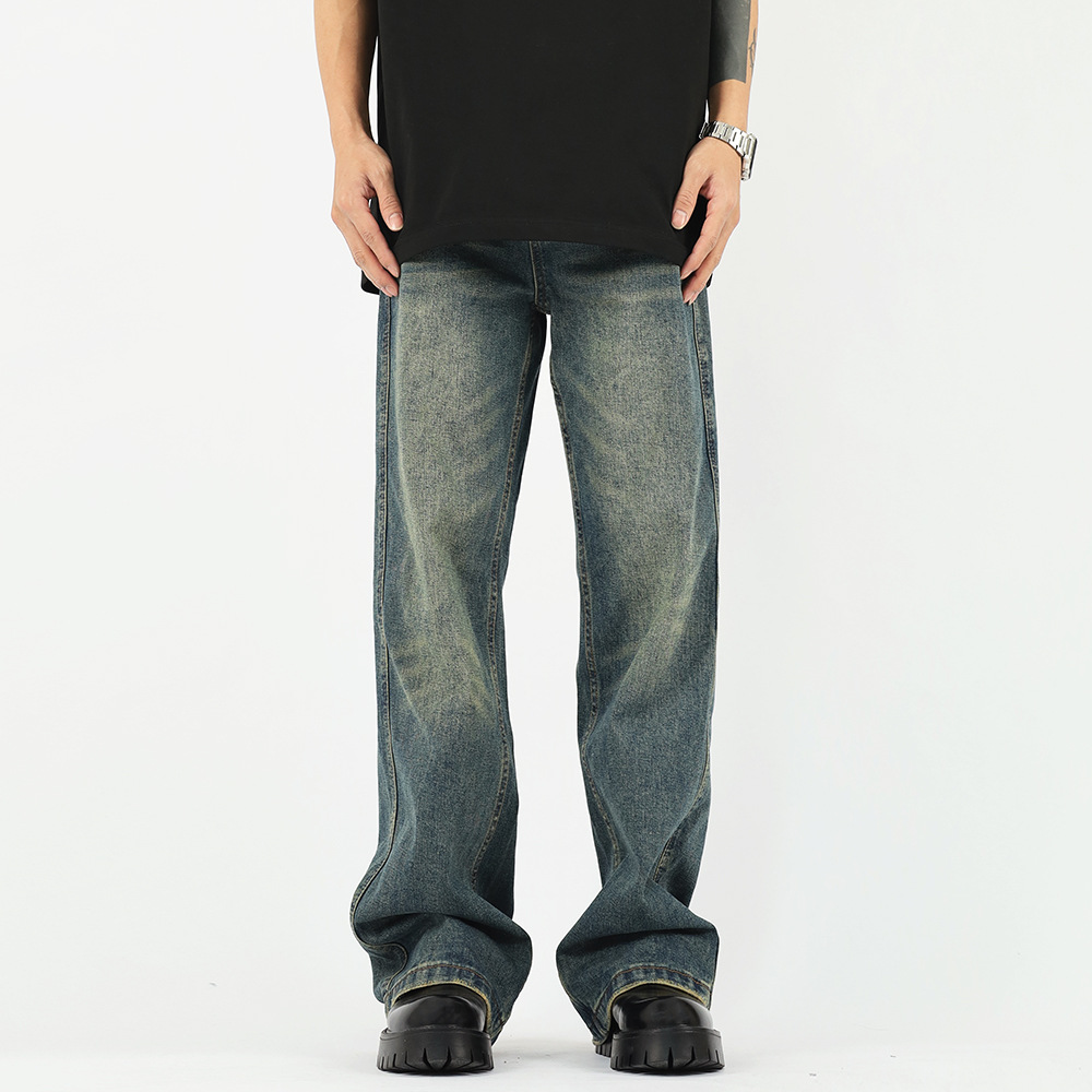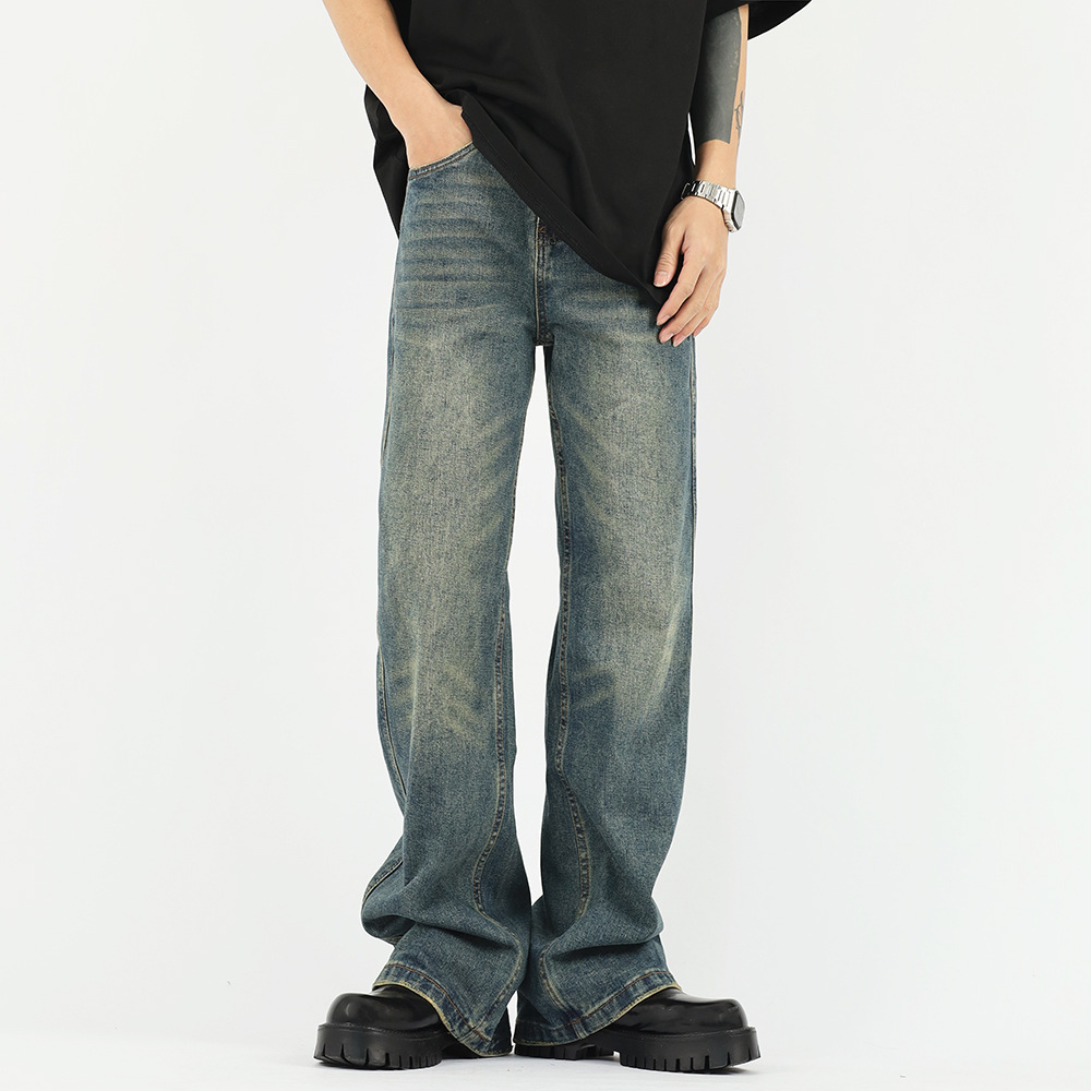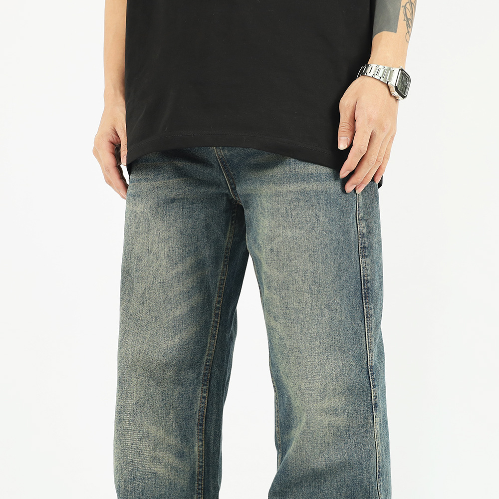 가을과 겨울 새로운 아메리칸 스타일 워싱 올드 빈티지 청바지 남자의 유행 브랜드 클린핏 느슨한 스트레이트 롱 팬츠스토어 가기