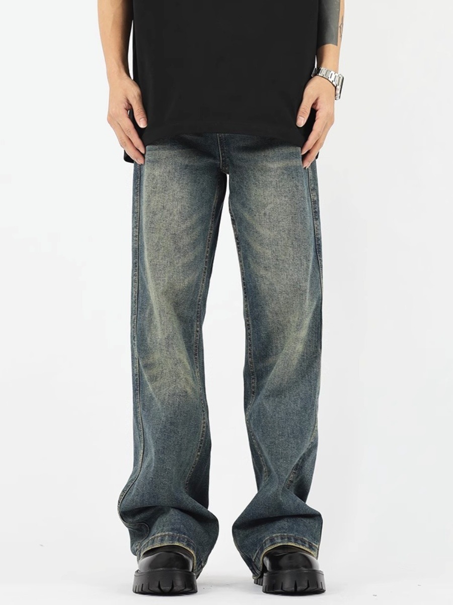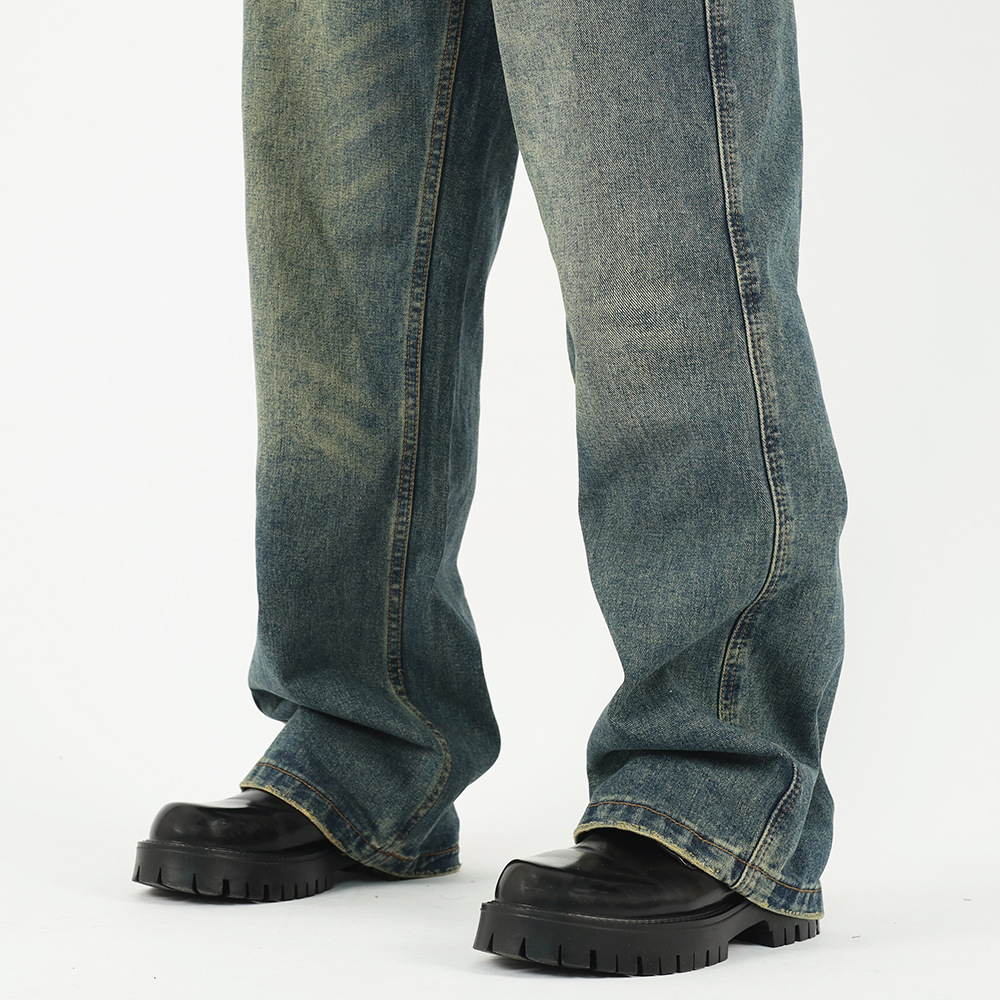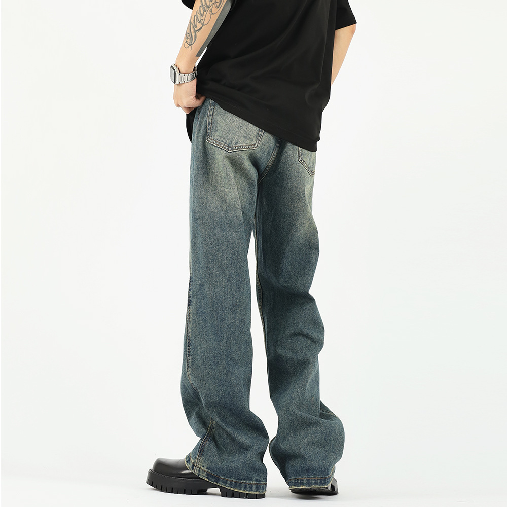 가을과 겨울 새로운 아메리칸 스타일 워싱 올드 빈티지 청바지 남자의 유행 브랜드 클린핏 느슨한 스트레이트 롱 팬츠