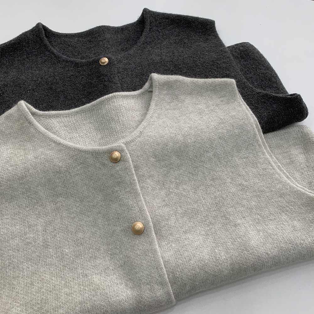 노블 글라이드 솔리드 컬러 스택 아우터 골든 버튼 니트 조끼 여성용 라운드 넥 올매치 루즈한 스웨터 조끼