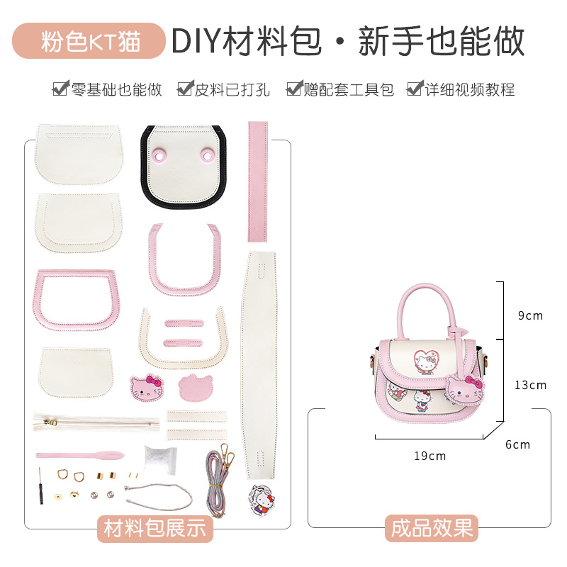 헬로키티 안장 가방 DIY 수제 짠 가방 수제 재료 가방 kt 고양이 유구이 개 숄더 크로스 바디 백스토어 가기