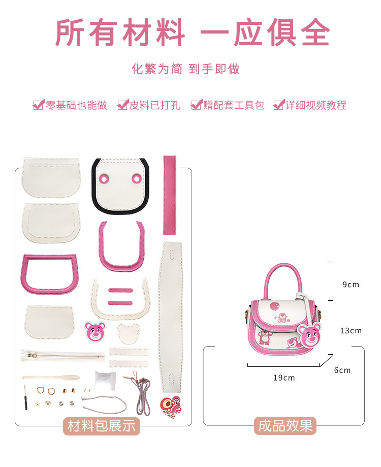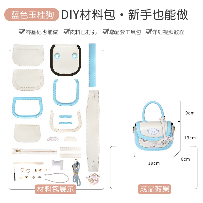 헬로키티 안장 가방 DIY 수제 짠 가방 수제 재료 가방 kt 고양이 유구이 개 숄더 크로스 바디 백