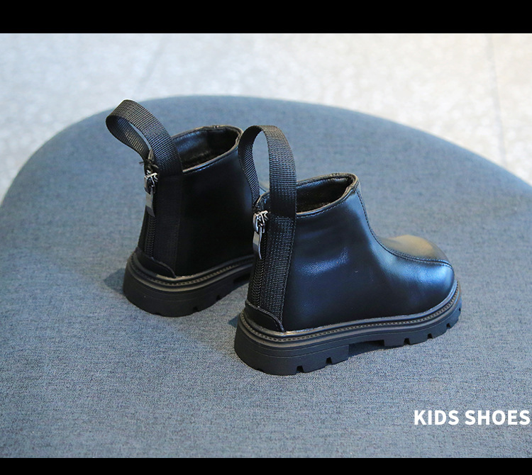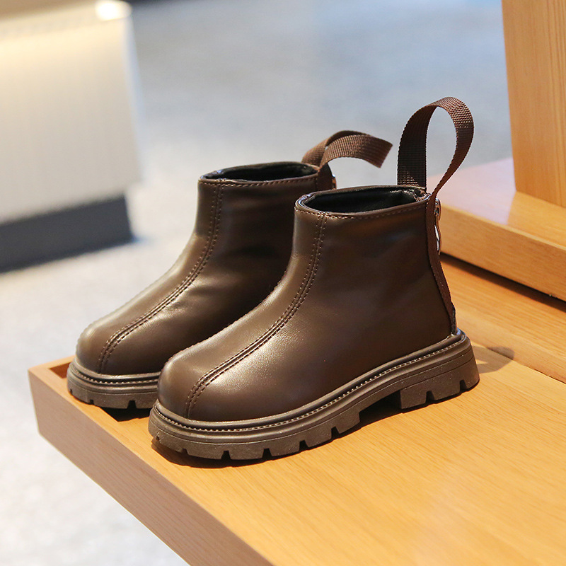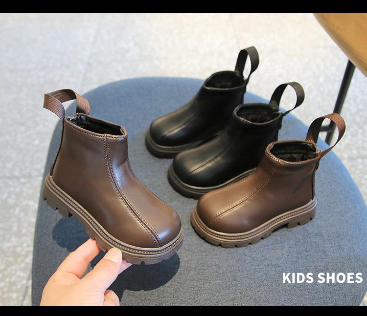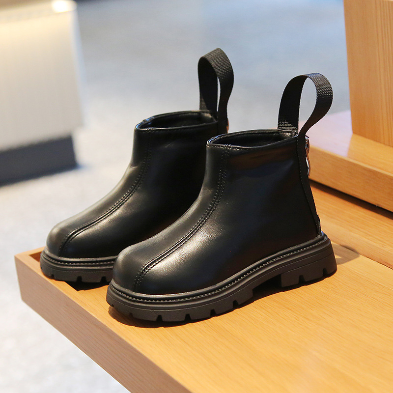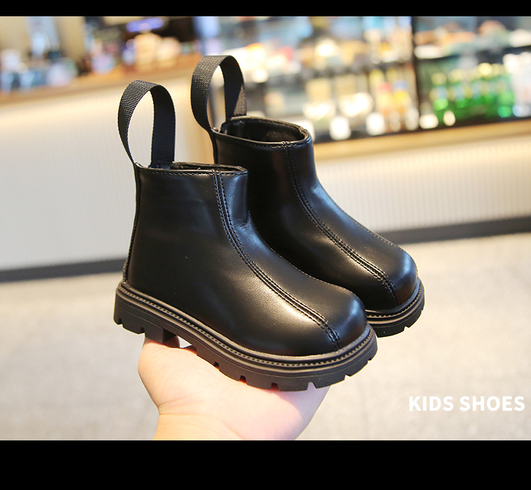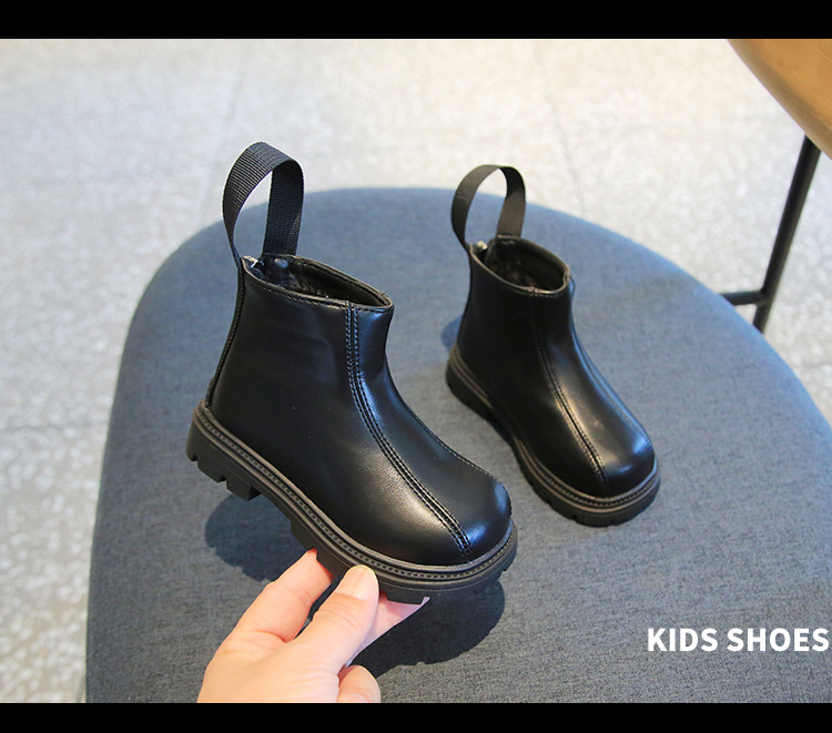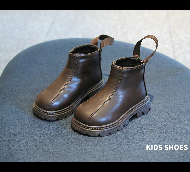 여아용 부드러운 밑창의 짧은 부츠 2023 가을 겨울 아동용 가죽 플러스 플리스 부츠 남아용 영국 스타일 마틴 부츠 미끄럼 방지 및 내마모성스토어 가기