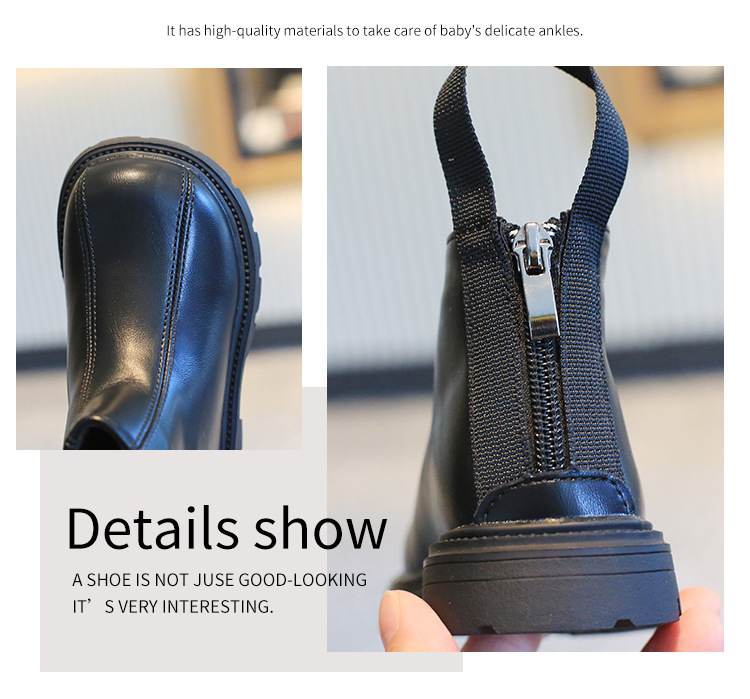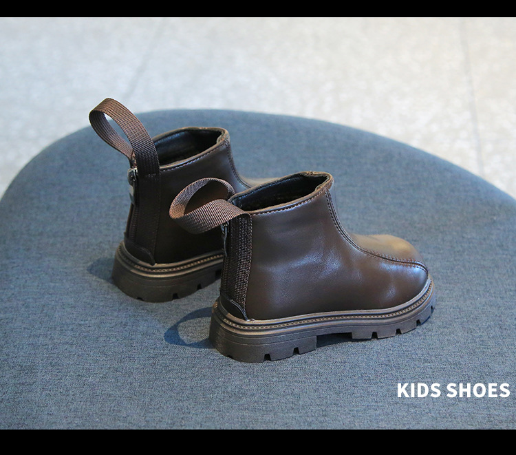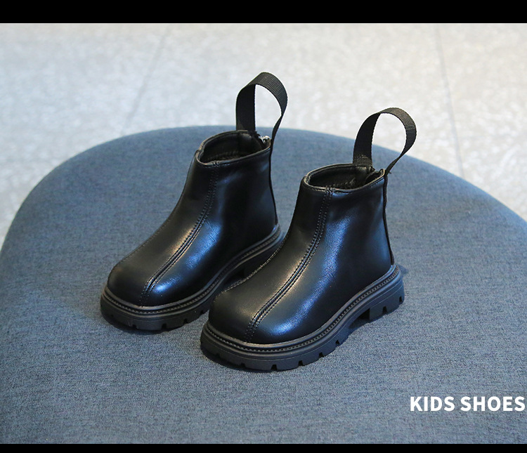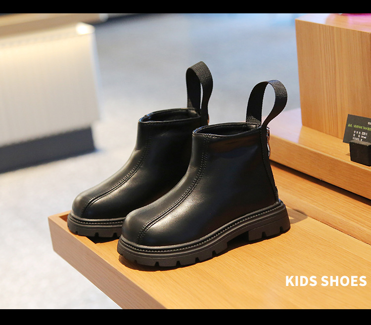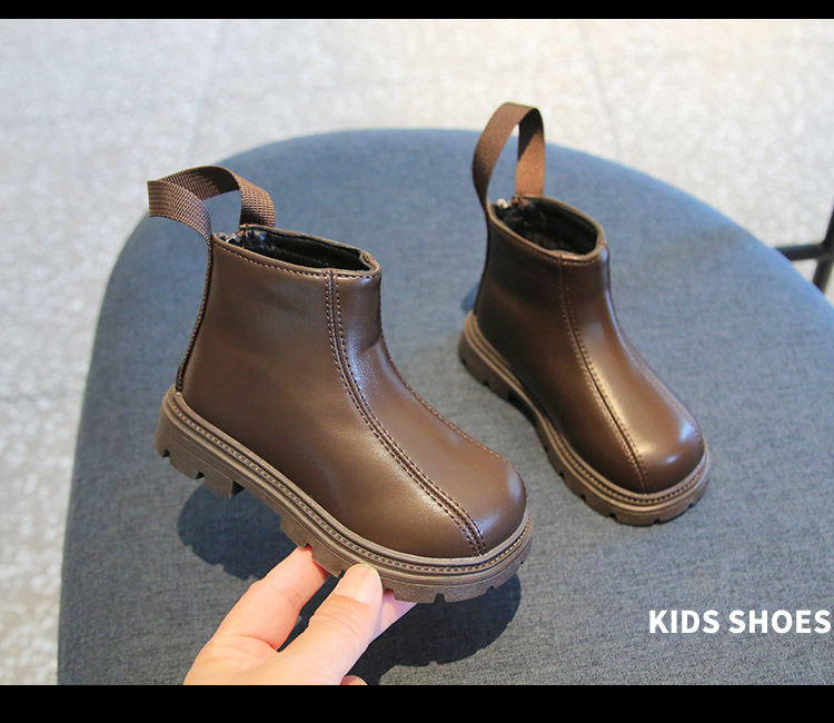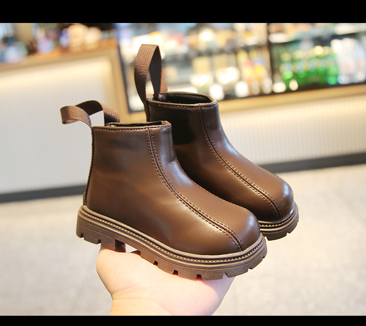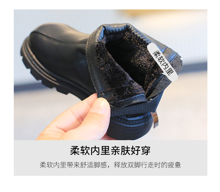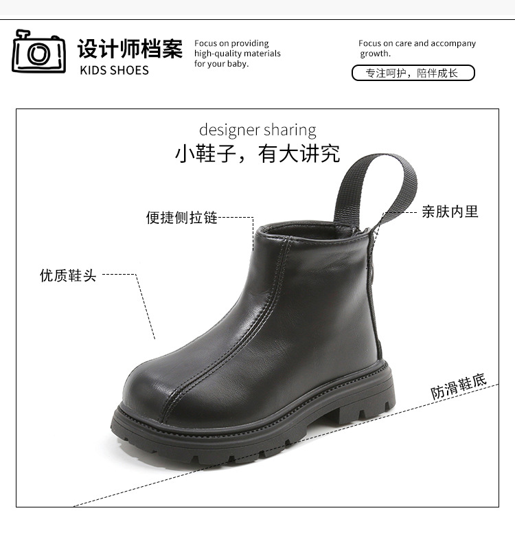 여아용 부드러운 밑창의 짧은 부츠 2023 가을 겨울 아동용 가죽 플러스 플리스 부츠 남아용 영국 스타일 마틴 부츠 미끄럼 방지 및 내마모성스토어 가기