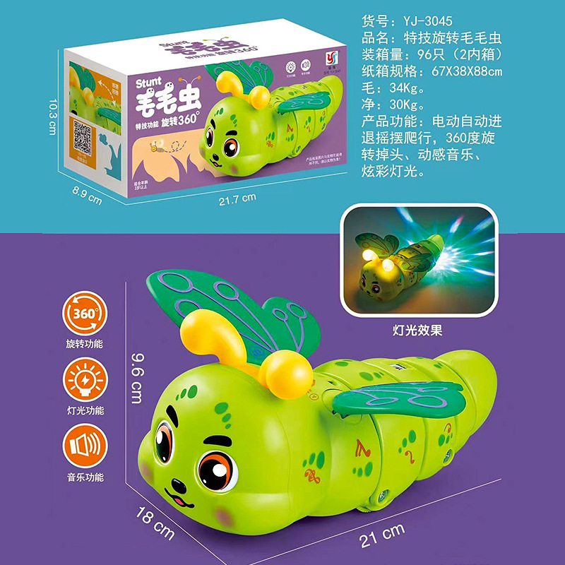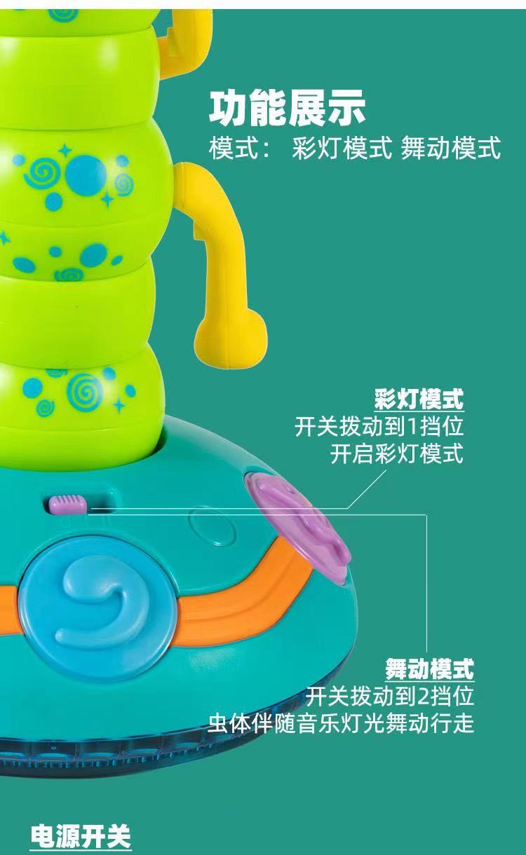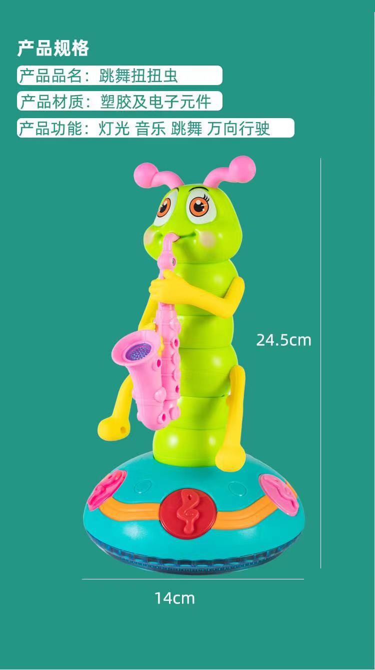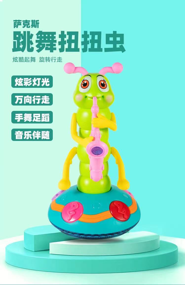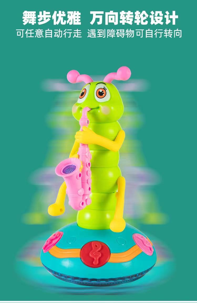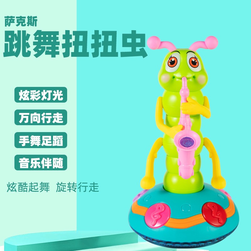 어린이 전기 유니버설 워킹 트럼펫 불고 색소폰 트위스트 웜 노래 춤추는 애벌레 조명 아기 장난감스토어 가기