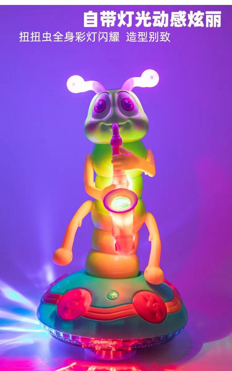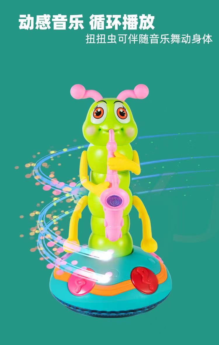 어린이 전기 유니버설 워킹 트럼펫 불고 색소폰 트위스트 웜 노래 춤추는 애벌레 조명 아기 장난감
