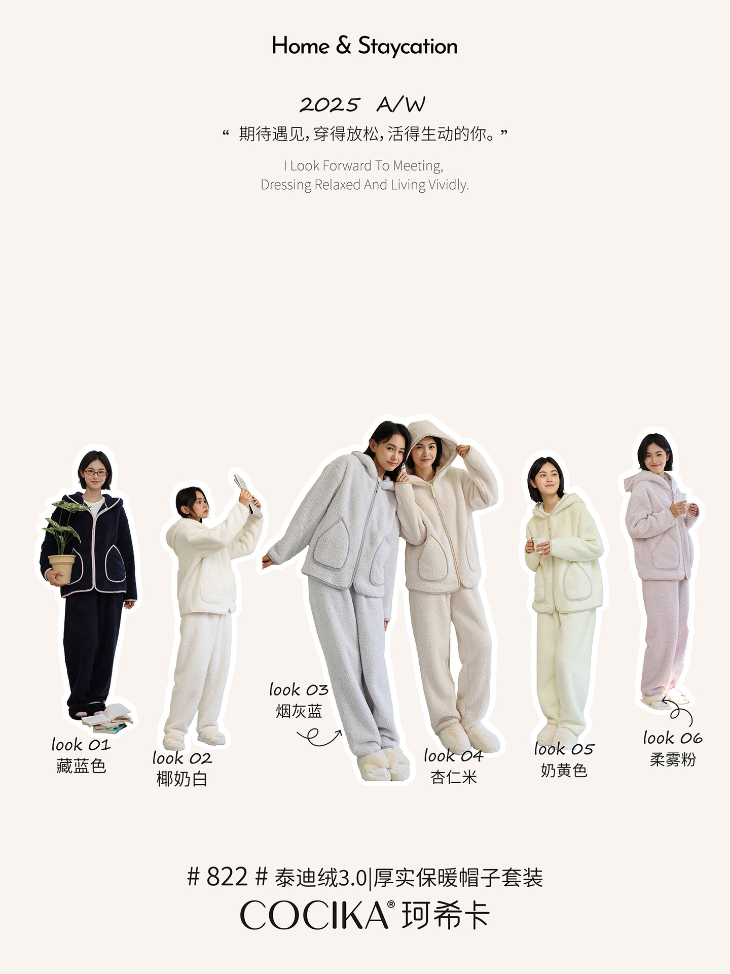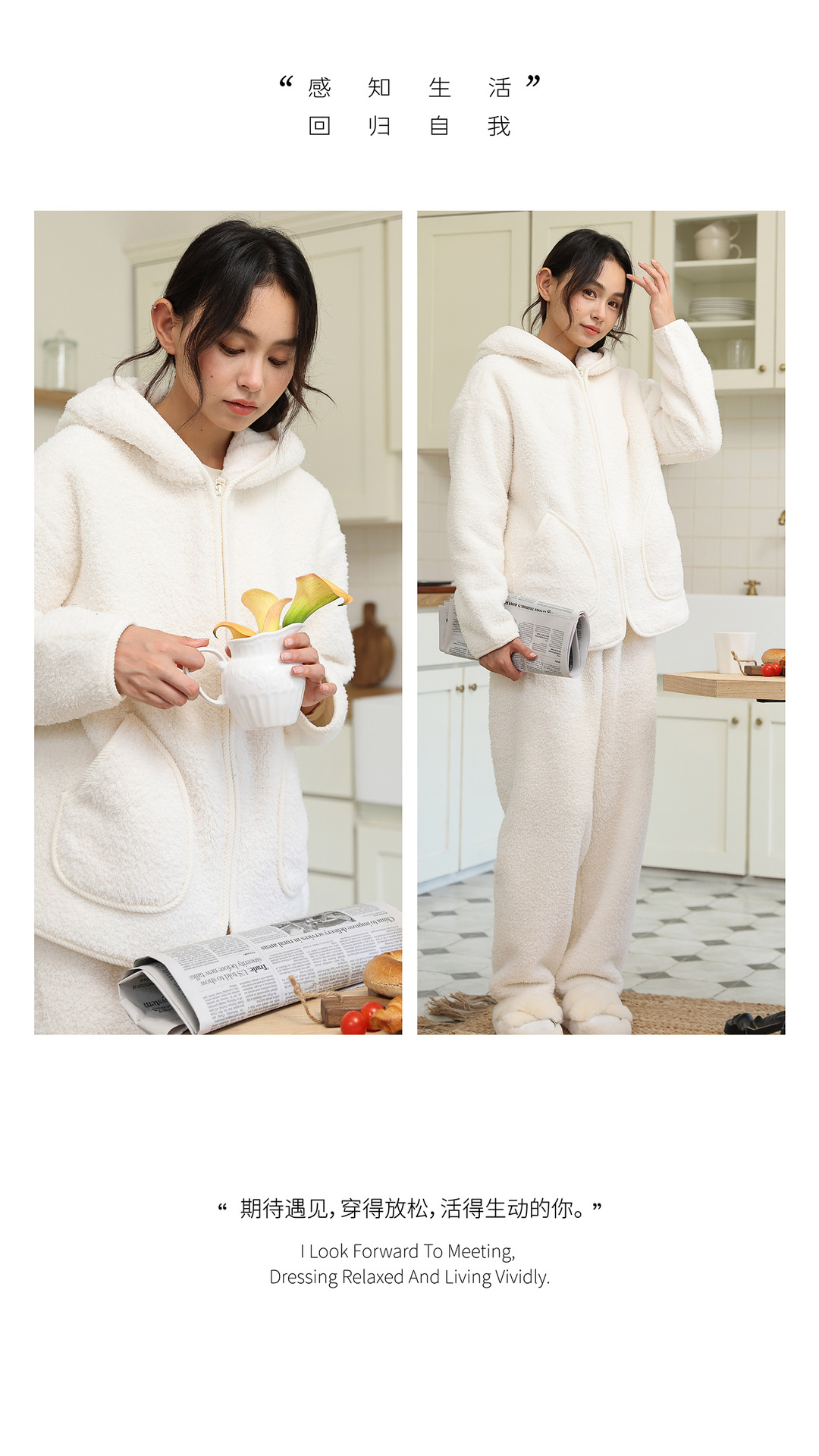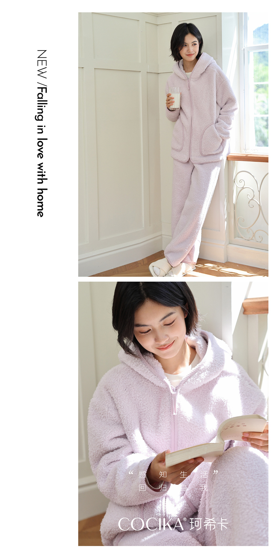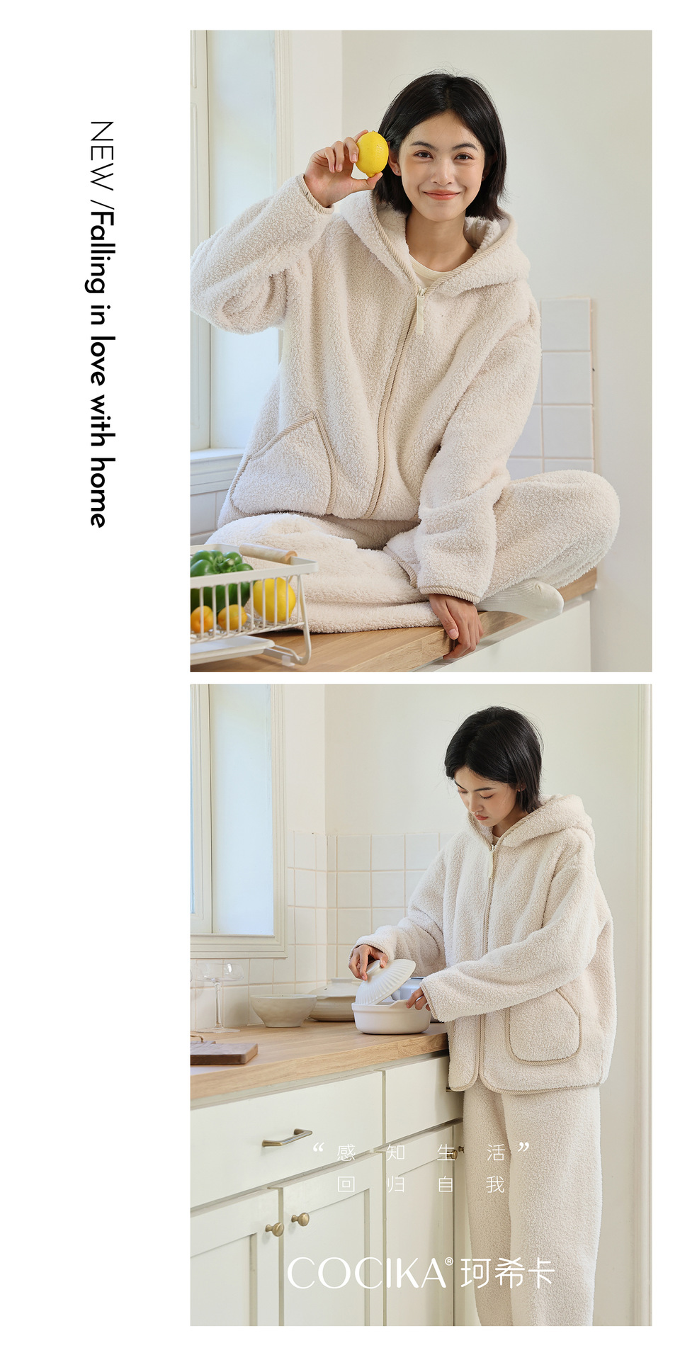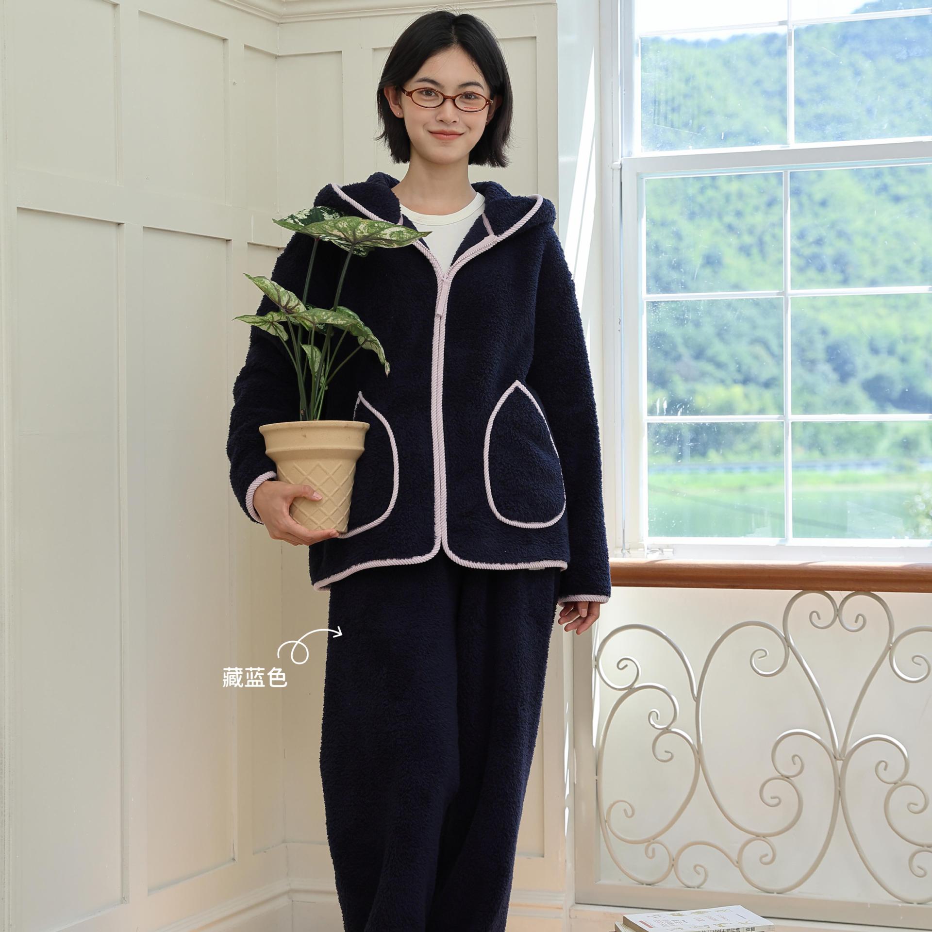 2025 가을 겨울 신상 여성용 테디 벨벳 후드 세트 홈웨어 외출 가능 캐주얼 따뜻한 두꺼운 잠옷