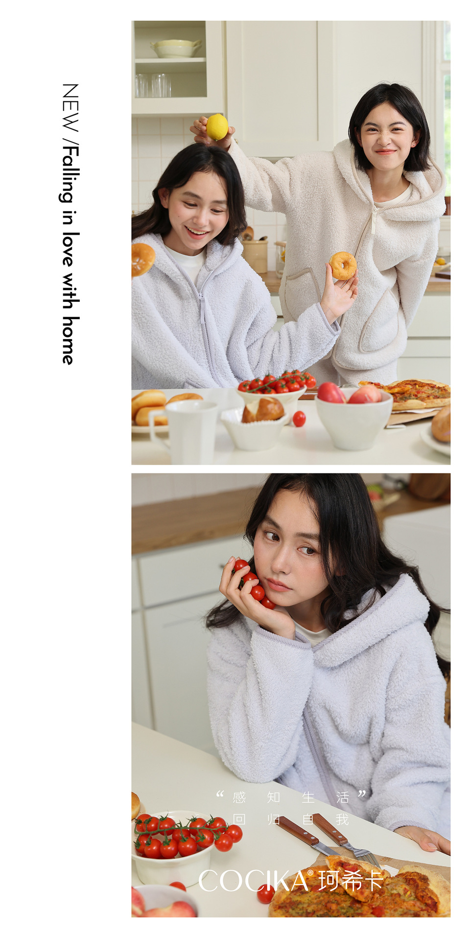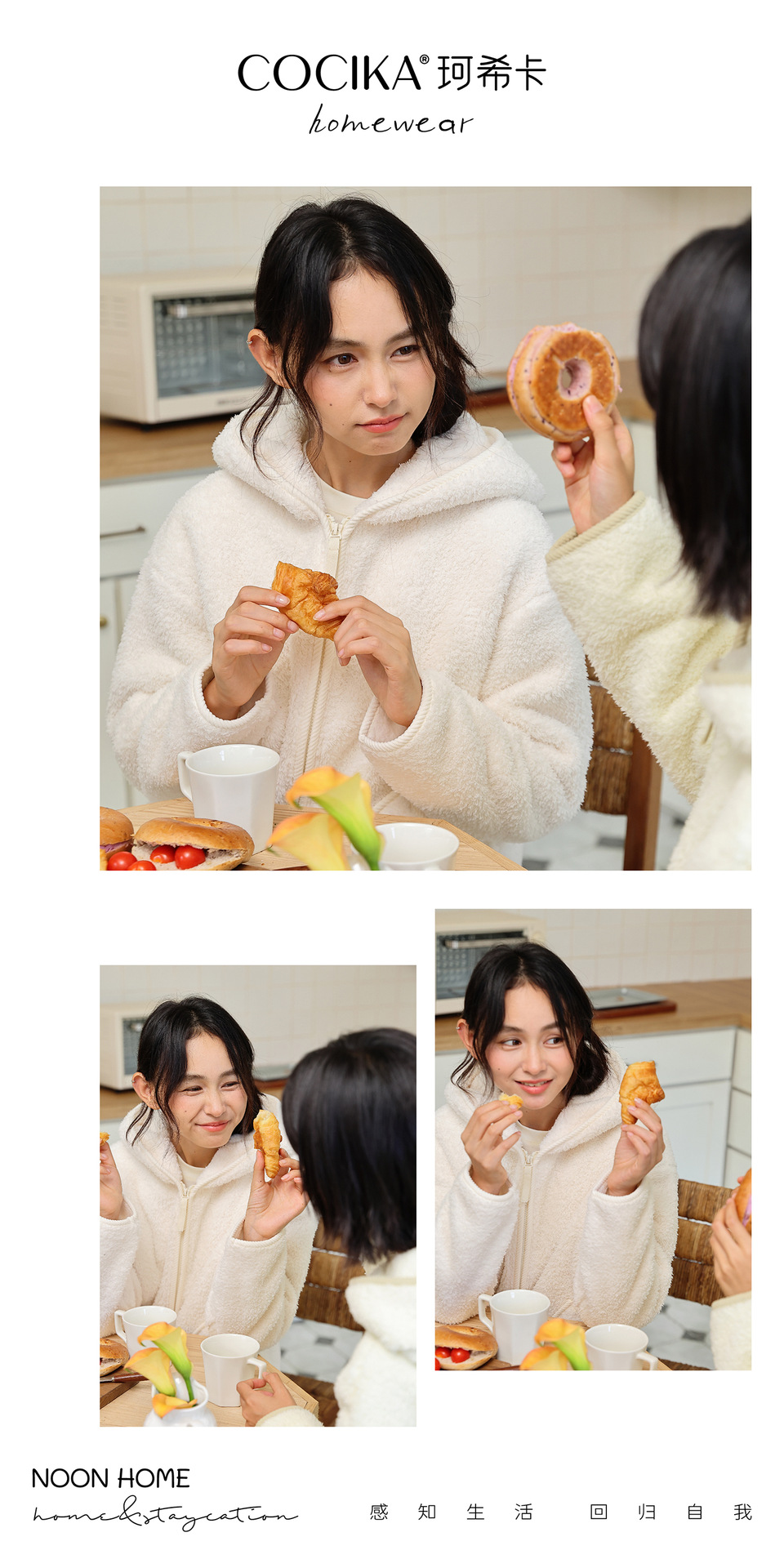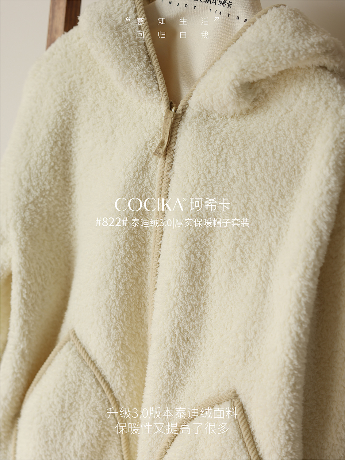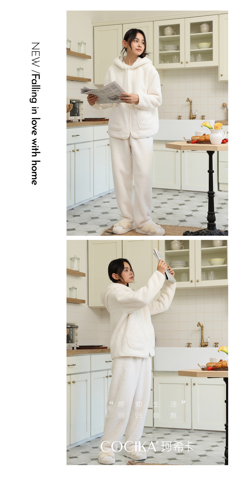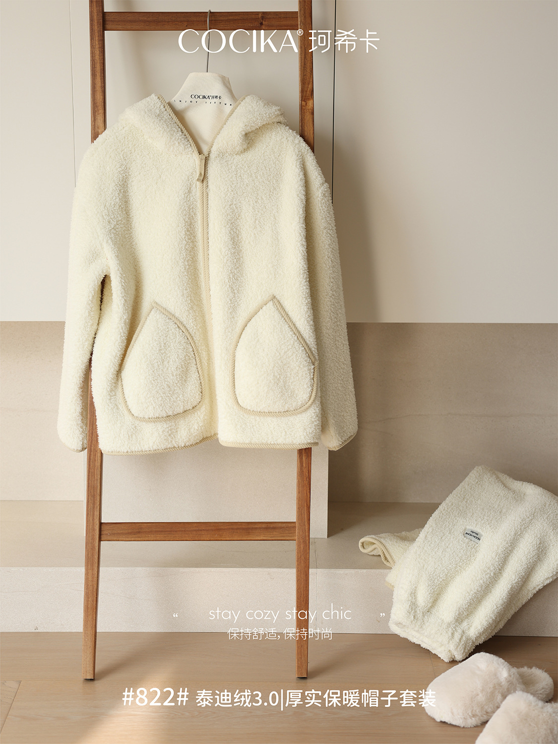 2025 가을 겨울 신상 여성용 테디 벨벳 후드 세트 홈웨어 외출 가능 캐주얼 따뜻한 두꺼운 잠옷