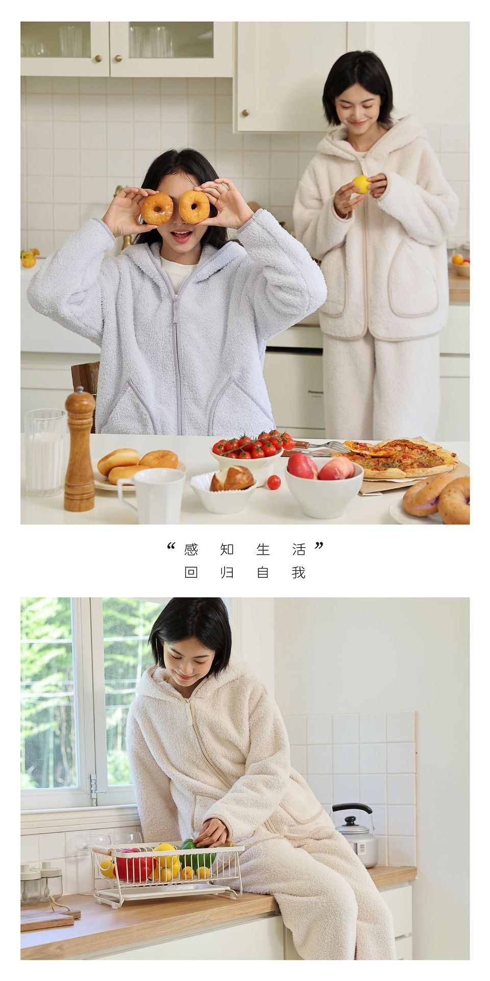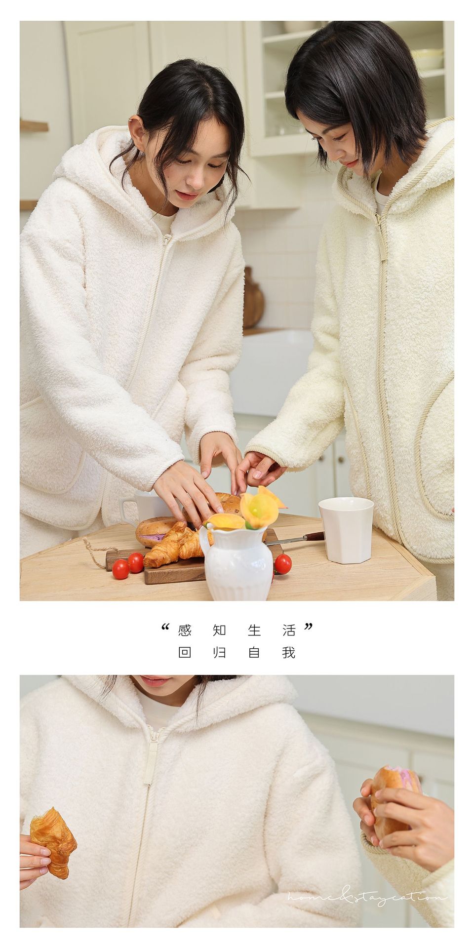 2025 가을 겨울 신상 여성용 테디 벨벳 후드 세트 홈웨어 외출 가능 캐주얼 따뜻한 두꺼운 잠옷스토어 가기